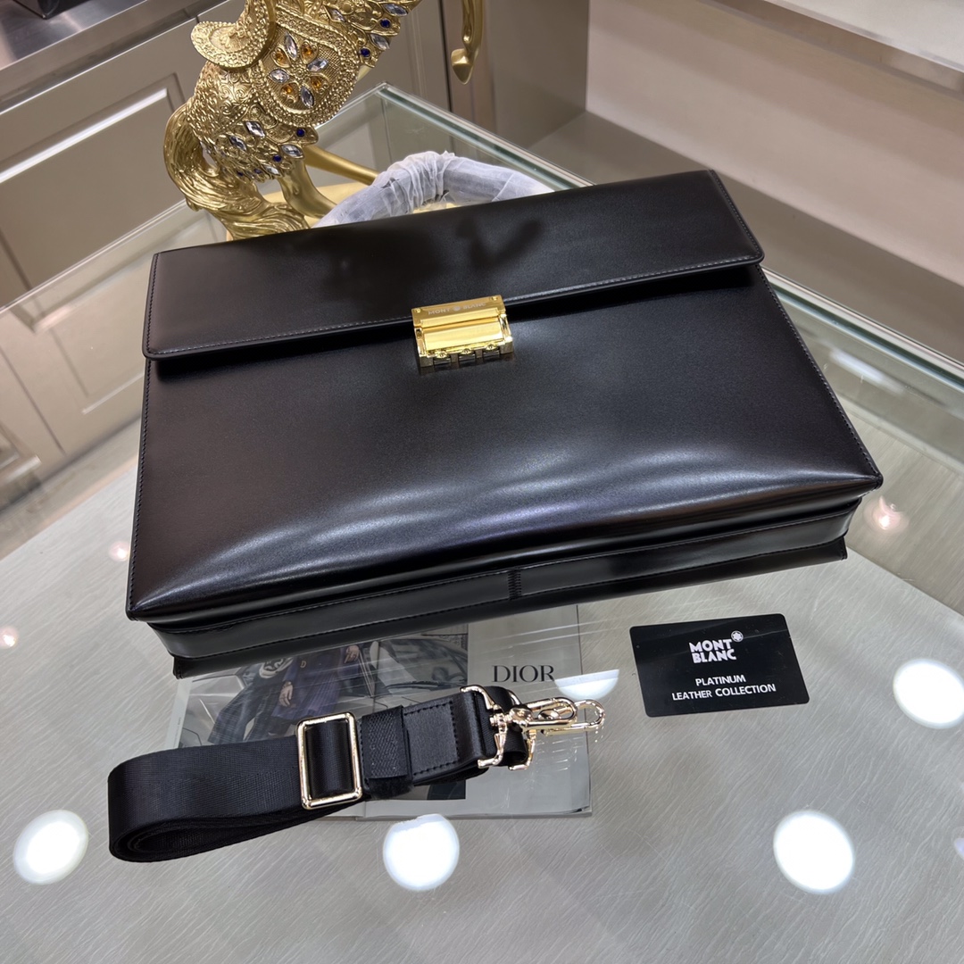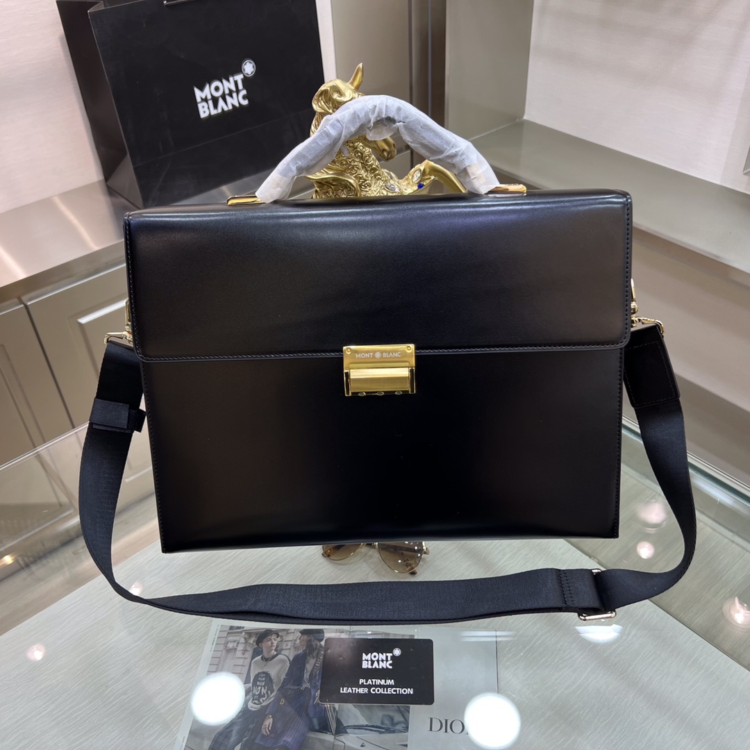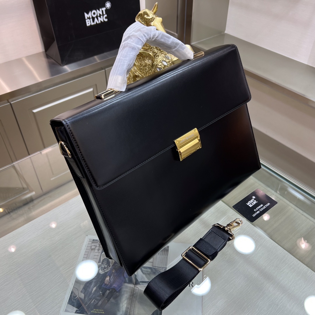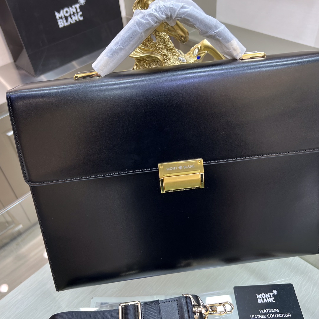 。Montblanc International(万宝龙) 万宝龙新款男士定型公文包,采用进口亮光皮制作,搭配顶级五金配件,带密码锁,在公文包系列中实属佼佼者。商务人士与潮流达人皆适用的款式。[色]喜欢的速度下单✅ 型号:231117-1 尺寸:38-28-8 颜色:黑色、啡色