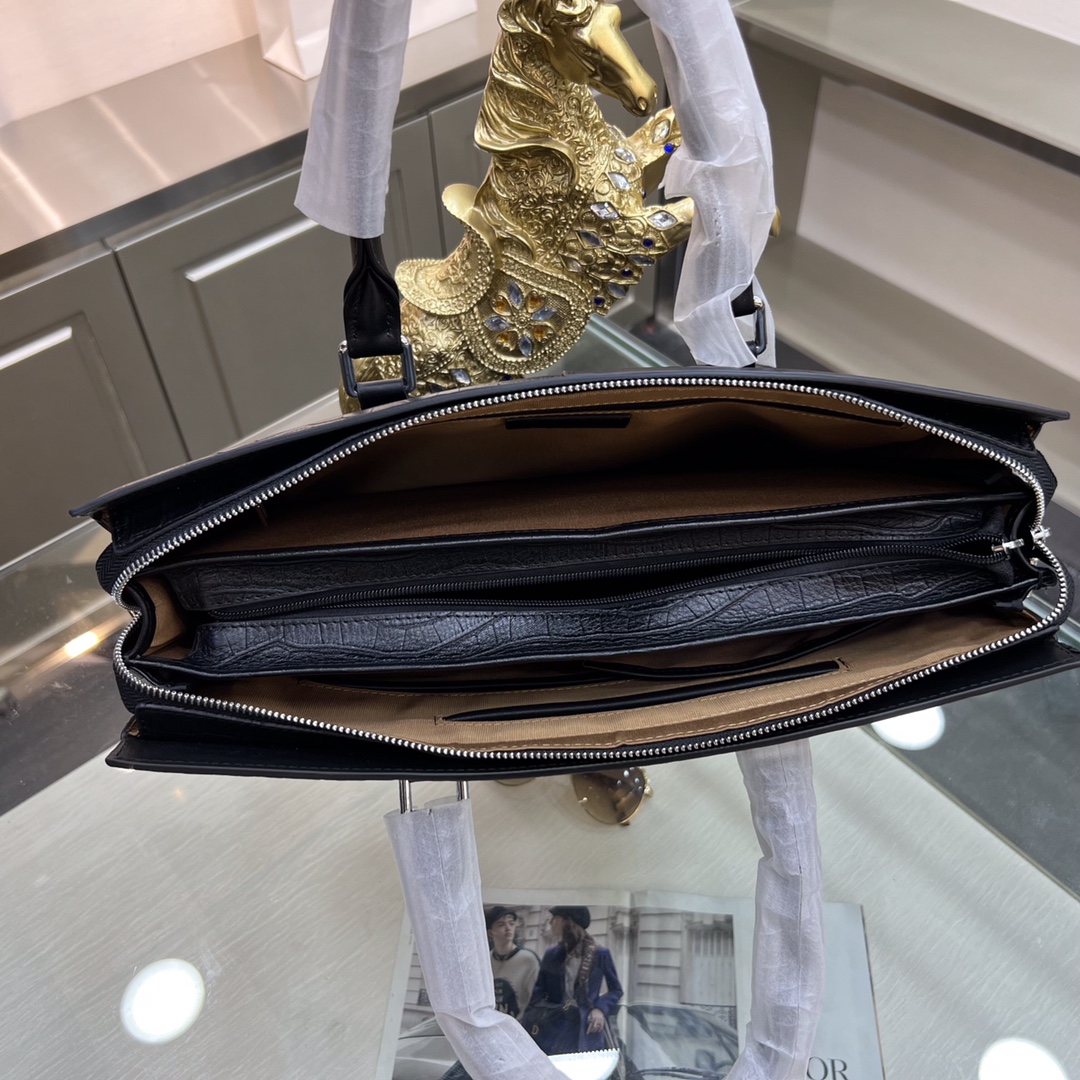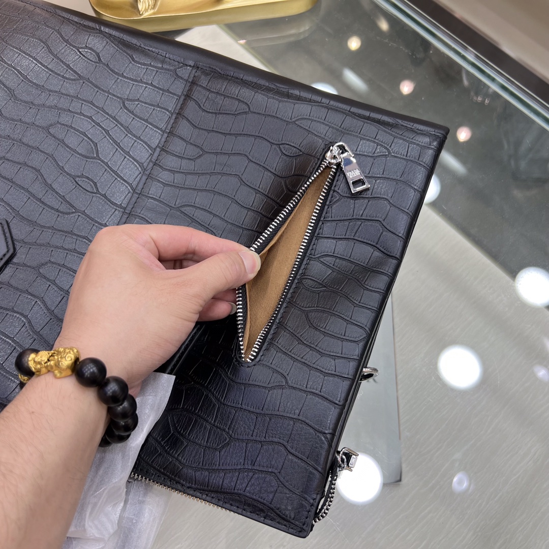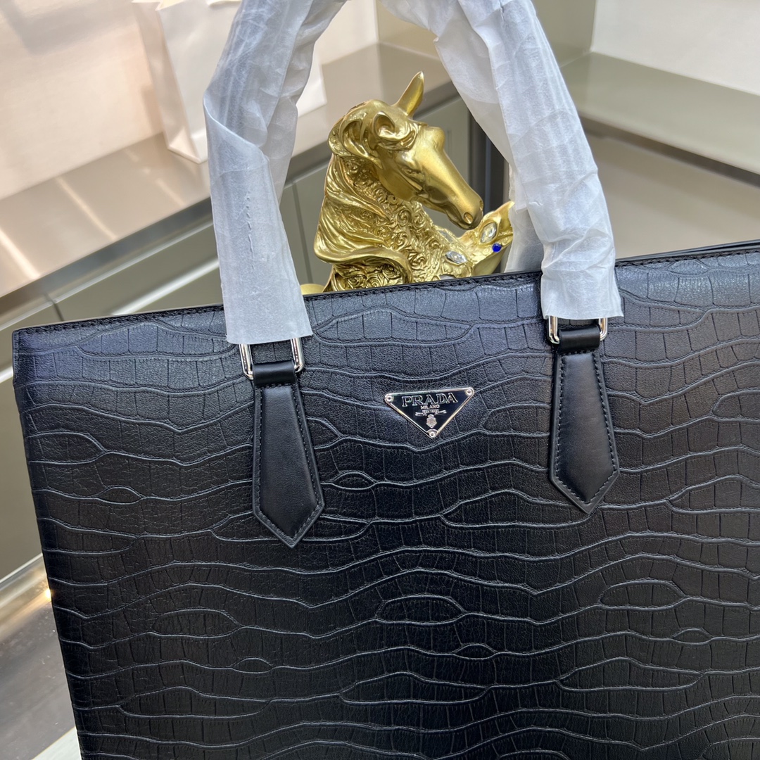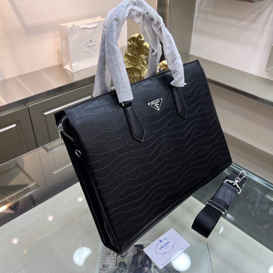 。PRADA普拉达 新款公文包 采用进口鳄鱼纹牛皮制作,顶级抛光不锈钢饰面金属配件 ,正面外部三角形珐琅徽标,内里双隔层,简单大方商务 成功男士们的最爱 ! 尺寸:40-30-7 型号:601312-1