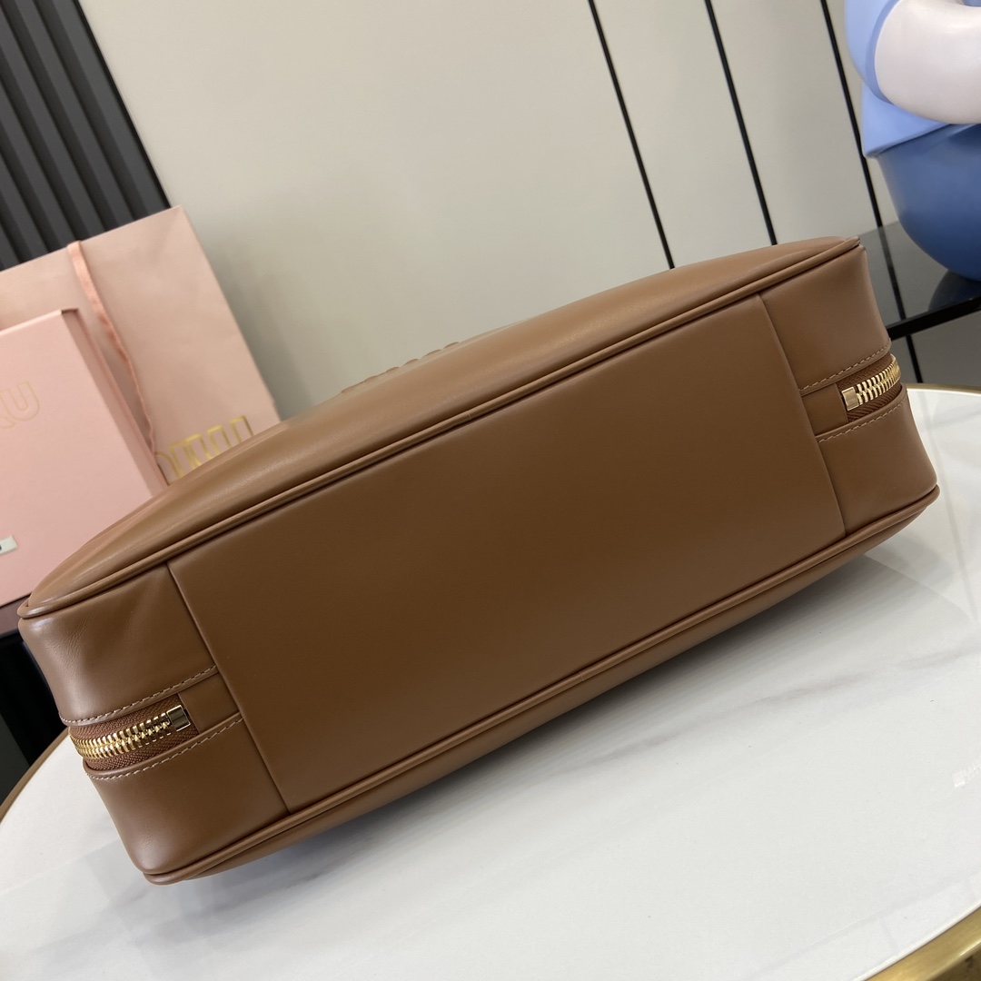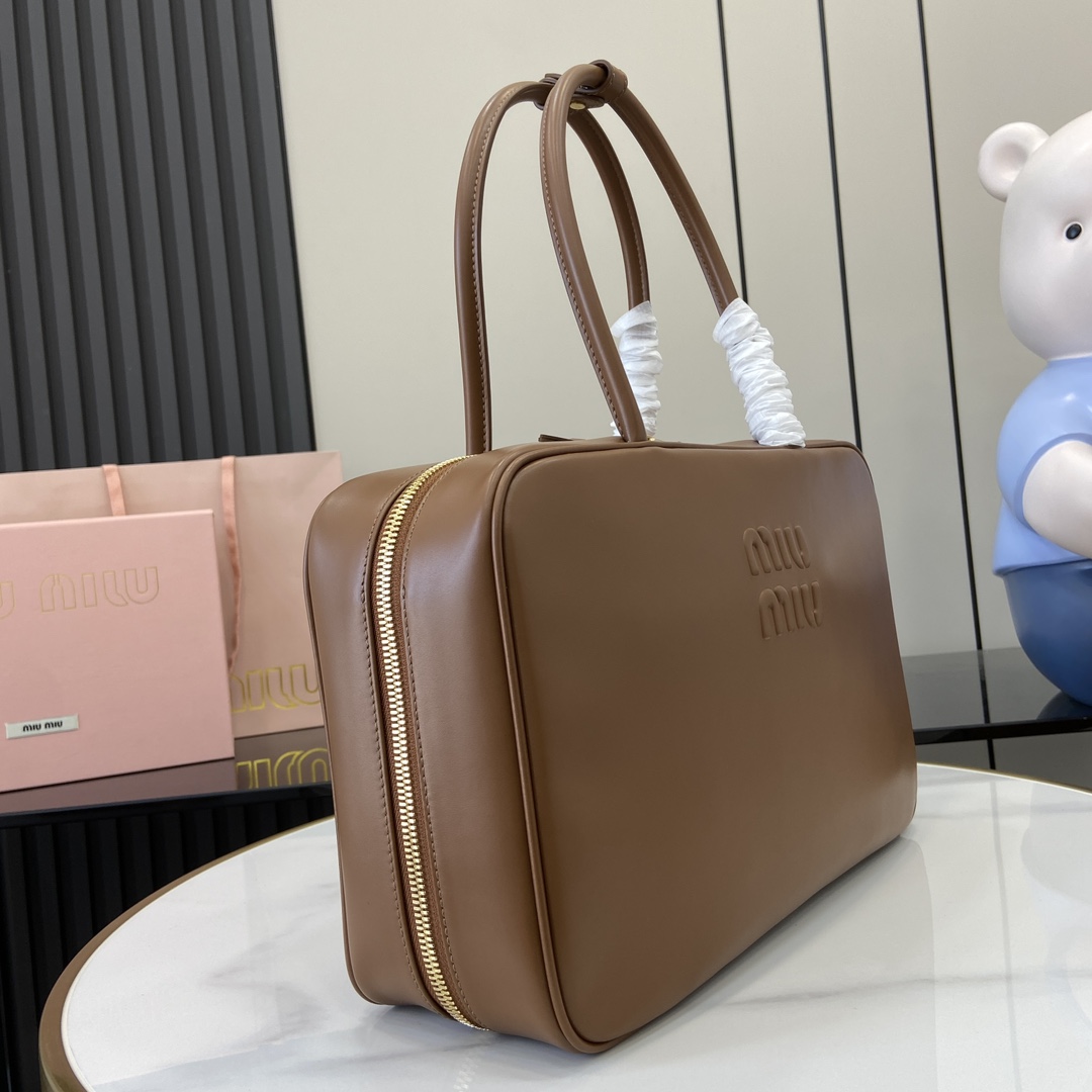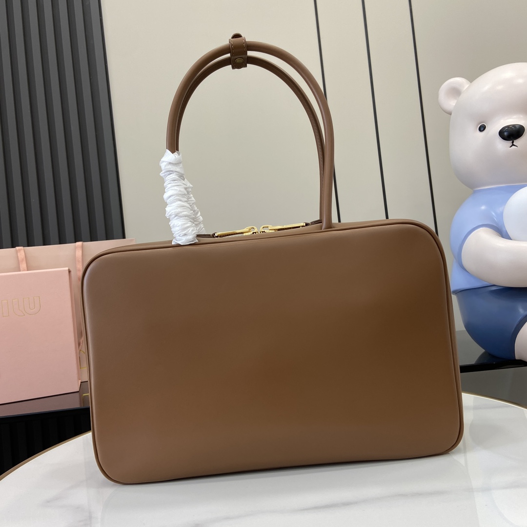 ‼️《配全套原厂专柜包装》‼️【新款】MIU MIU原厂公文包时尚与经典的完全融合,Beau手袋采用柔软光滑皮革,镀金色五金配件等精致细节格外出众,压花字母徽标彰显经典格调。皮革提手,适合用作手提包或单肩包,镀金色五金配件,正面压花字母徽标,拉链包口,棉缎衬里,双拉链口袋 型号:5bb117,5bb163。 尺寸:34(长)x 23(高)x 12cm(厚) 颜色:棕色全皮/原厂皮