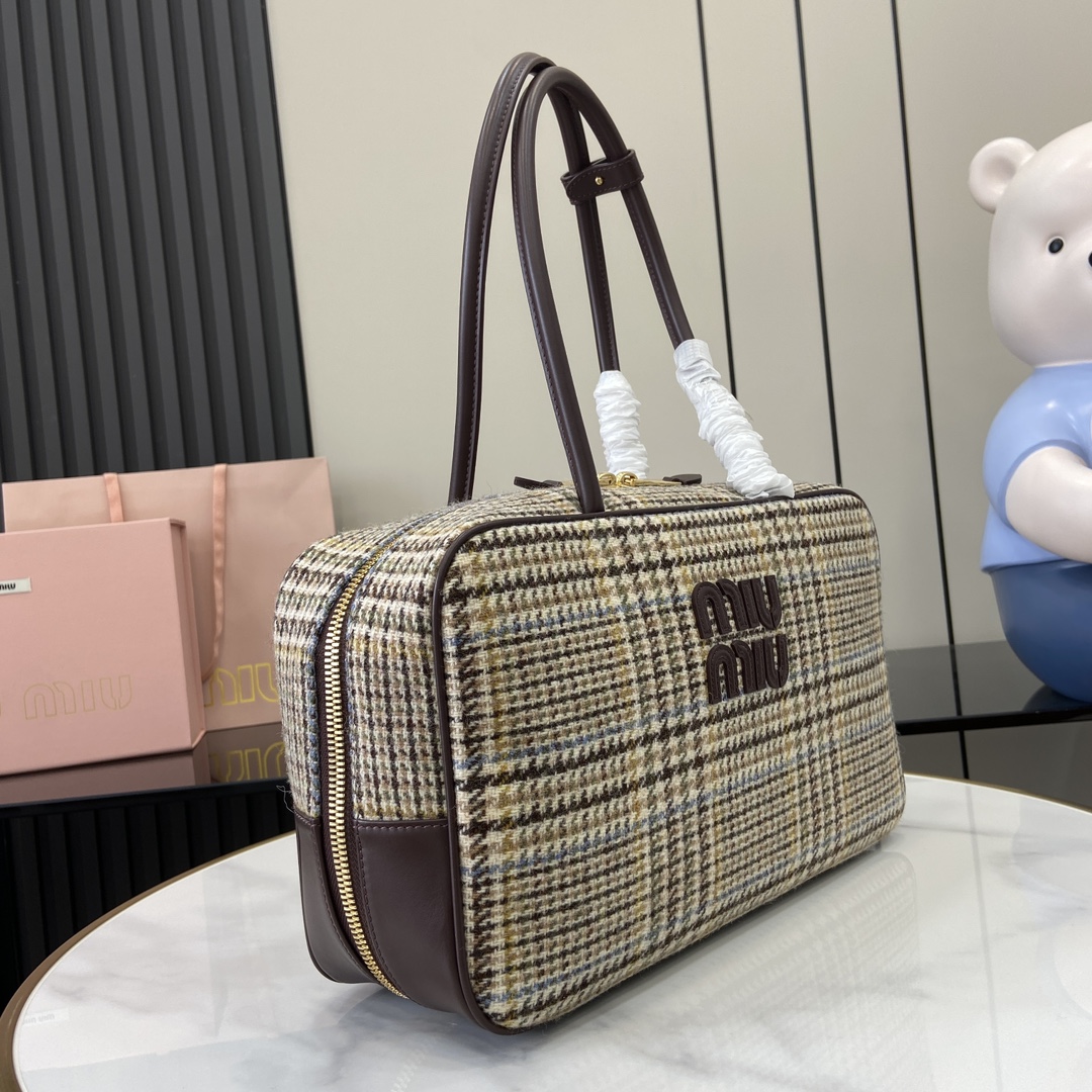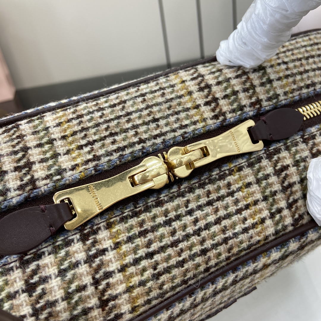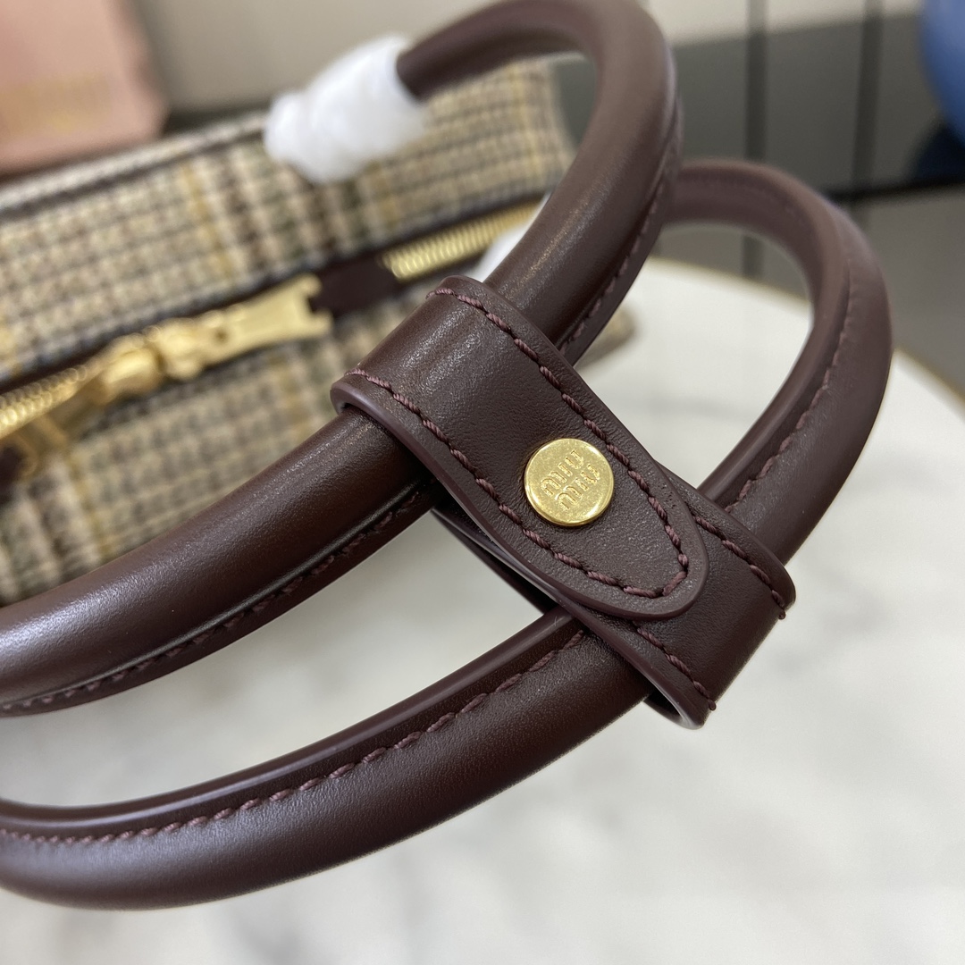‼️《配全套原厂专柜包装》‼️【新款】MIU MIU原厂羊毛千鸟格公文包时尚与经典的完全融合,下一个大爆款非它莫属,羊毛面料搭配小牛皮,质感柔软且耐用,比起全皮款更加轻便且颜色也更百搭,无论外观还是实用性都让人惊叹,三代长手柄设计方便肩背,大号设计容量充足,可轻松装下各种必需品,无论上班还是出游,它都是完美的选择,全新的绵缎衬里更美观耐用, 型号:5bb117,5bb163。 尺寸:34(长)x 23(宽)x 12cm(厚) 颜色:羊毛千鸟格/原厂皮