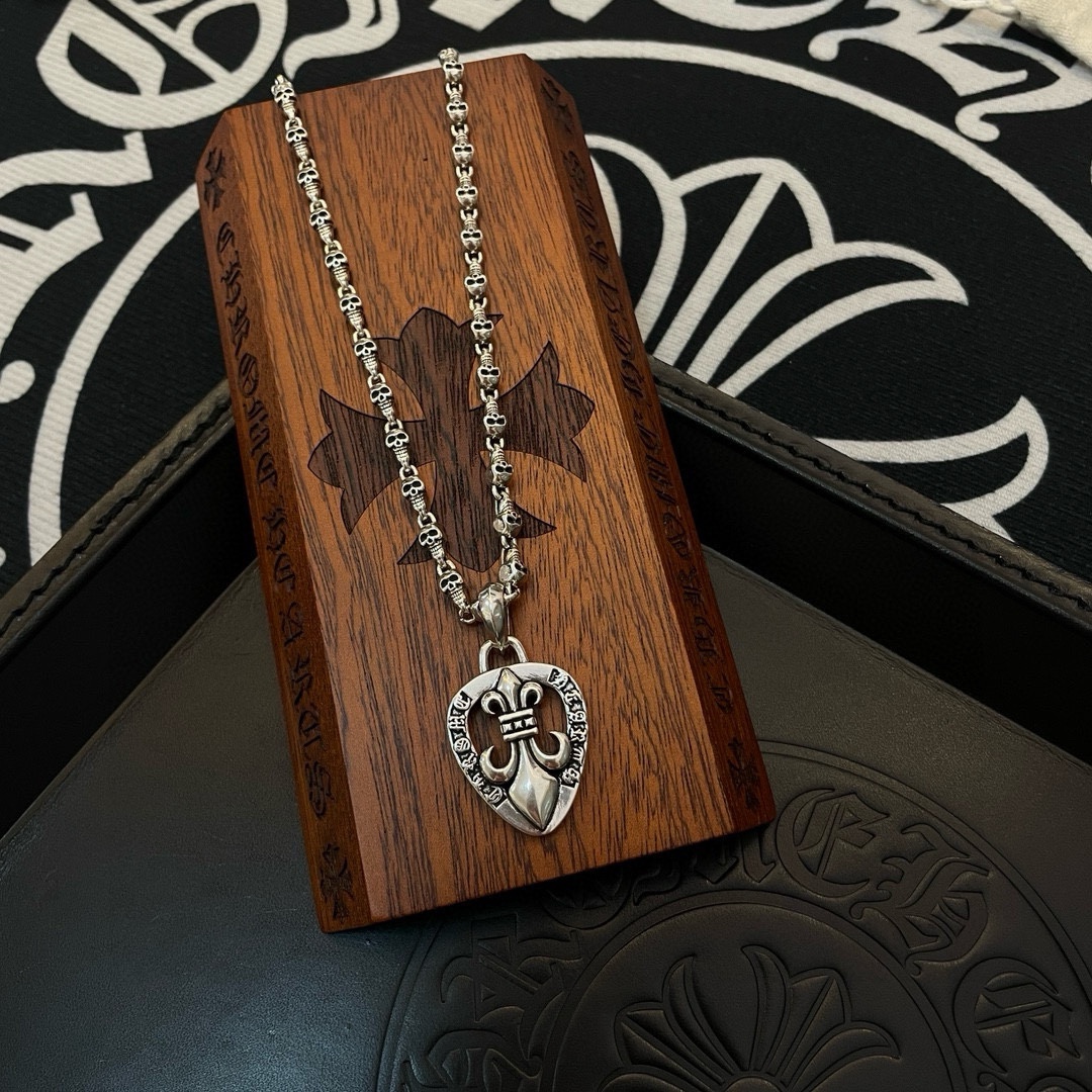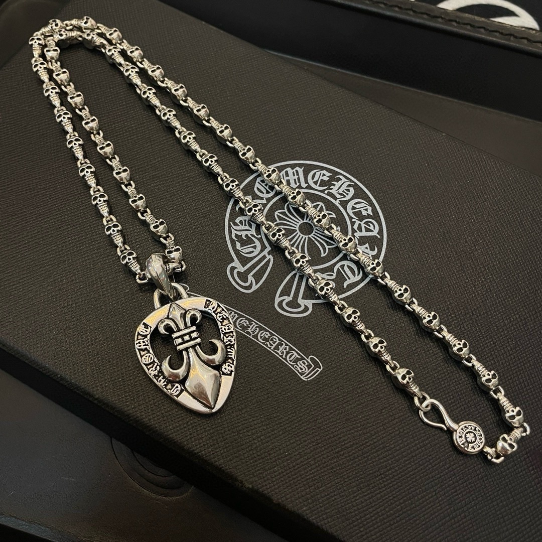 【专柜品质】Chrome Hearts克罗心经典骷髅头项链,心型童军花吊坠 凹凸造型不同的花纹设计风格 呈现出与众不同 十字架 童军花是克罗心的志 所以更经久不衰 正品打版Chrome Hearts克罗心 区别市场普通轻版 对版对标品质 看字印细节 复古做旧灰氧程度.精工版本!!! 纯手工打造 ~正品开模 潮流时尚必备 男女均可佩戴 情侣同款 官网原版 摇滚朋克泰银风格 复古元素 潮流百搭!