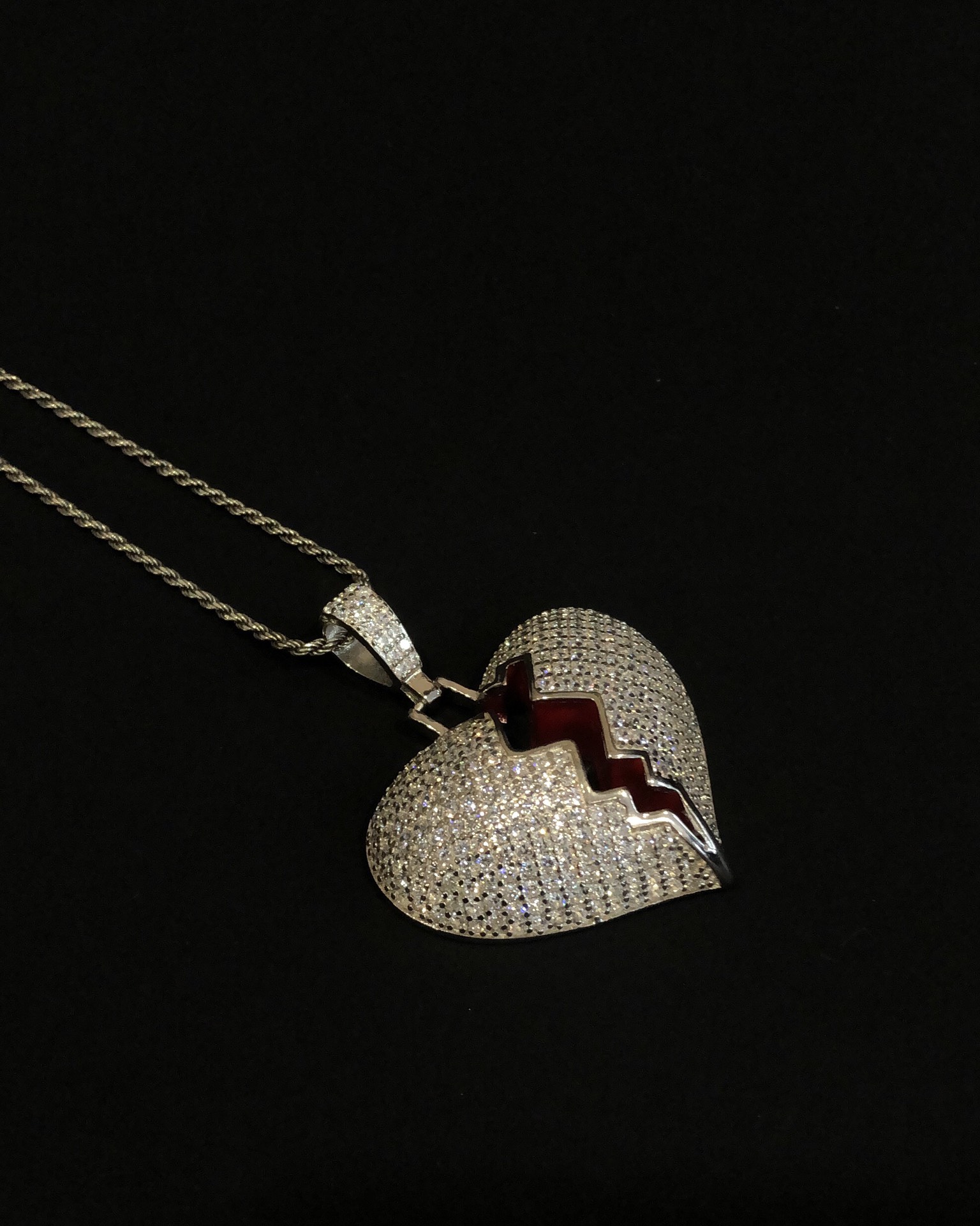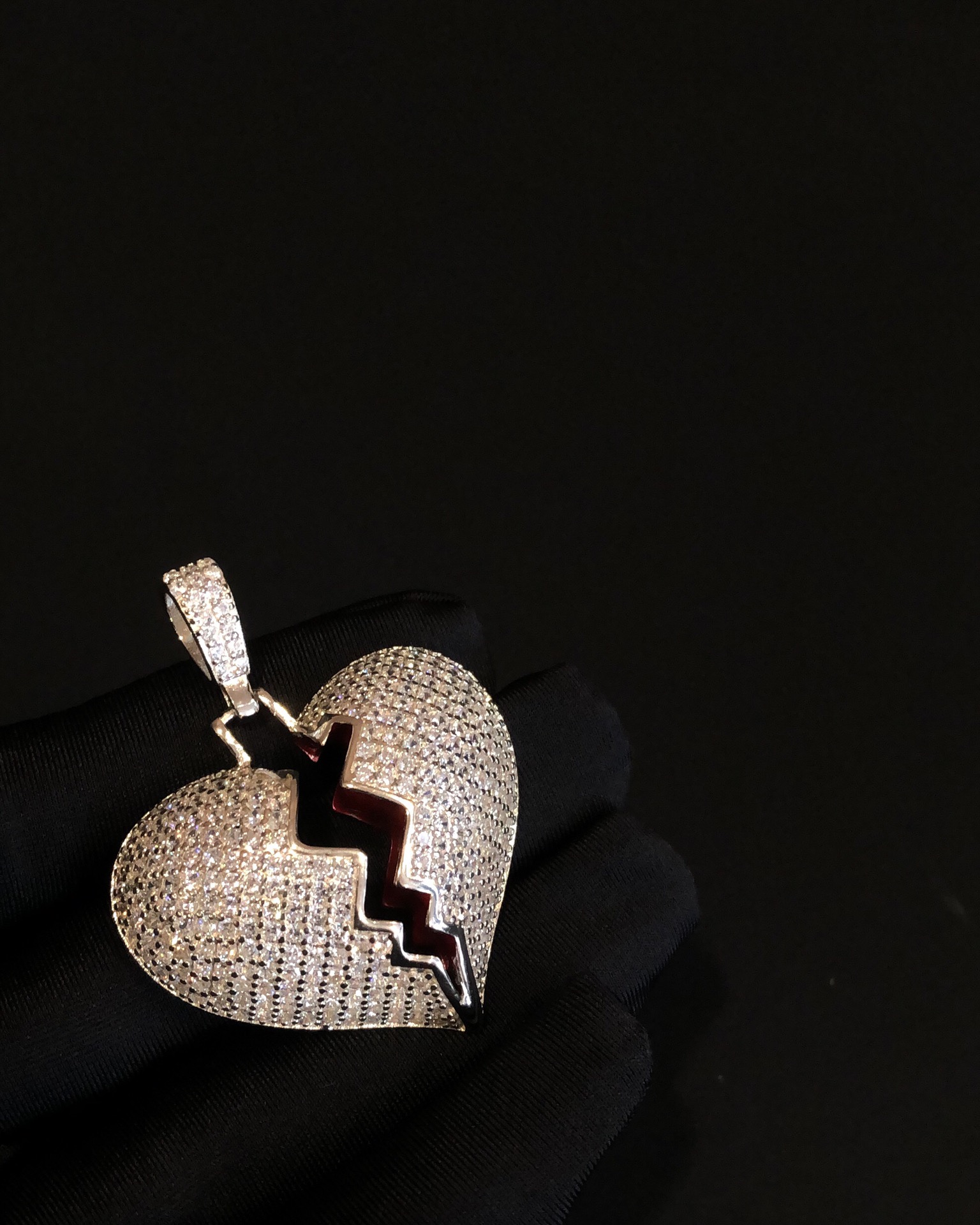 【银镶石系列】素银925满钻嘻哈心碎小鬼同款项链