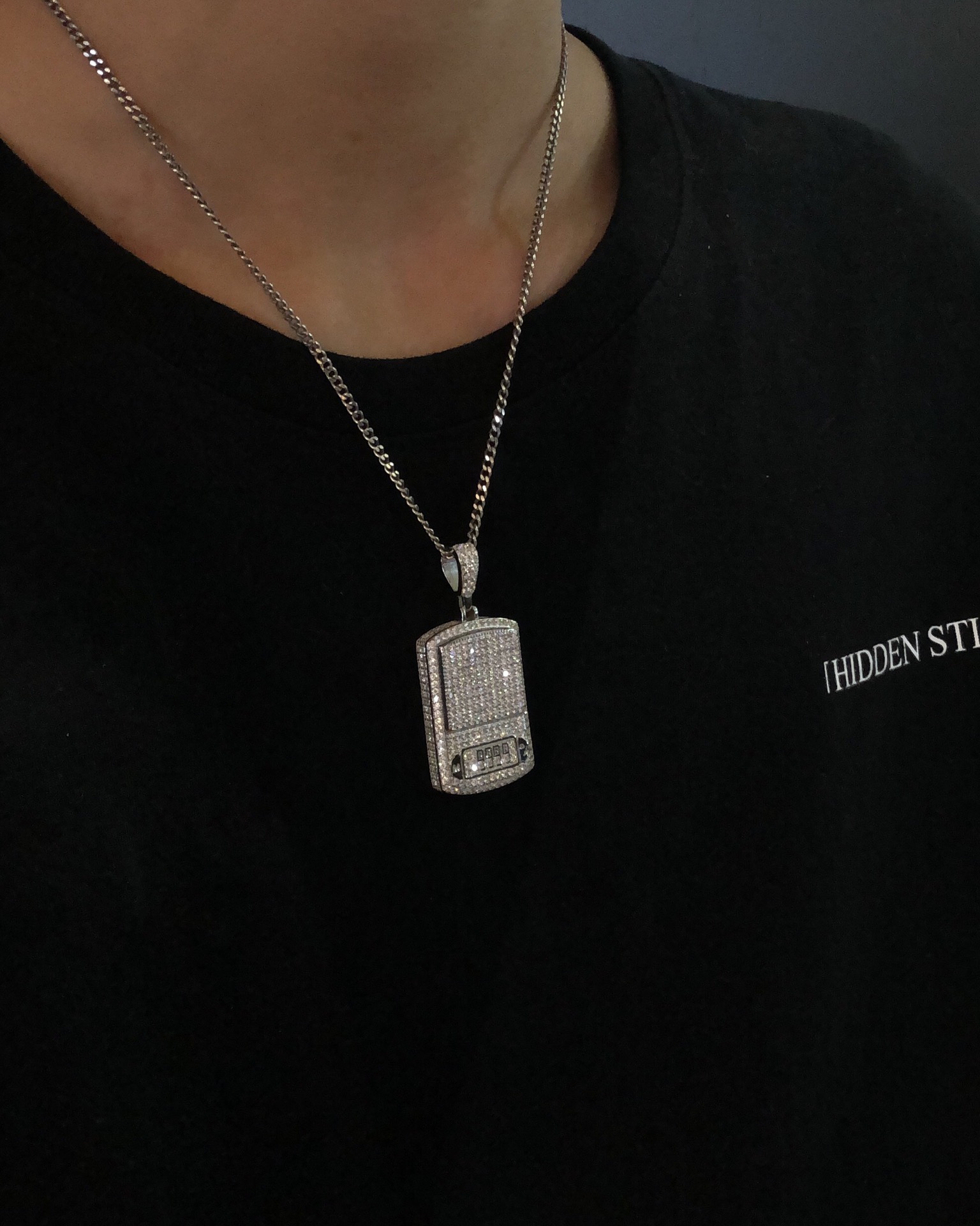 【银镶石系列】素银925满钻嘻哈电子秤项链
