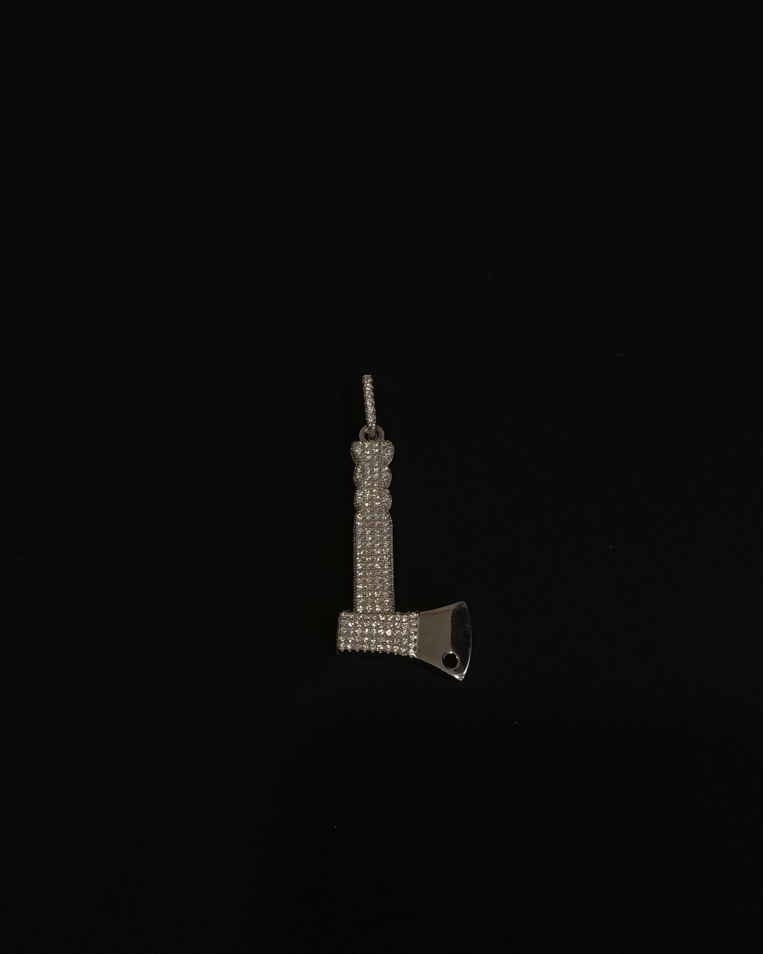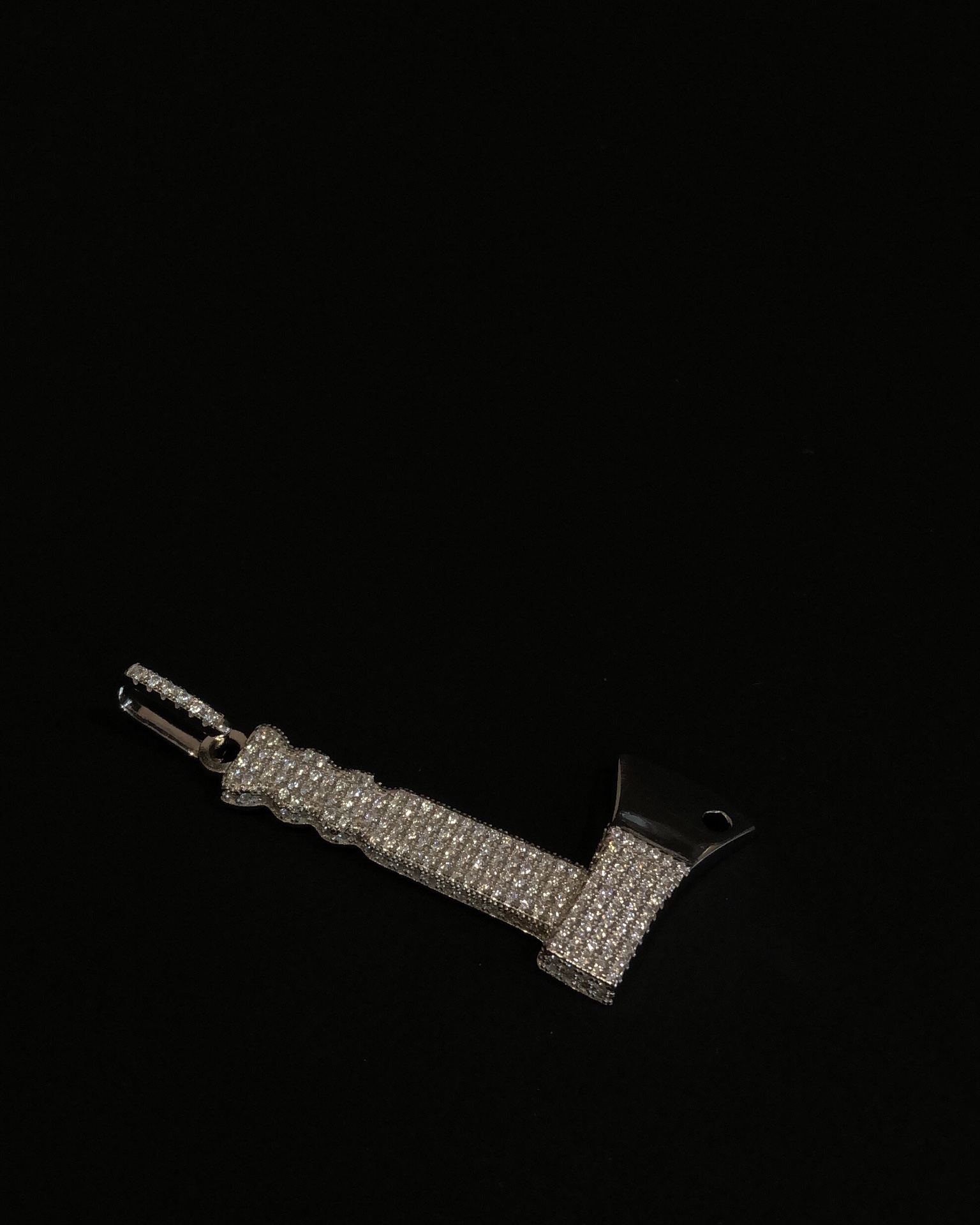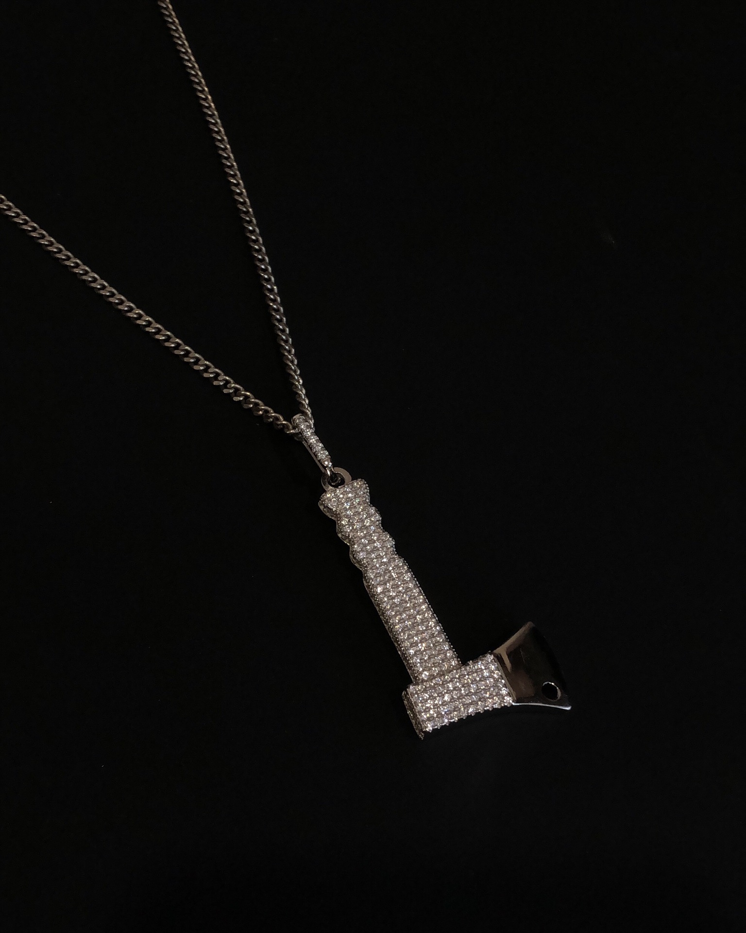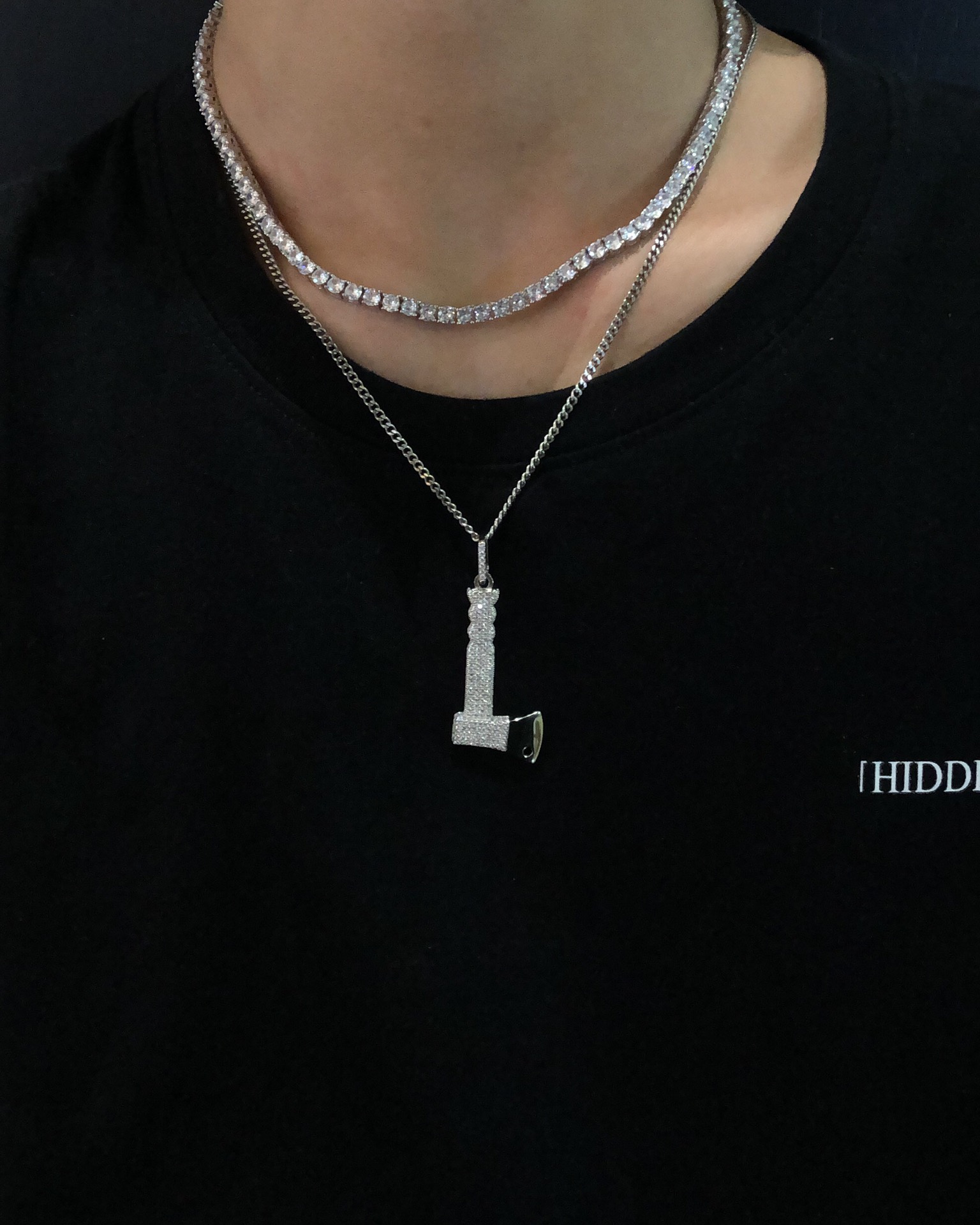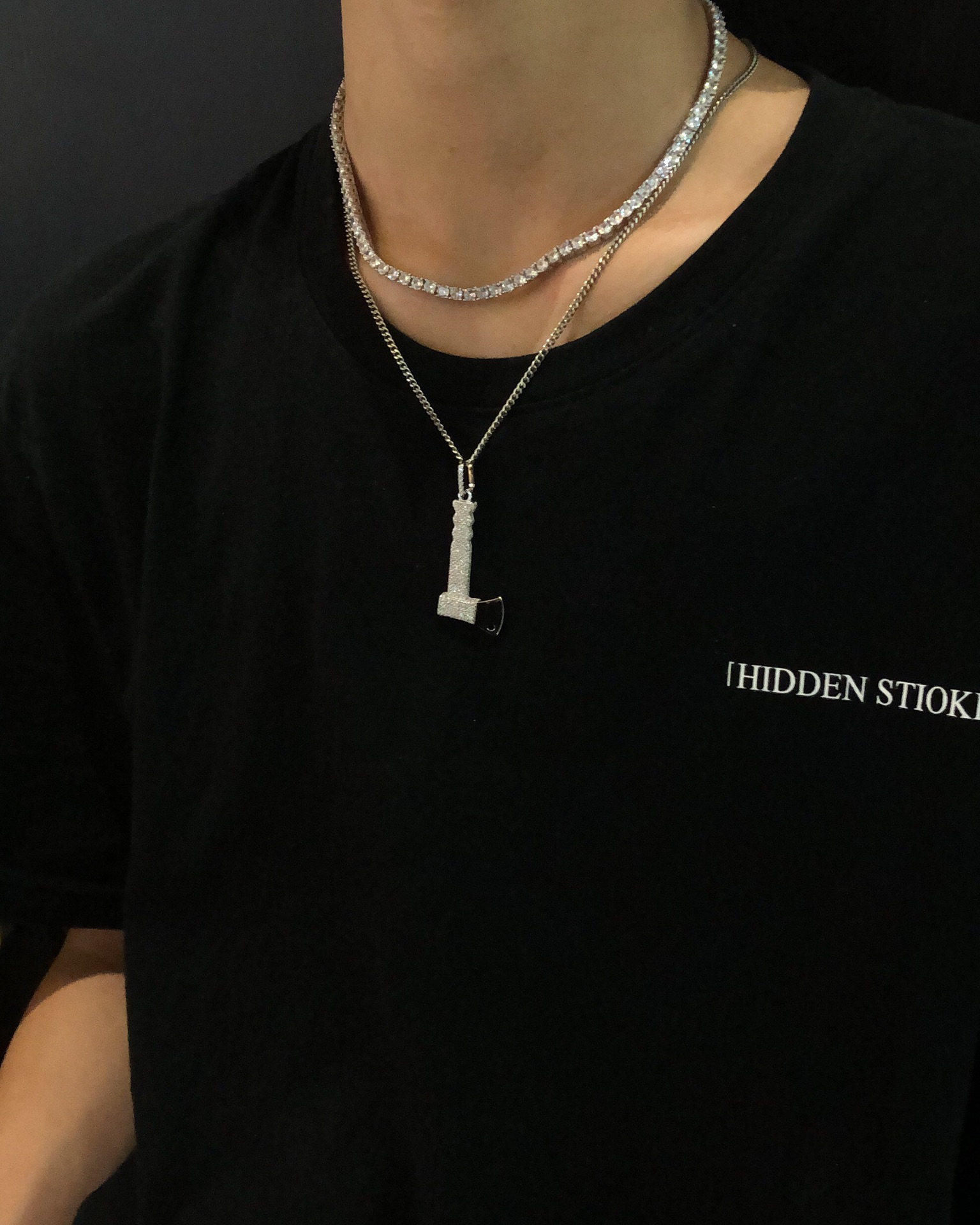 【银镶石系列】素银925满钻嘻哈斧头项链