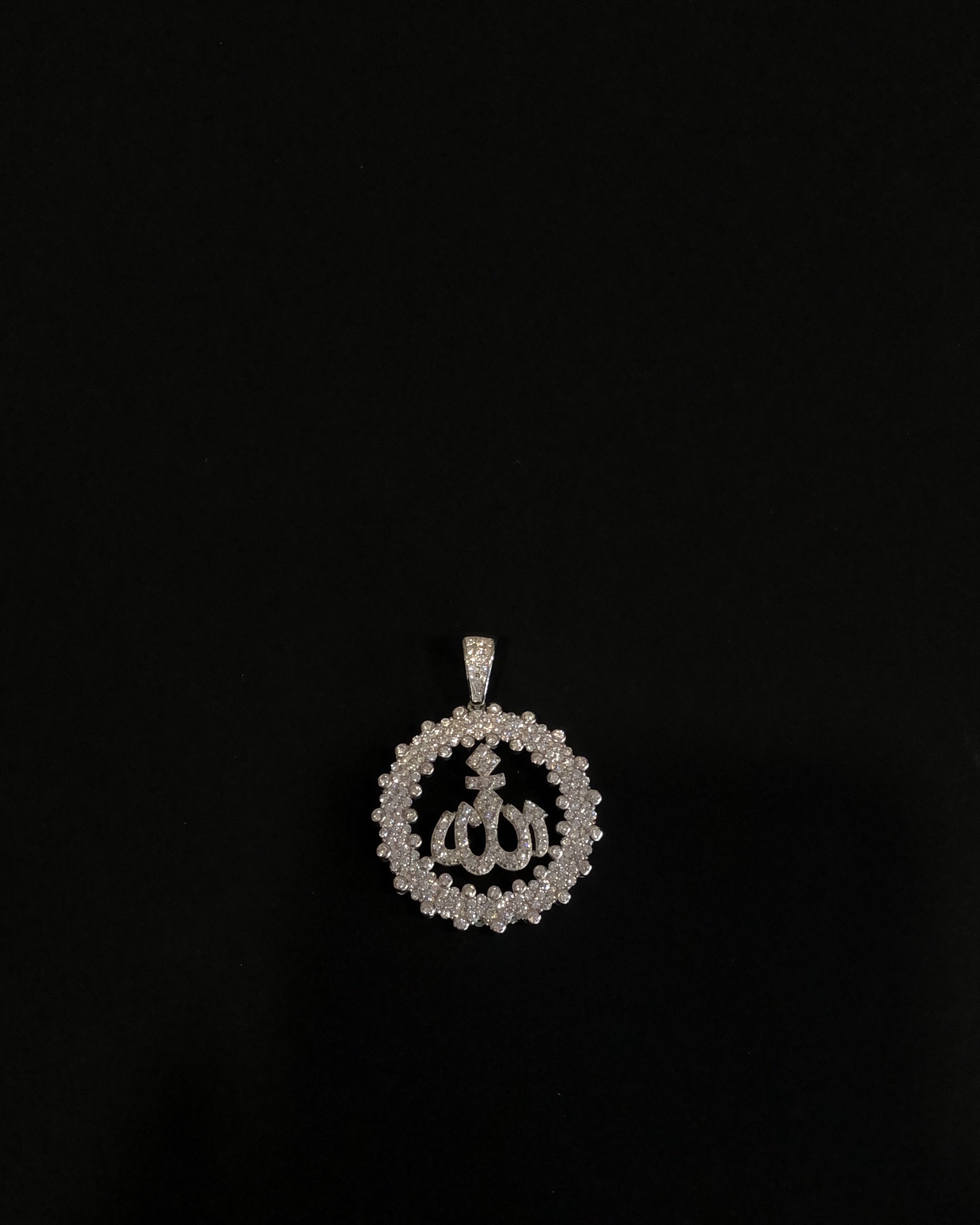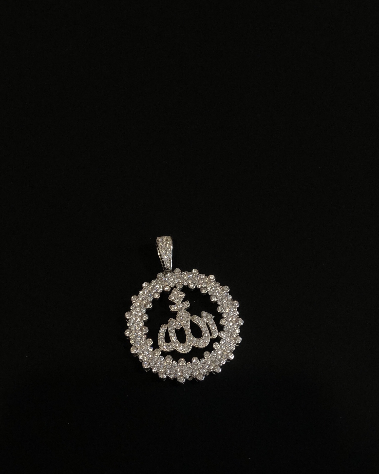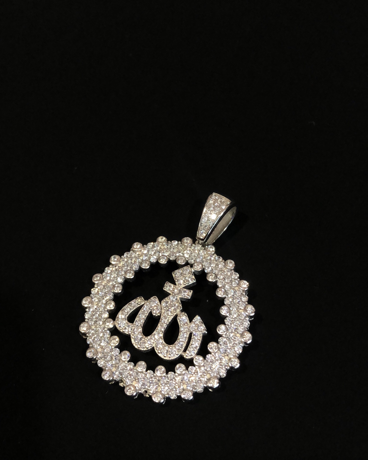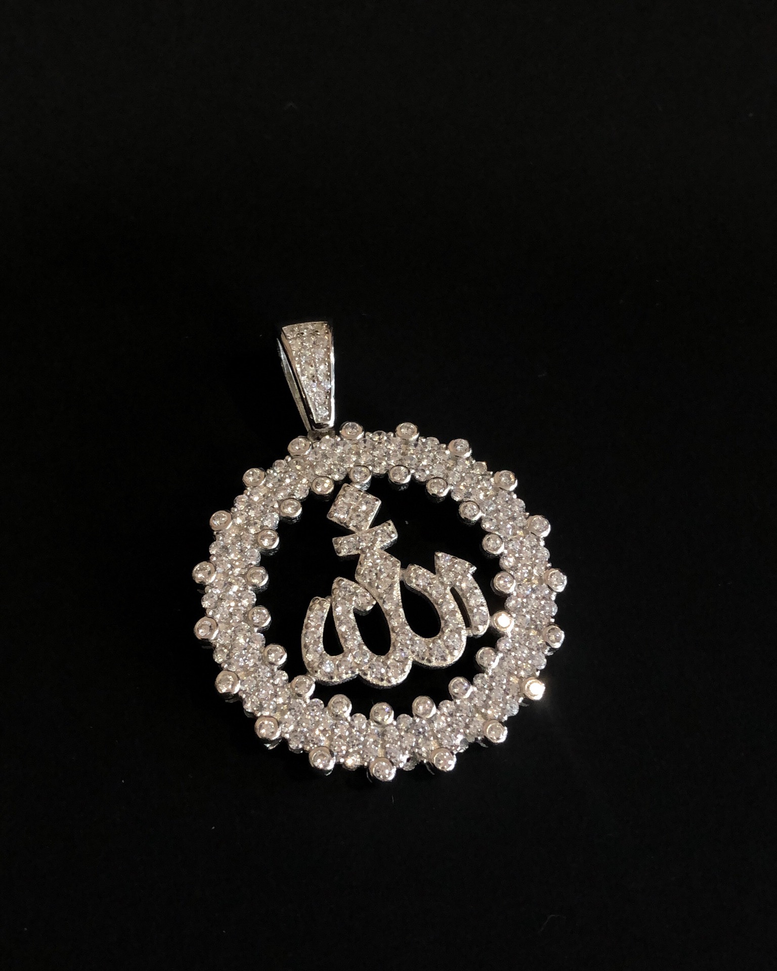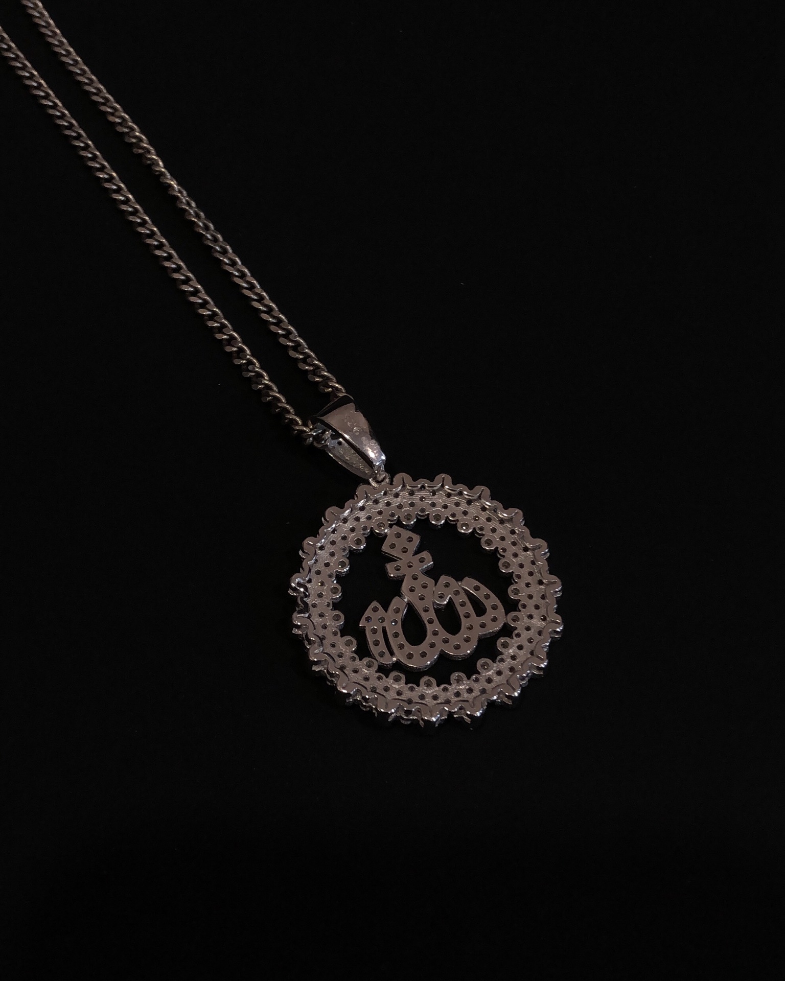 【银镶石系列】素银925满钻嘻哈圆牌项链