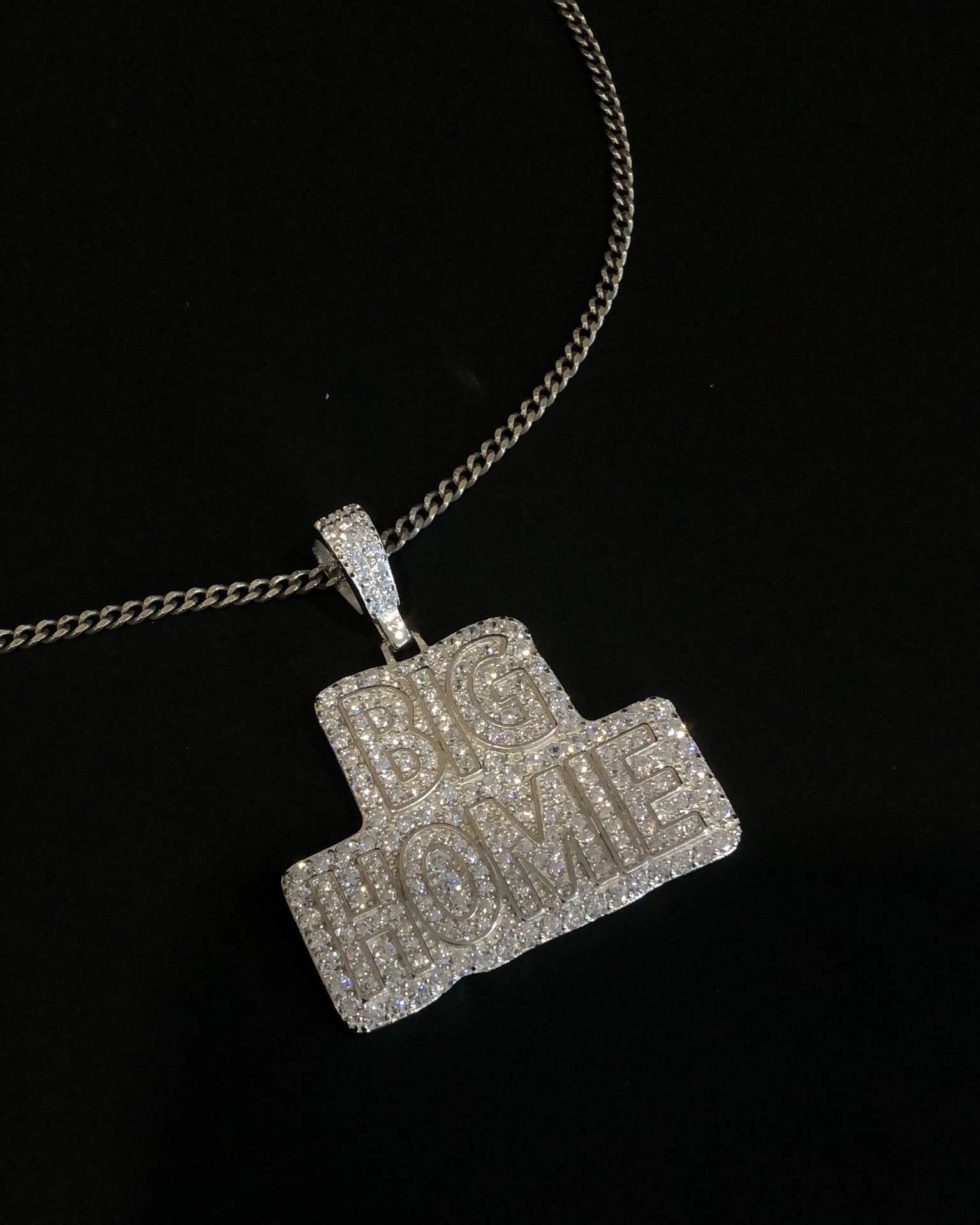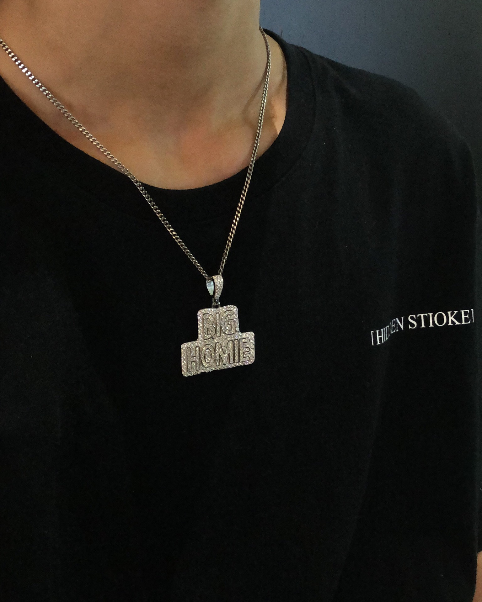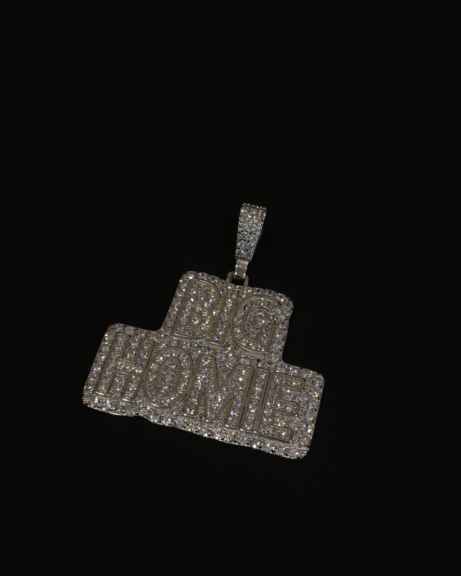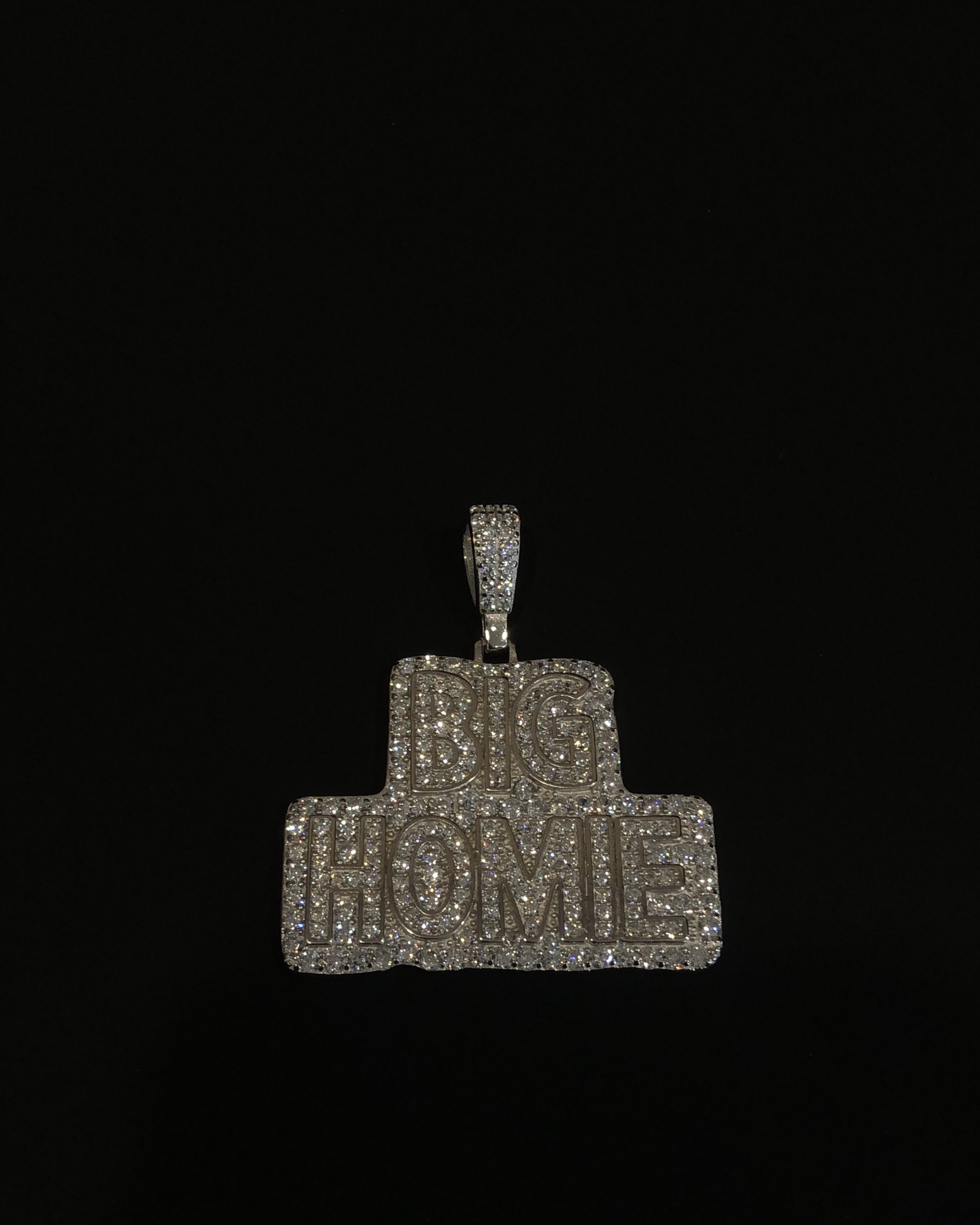 【银镶石系列】素银925满钻嘻哈BIG HOME项链