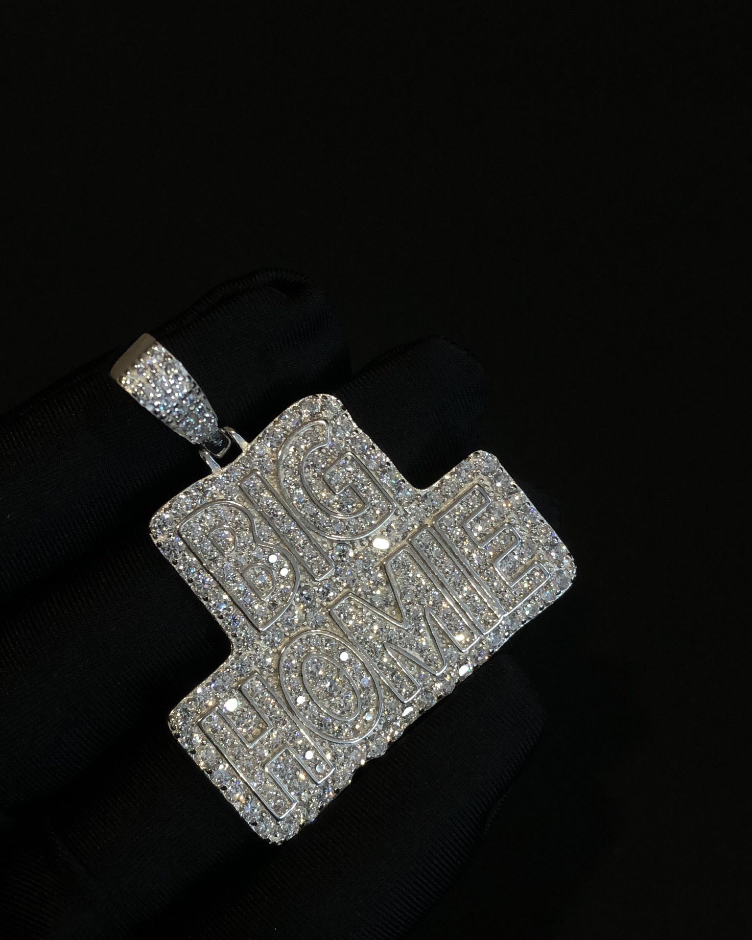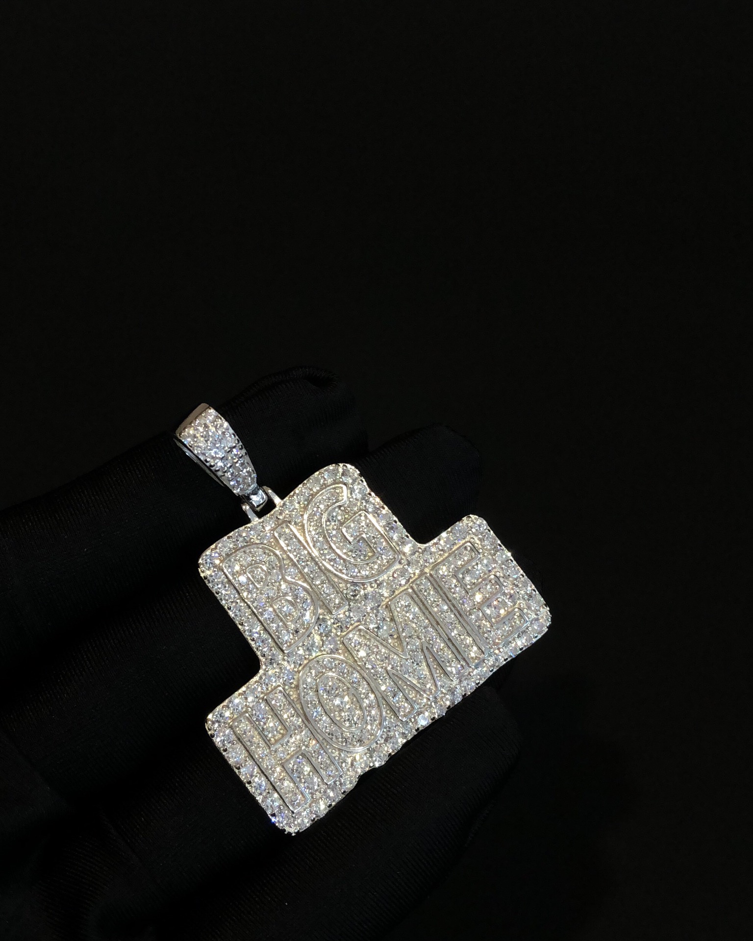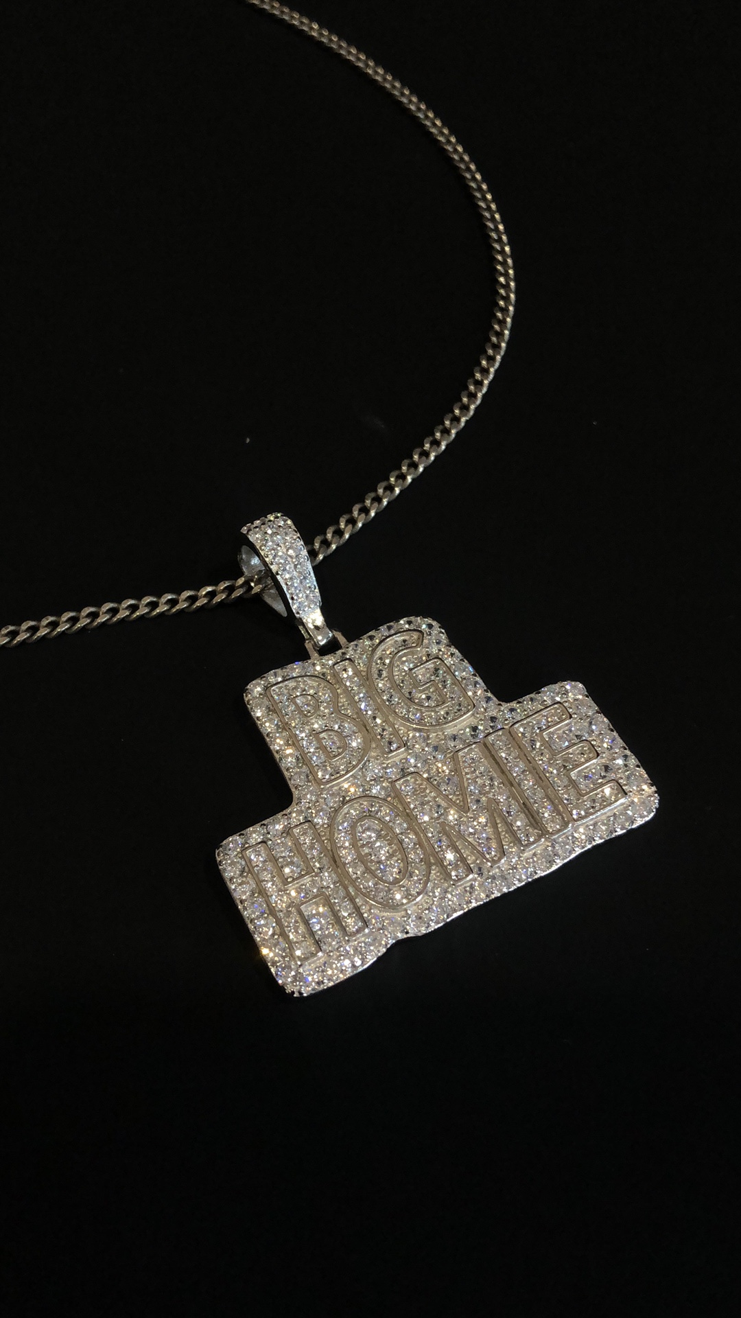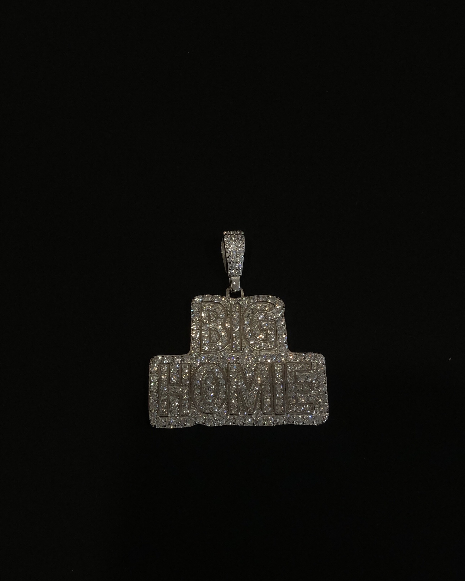 【银镶石系列】素银925满钻嘻哈BIG HOME项链