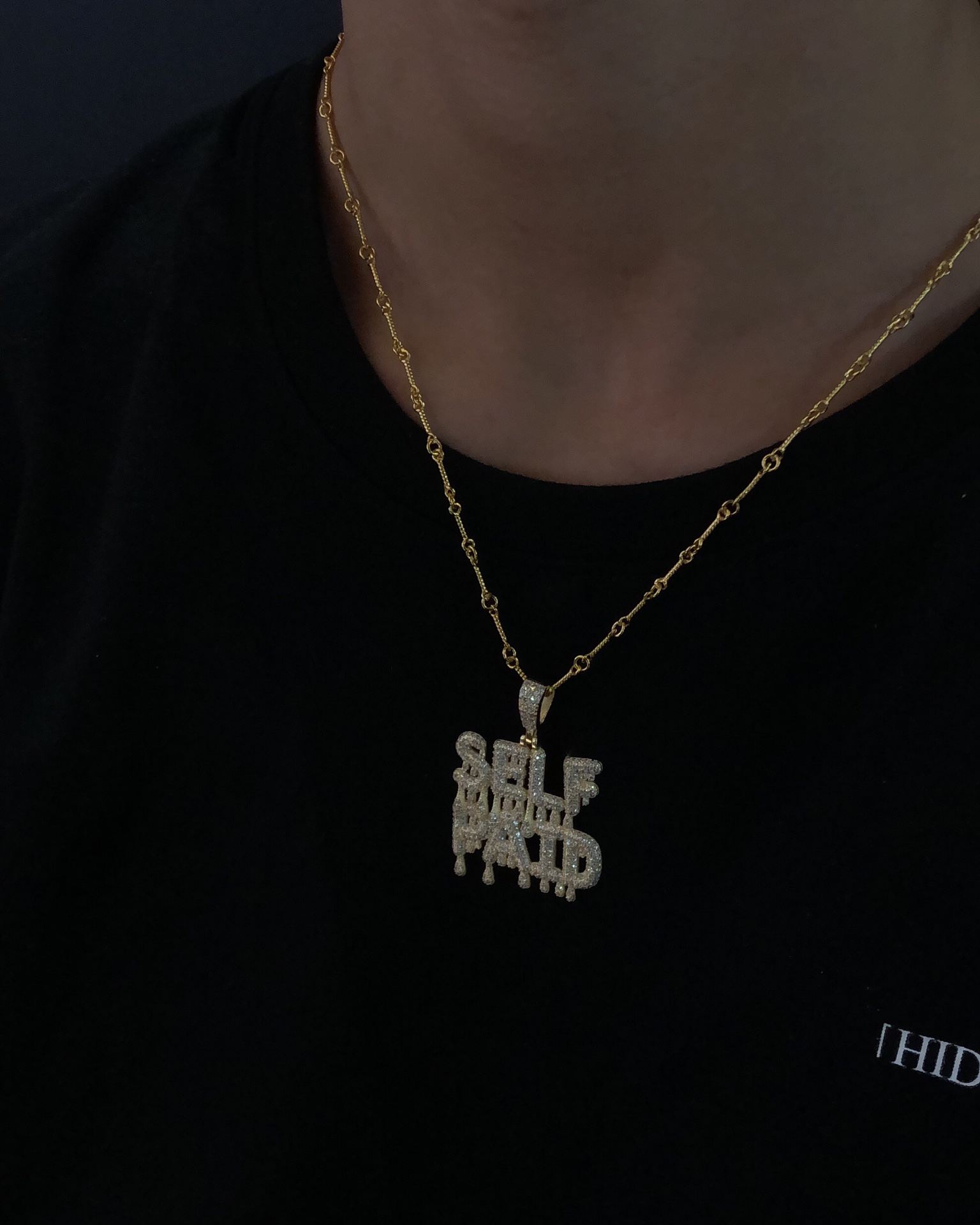 【银镶石系列】素银925满钻嘻哈SEIFPAID 项链