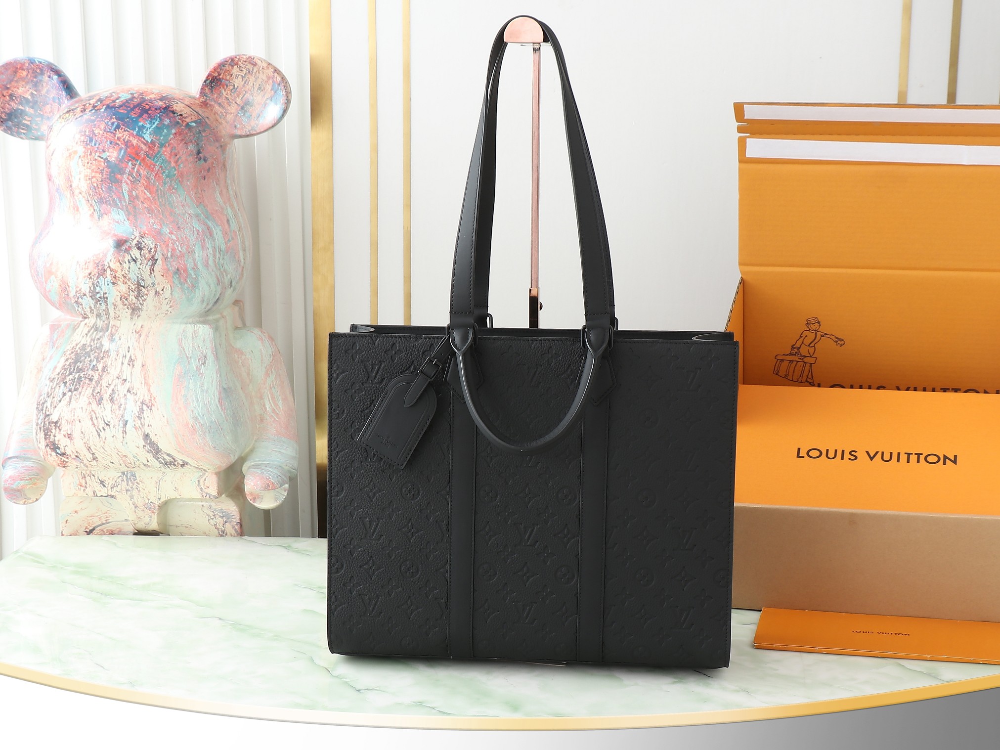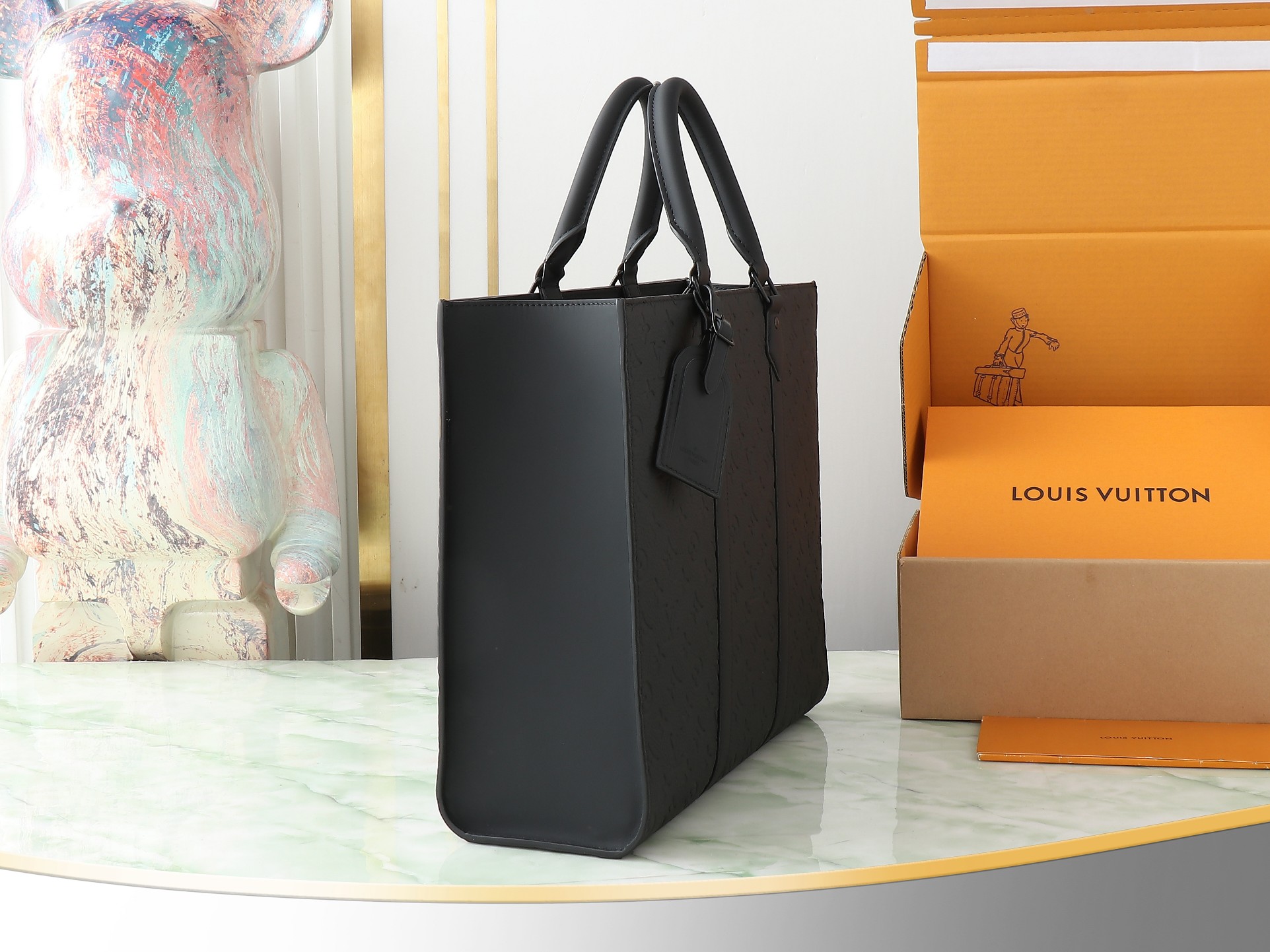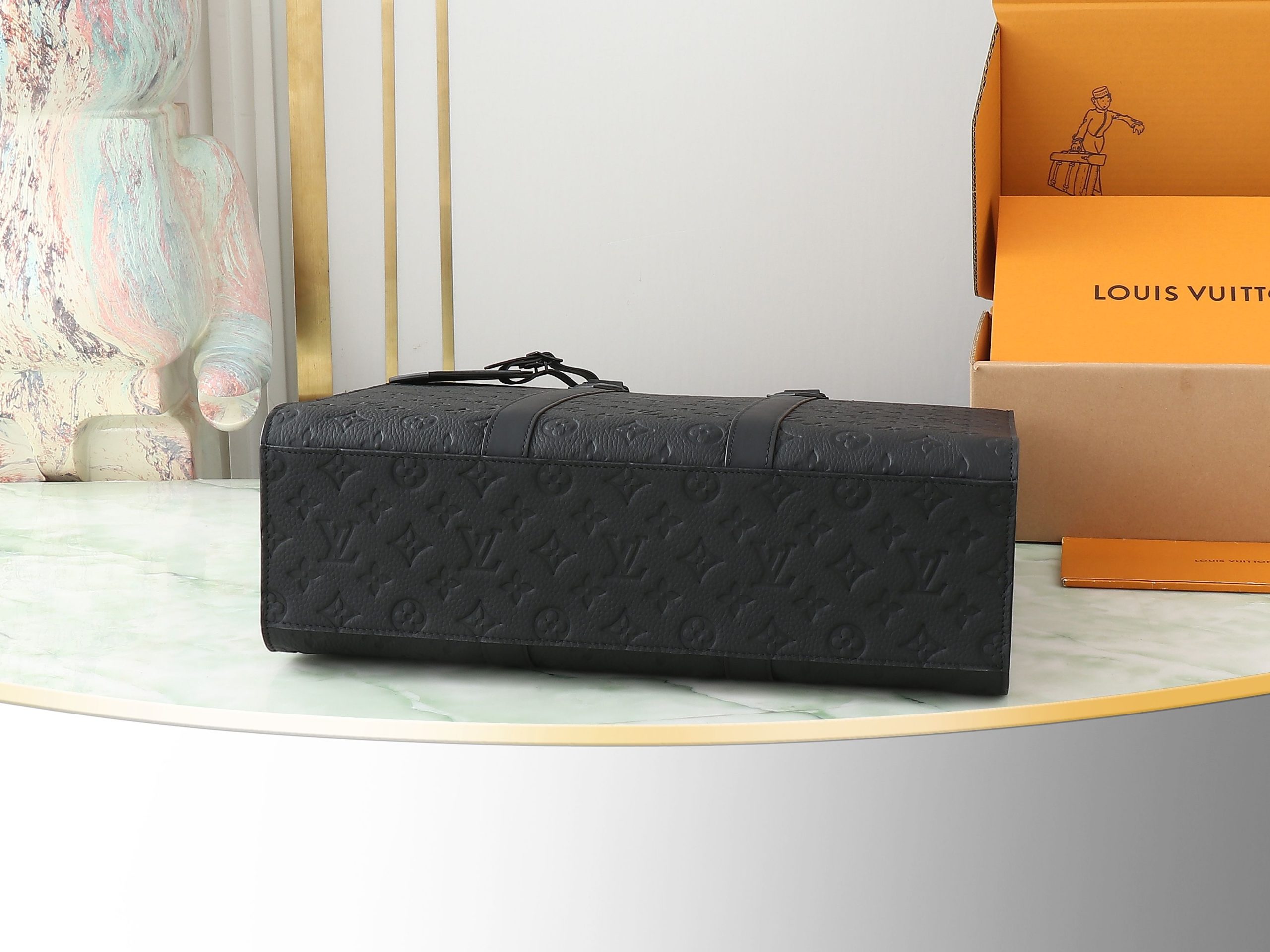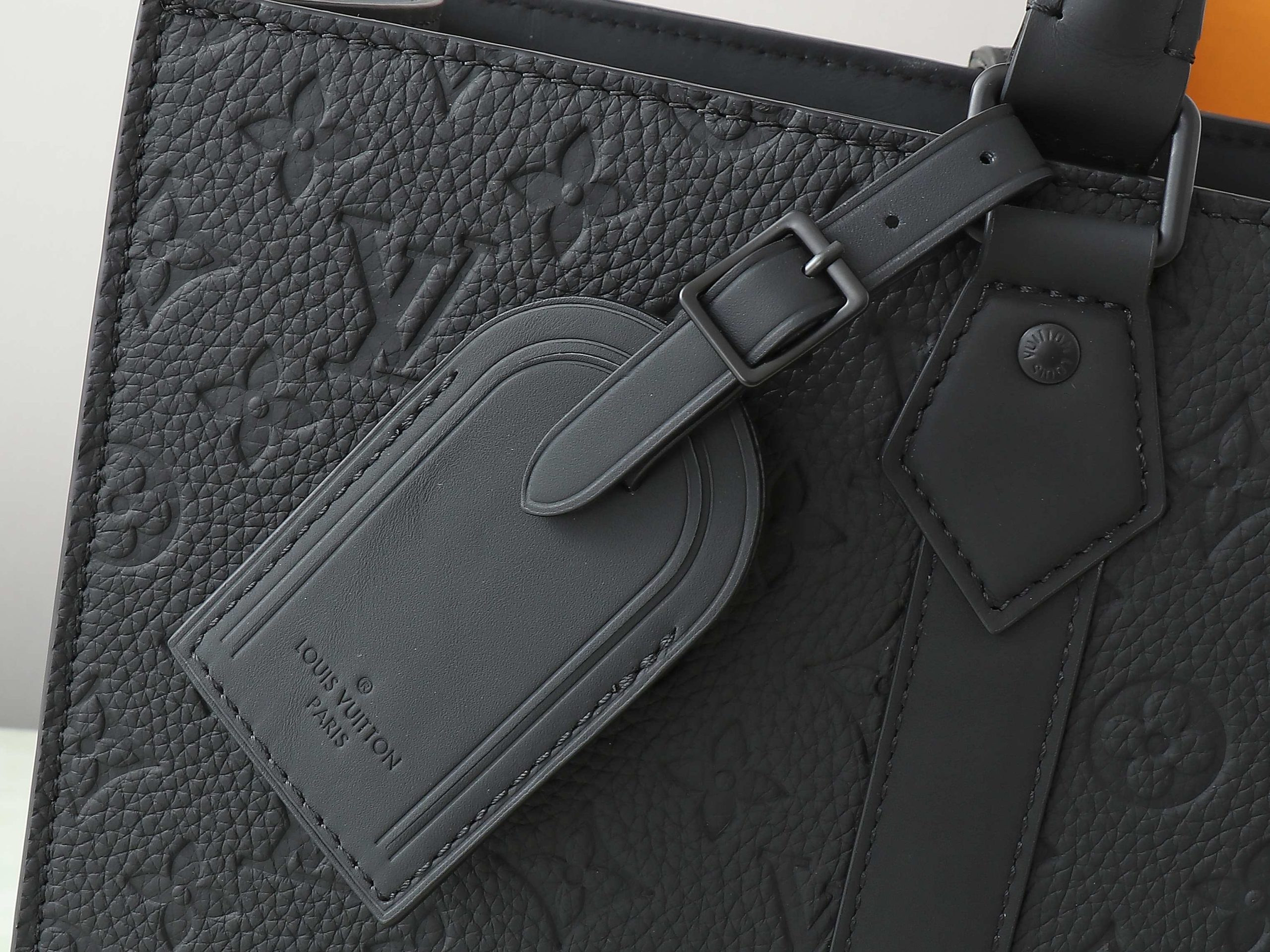 【顶级原单 独家实拍】M24786黑色全皮压花 公文包系列 SAC PLAT 24H 手袋 本款 Sac Plat 24H 托特包取材 Monogram 压纹 Taurillon Hx牛皮革,为宽敞内部空间搭配口袋和拉链内袋,可稳妥收纳贵重物品。短手柄方便手提,长手柄实现肩背。尺寸:41 x 33 x 14 厘米。