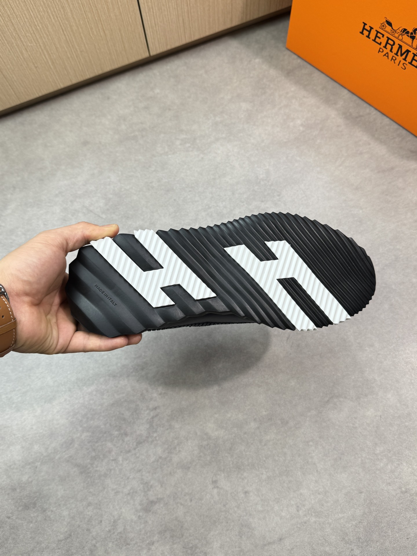 -鞋面: 纳帕小牛皮、纯手工编织工艺、鞋舌空压品牌logo