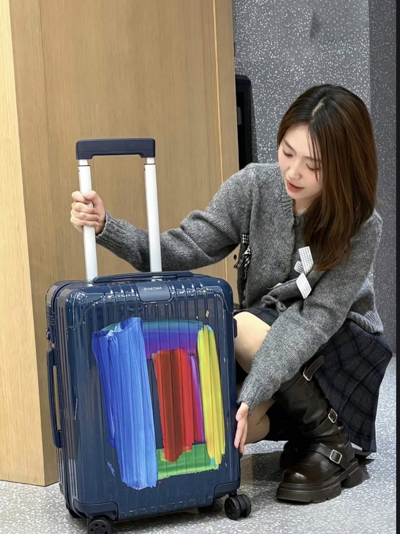·艺术内饰:打开箱盖,Ptolemy Mann的蓝色笔触跃然于RIMOWA的可调节式隔板之上,每一次开启都是一场视觉盛宴。