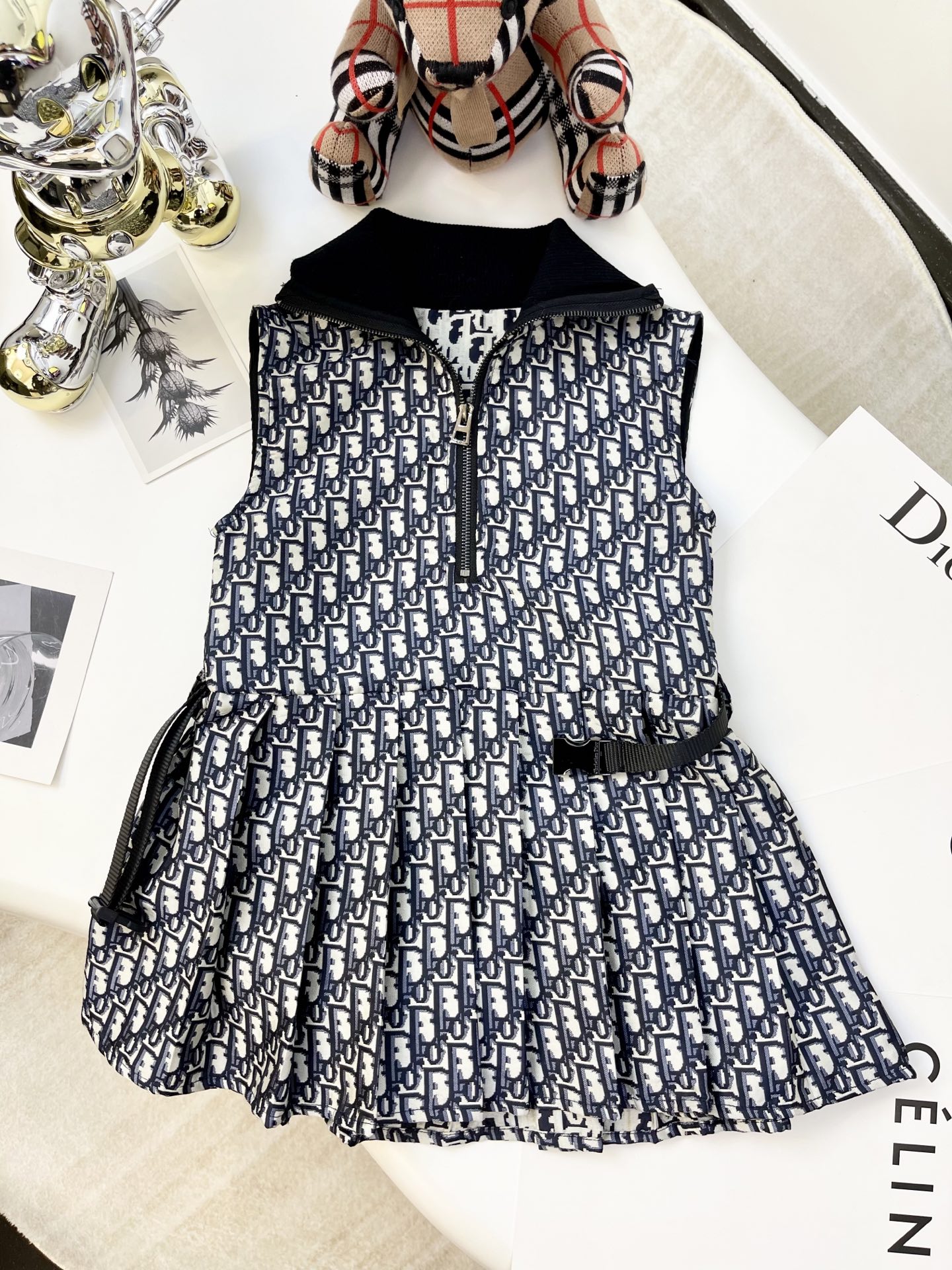 DIOR 迪奥 2025夏季童装新款裙子 进口机器提花面料 重磅面料 圆领连衣裙 原版品质 认准高品质 女童