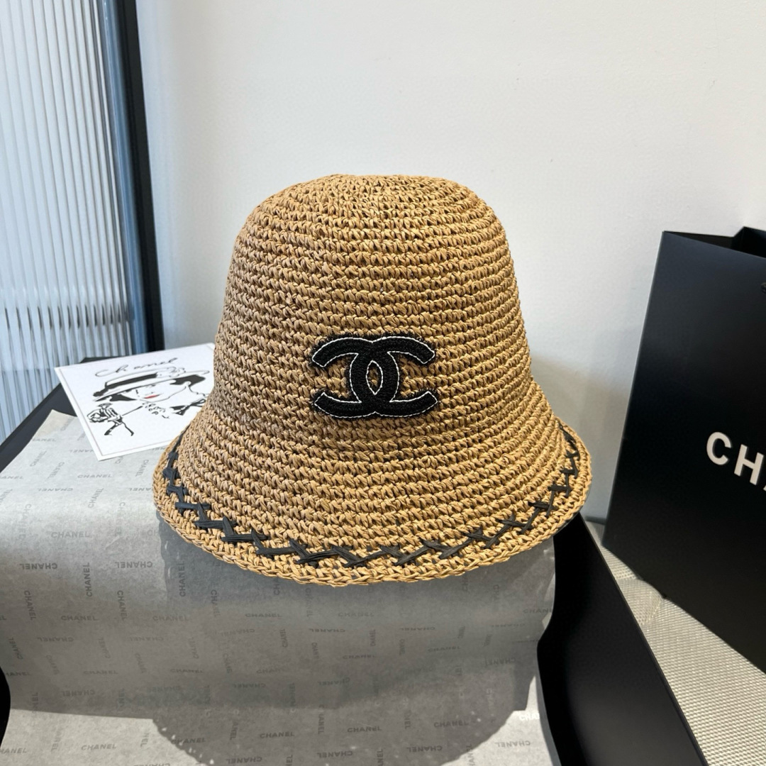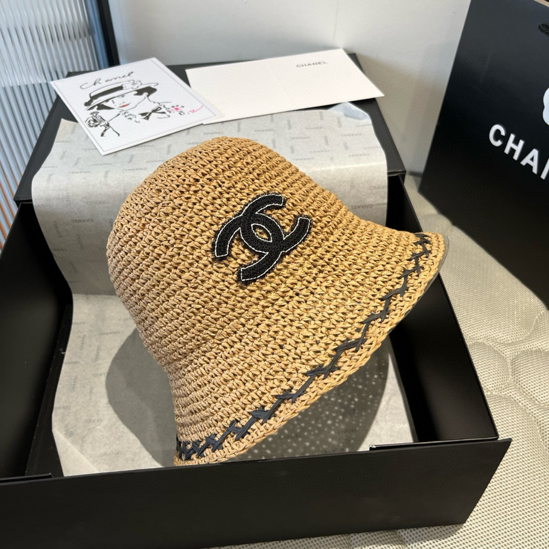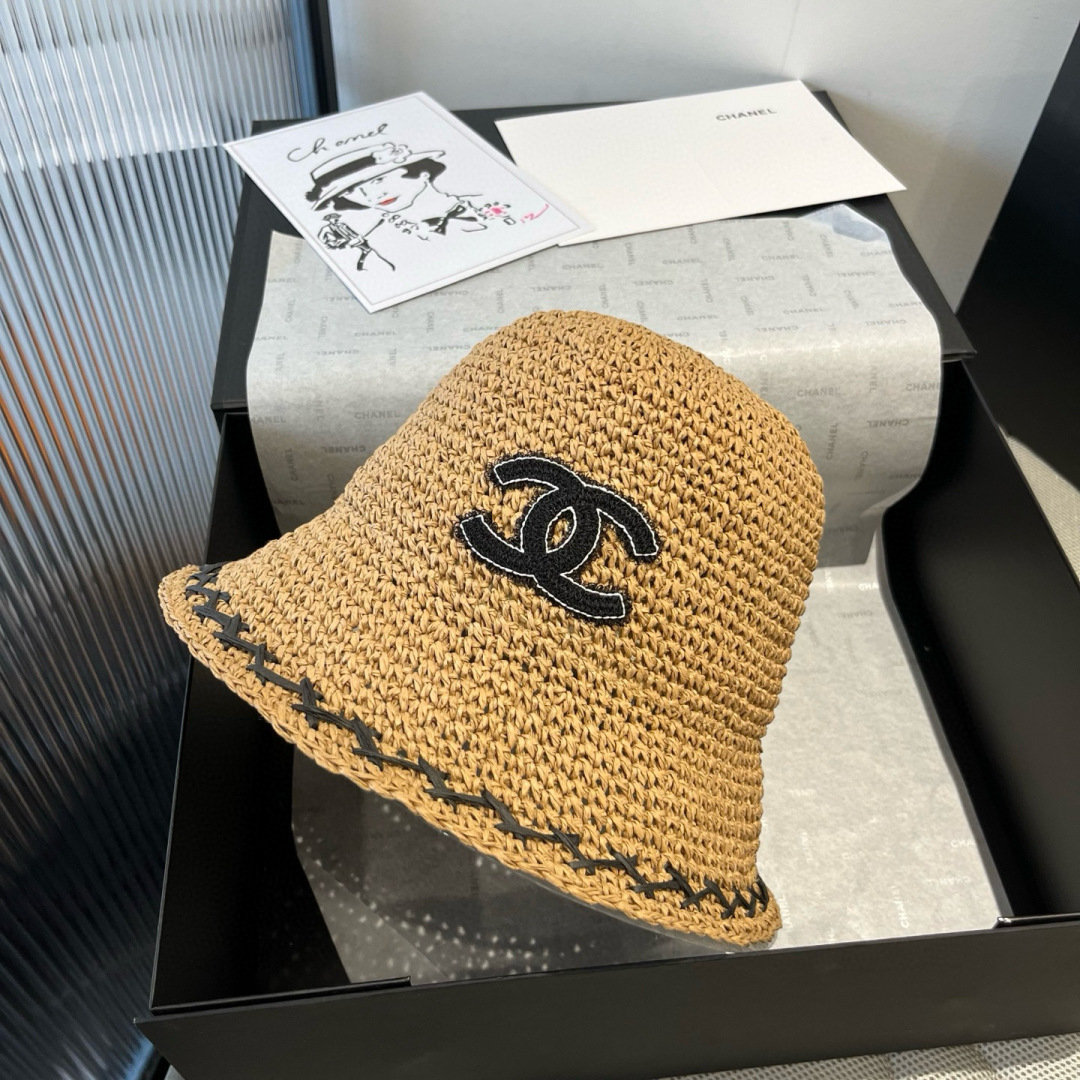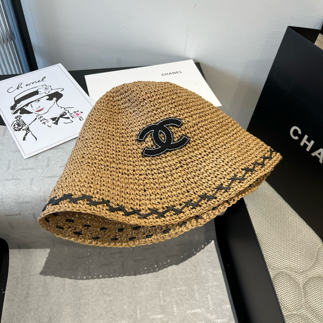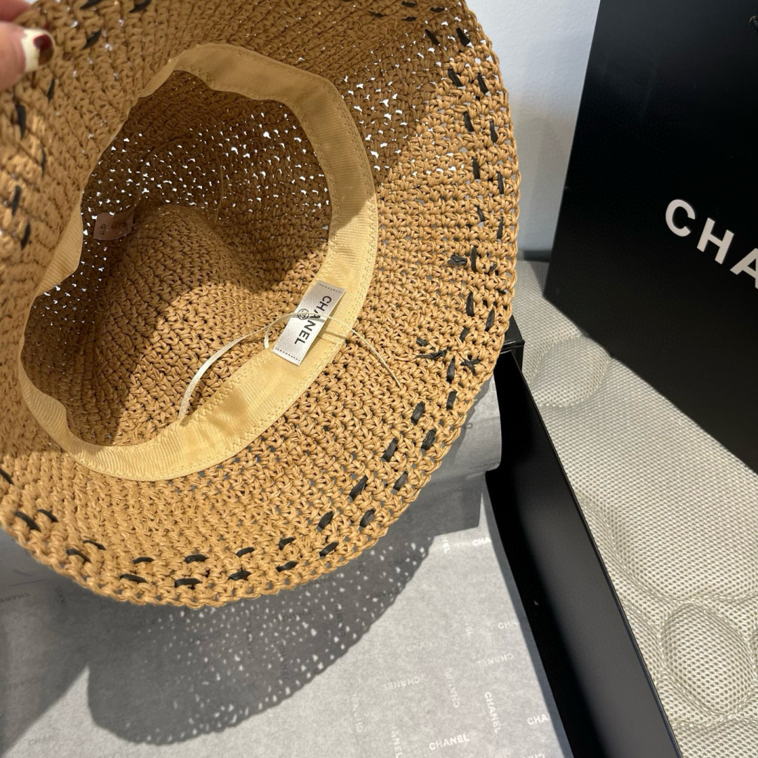 香奈儿Chanel 新款草帽,手工钩织草编帽,可折叠,携带方便,头围57cm