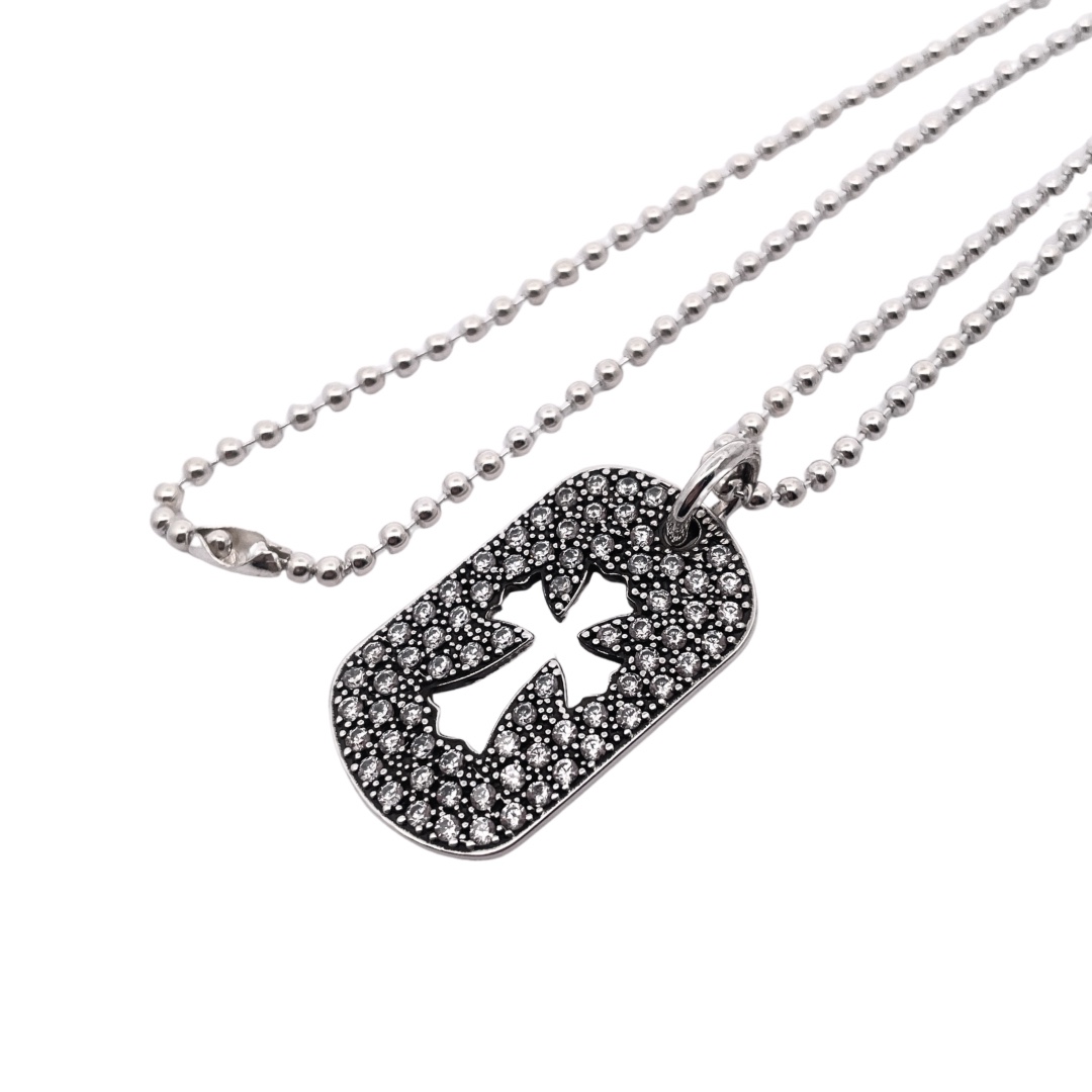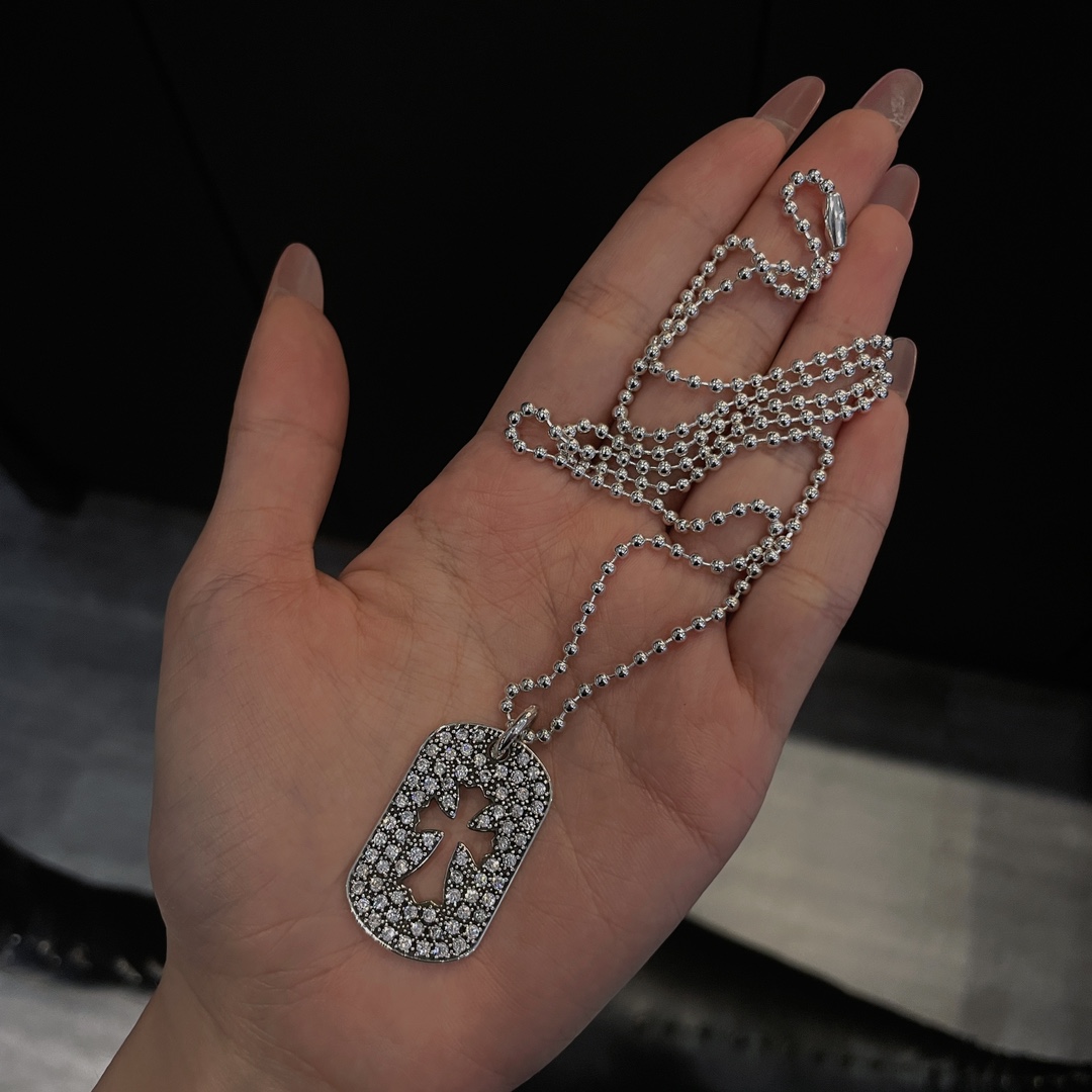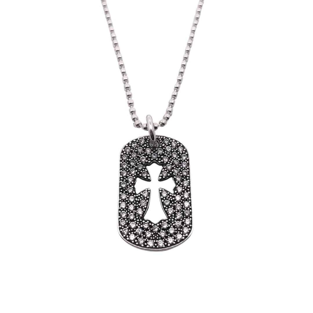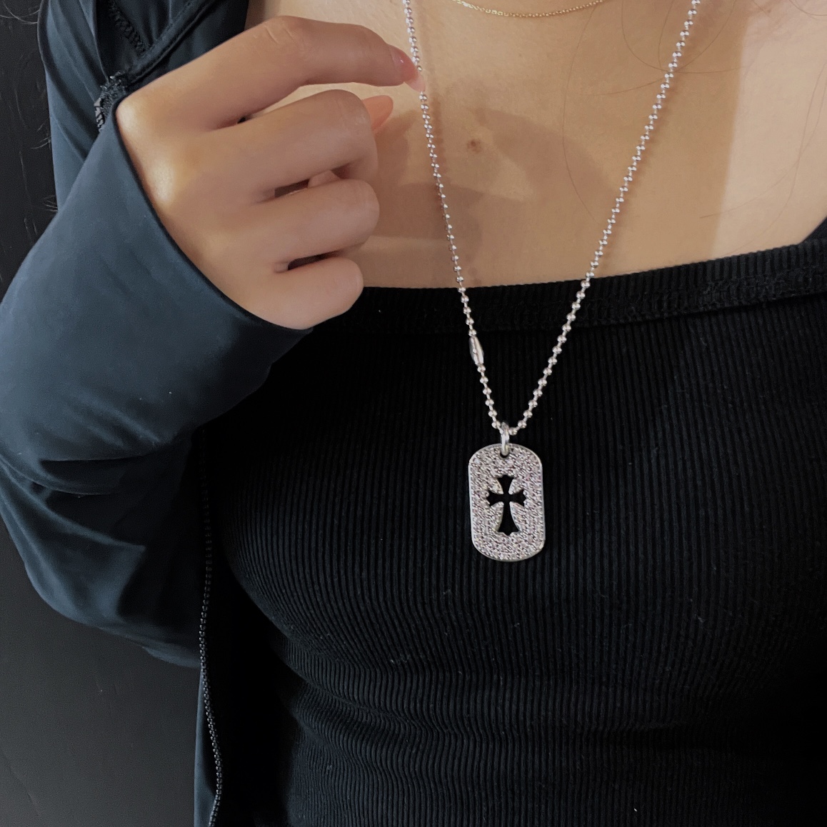 纯银材质 复古做旧 手工镶嵌 十字架元素 白钻 配圆珠链 时尚搭配