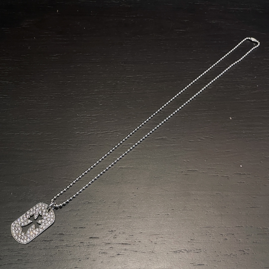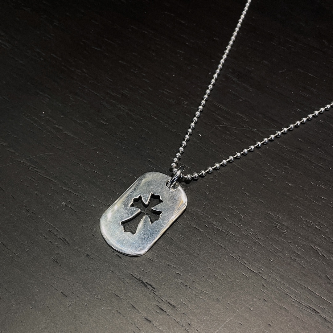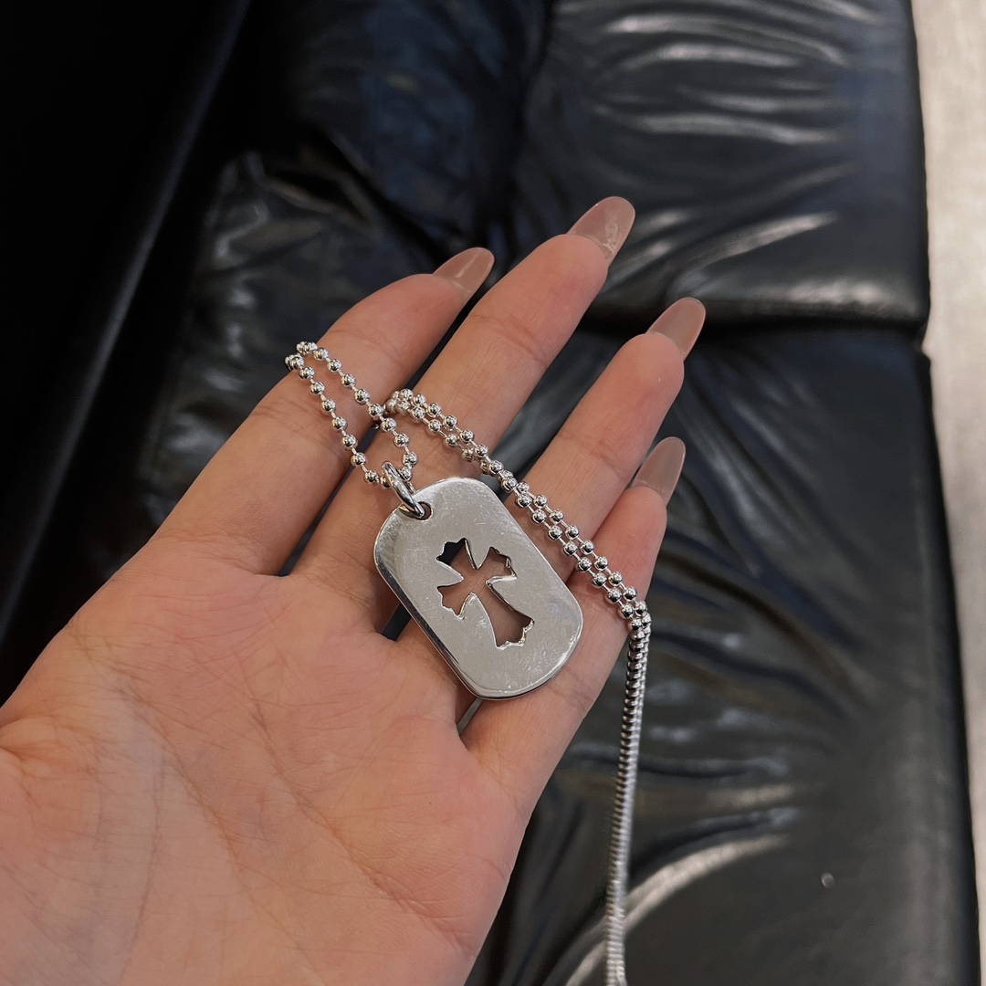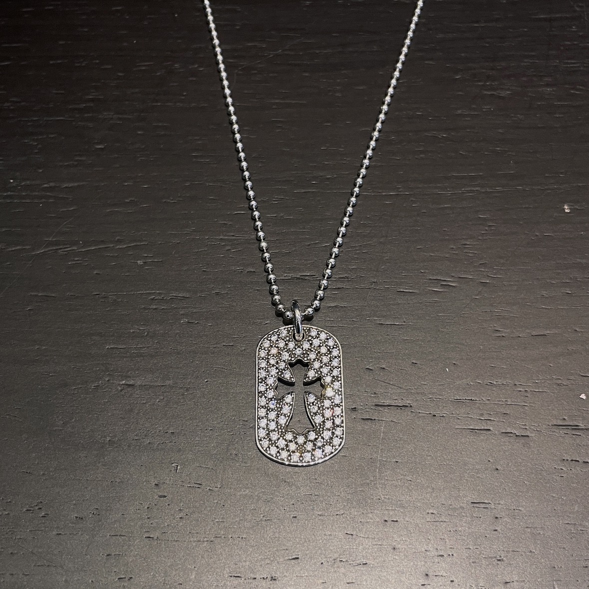 纯银材质 复古做旧 手工镶嵌 十字架元素 白钻 配圆珠链 时尚搭配