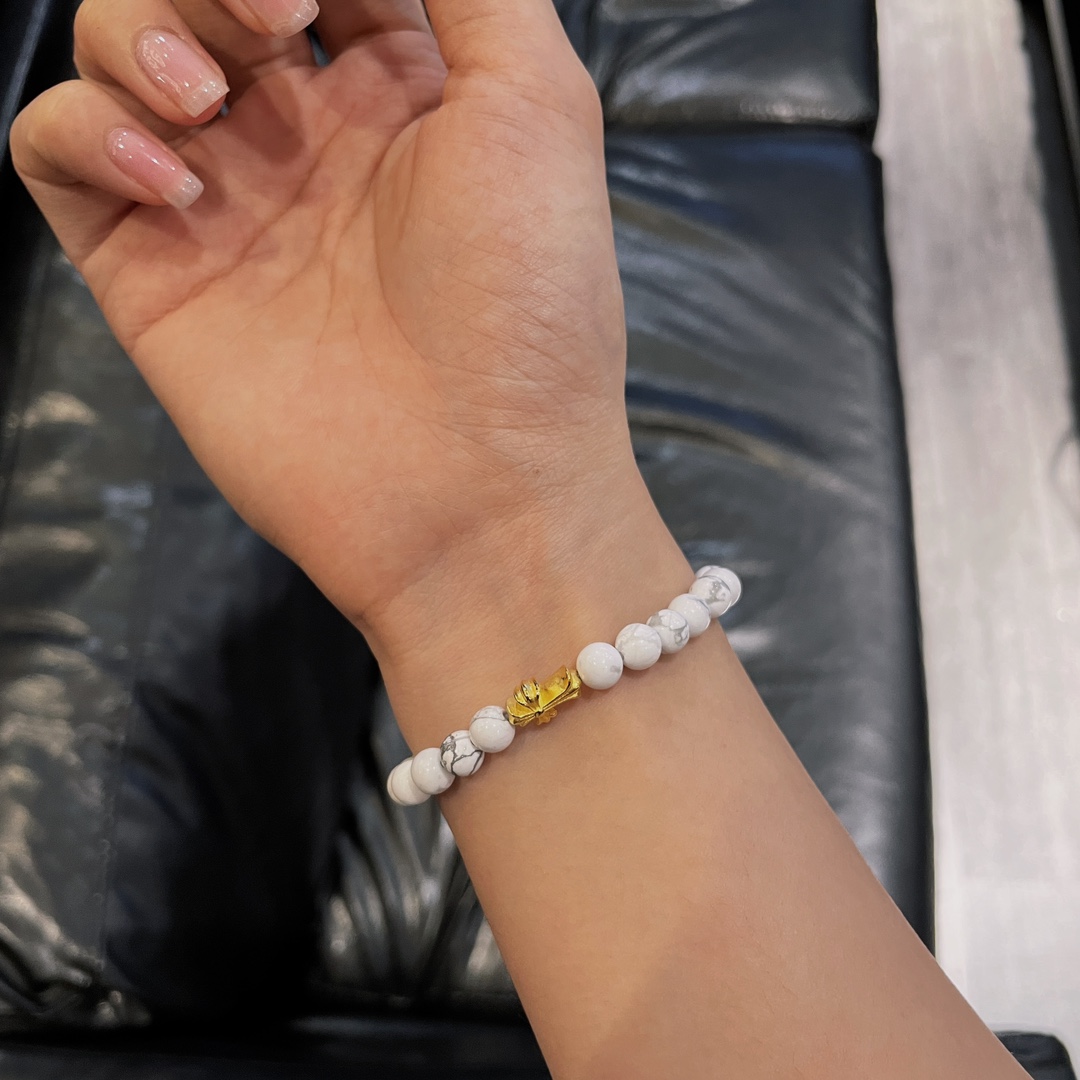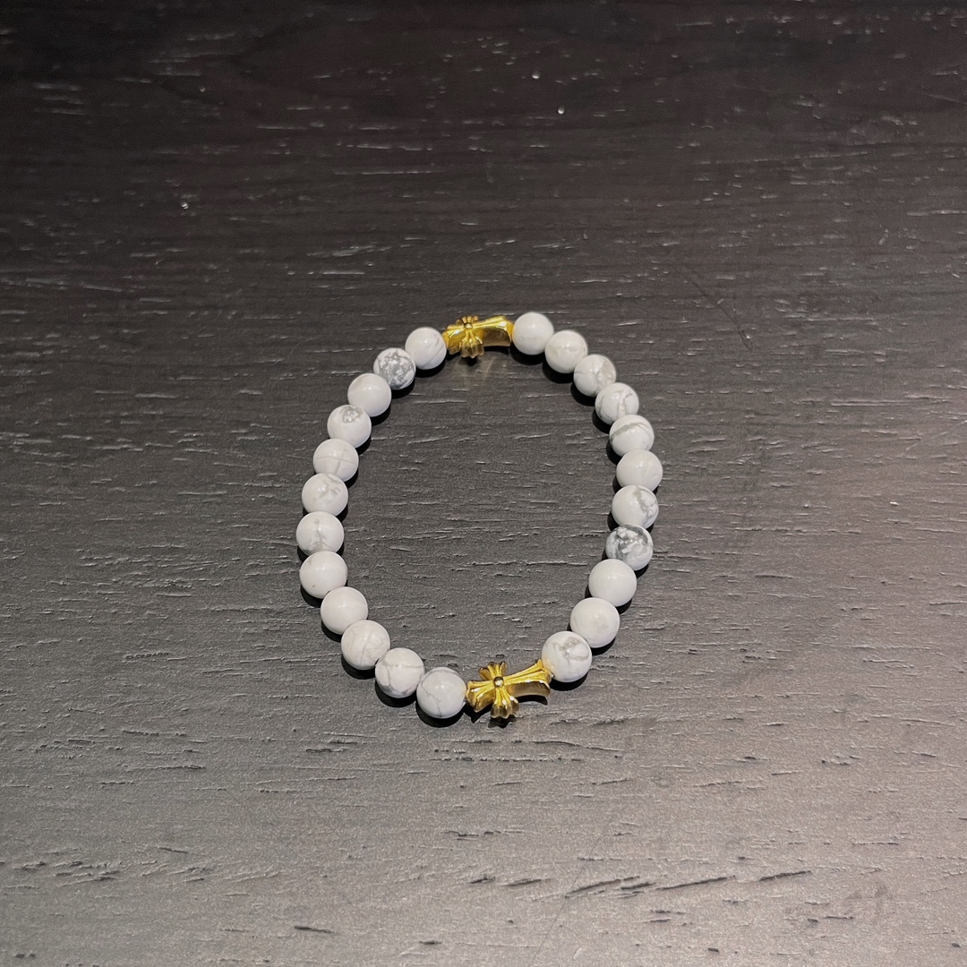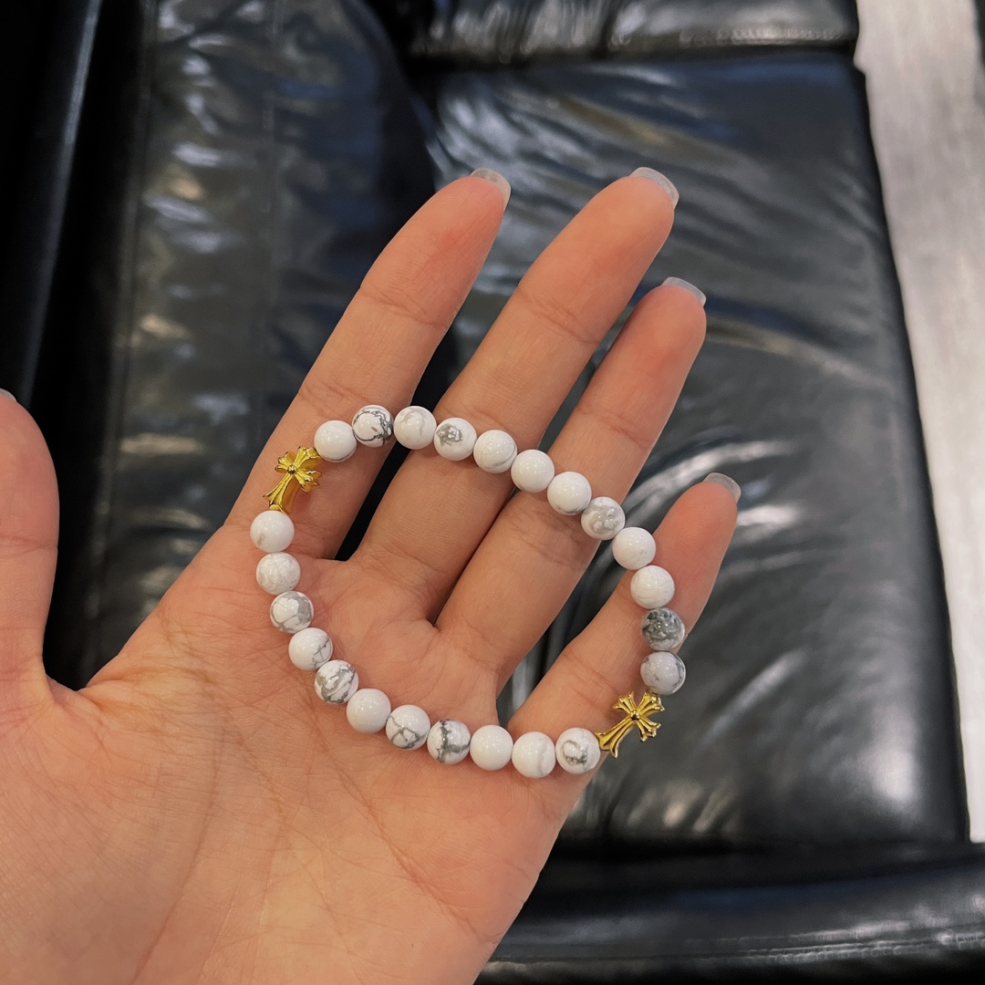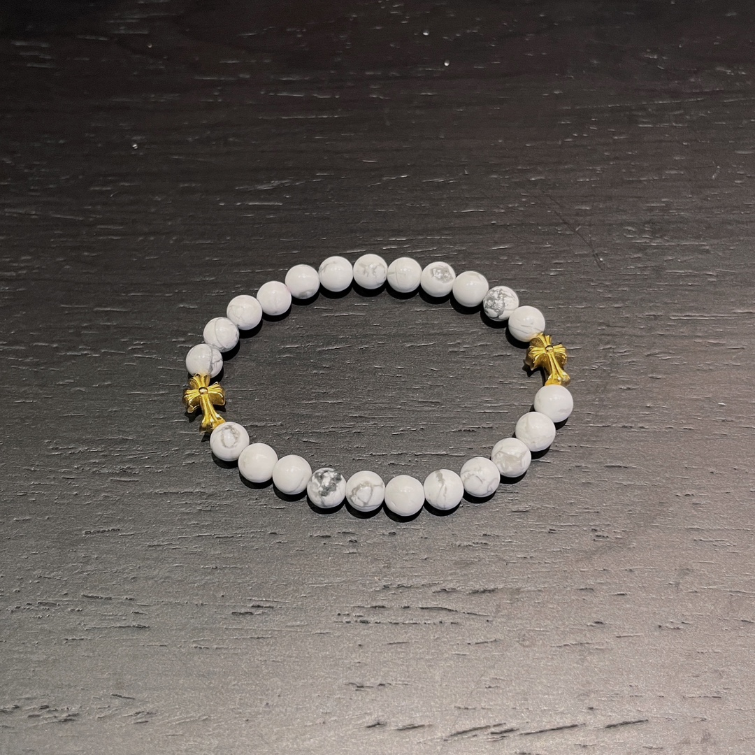 克罗心 十字镀金白玛瑙手串 纯银镀金材质 白玛瑙 十字元素 规格: 6mm 编码:300320