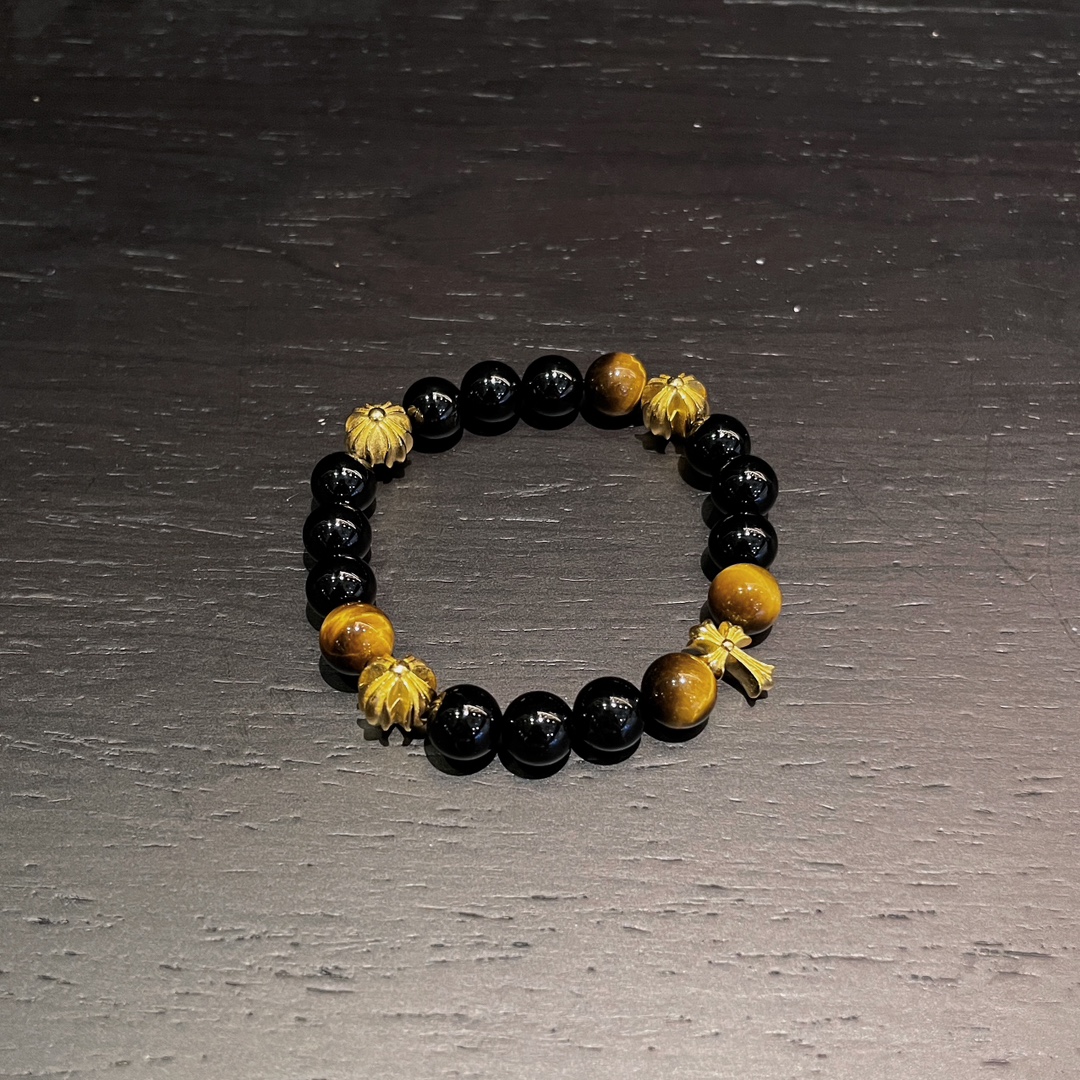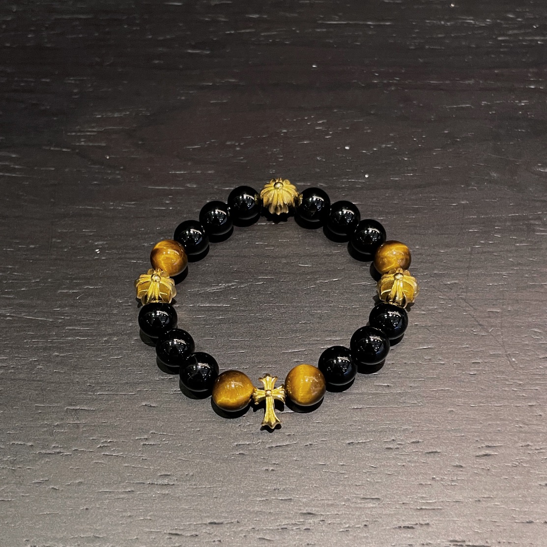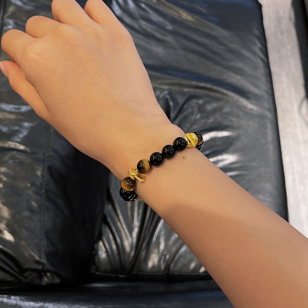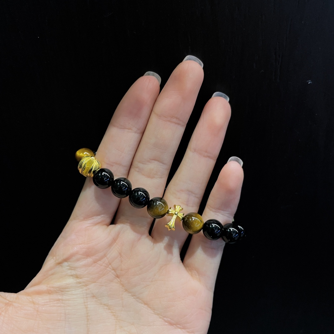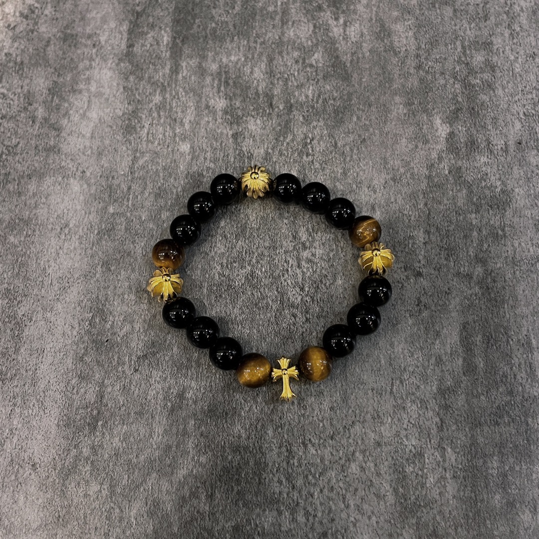 克罗心 十字黑玛瑙琥珀石手串 纯银镀金材质 黑玛瑙琥珀石 十字元素 规格: 8mm 实心珠8mm 编码:300520