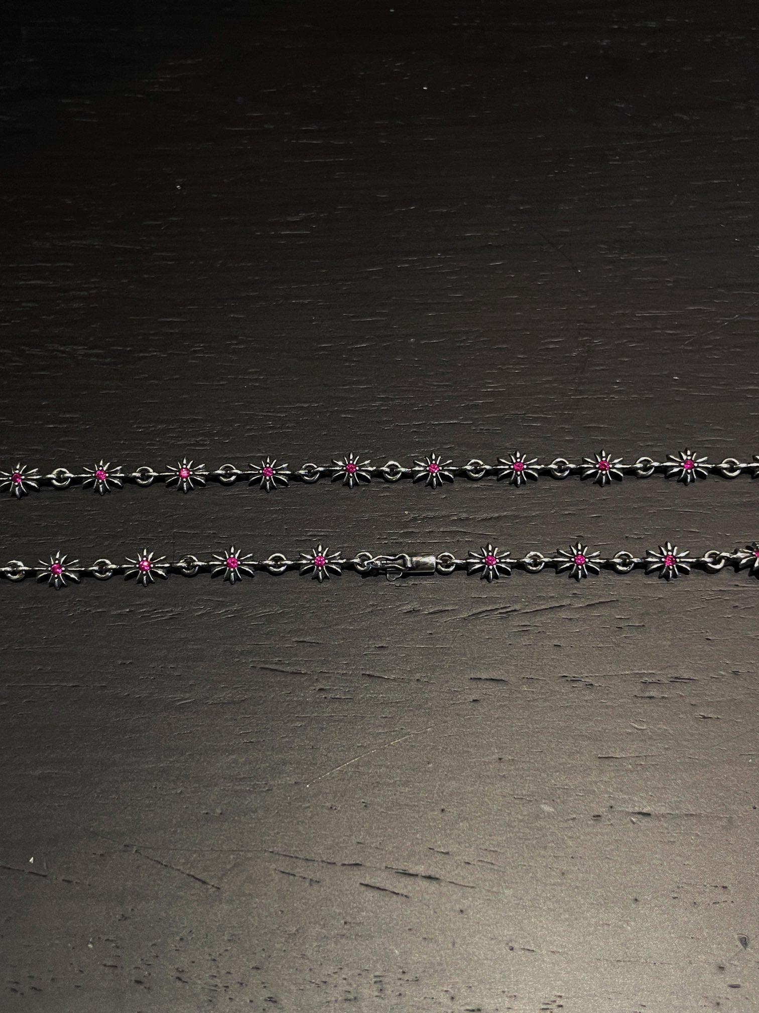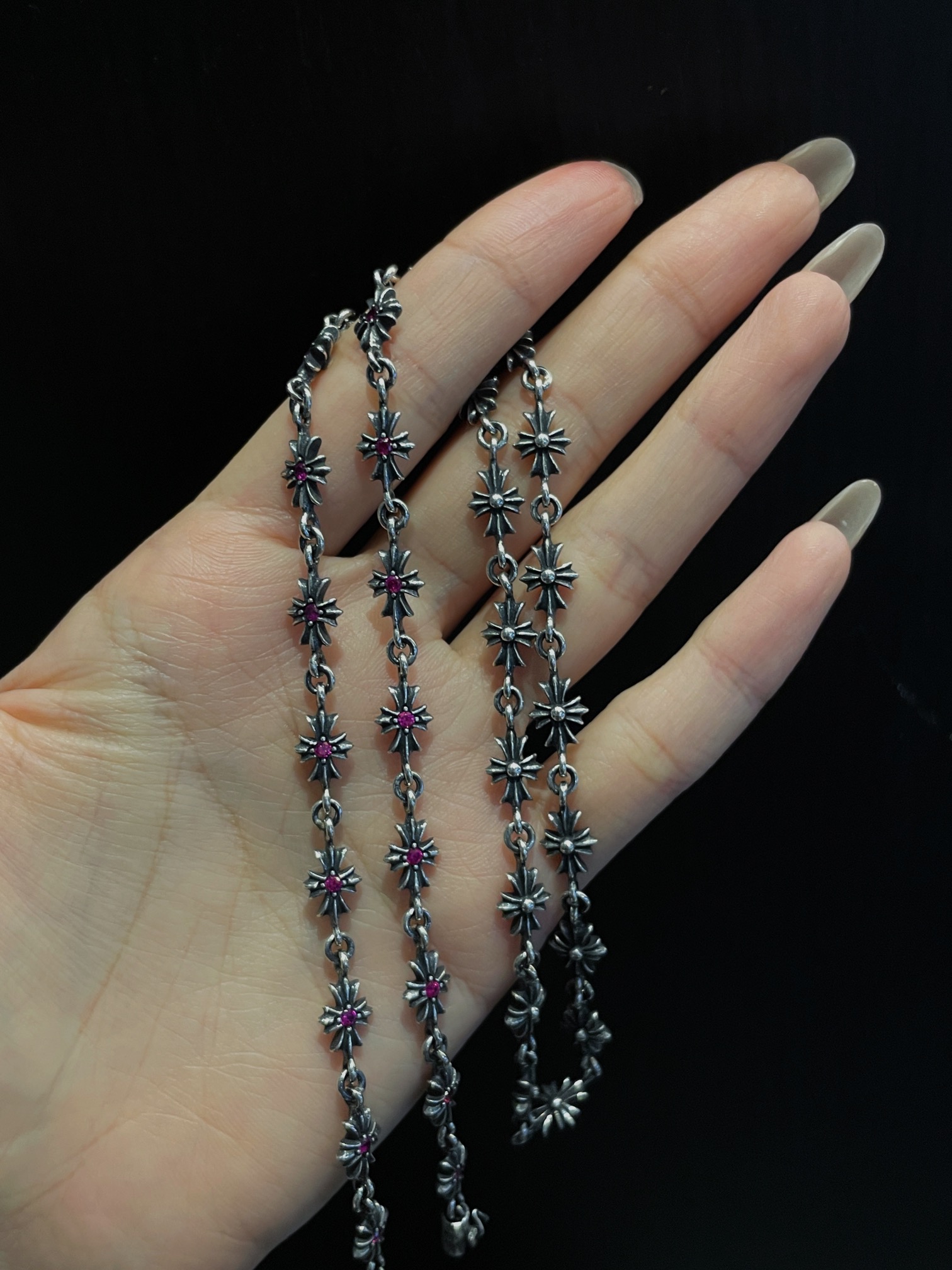 克罗心 满镶红钻十字链 纯银材质 复古做旧 红钻 时尚搭配 size:65cm 编码:200840