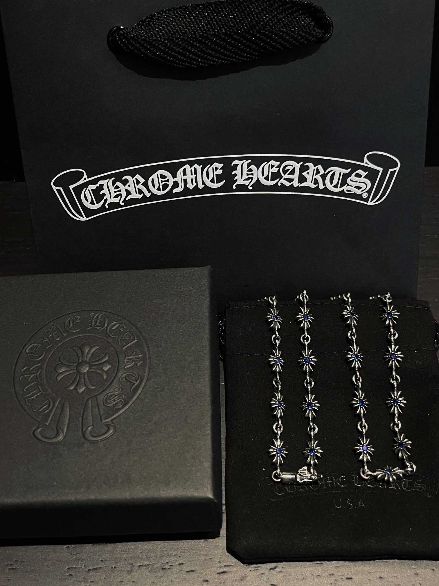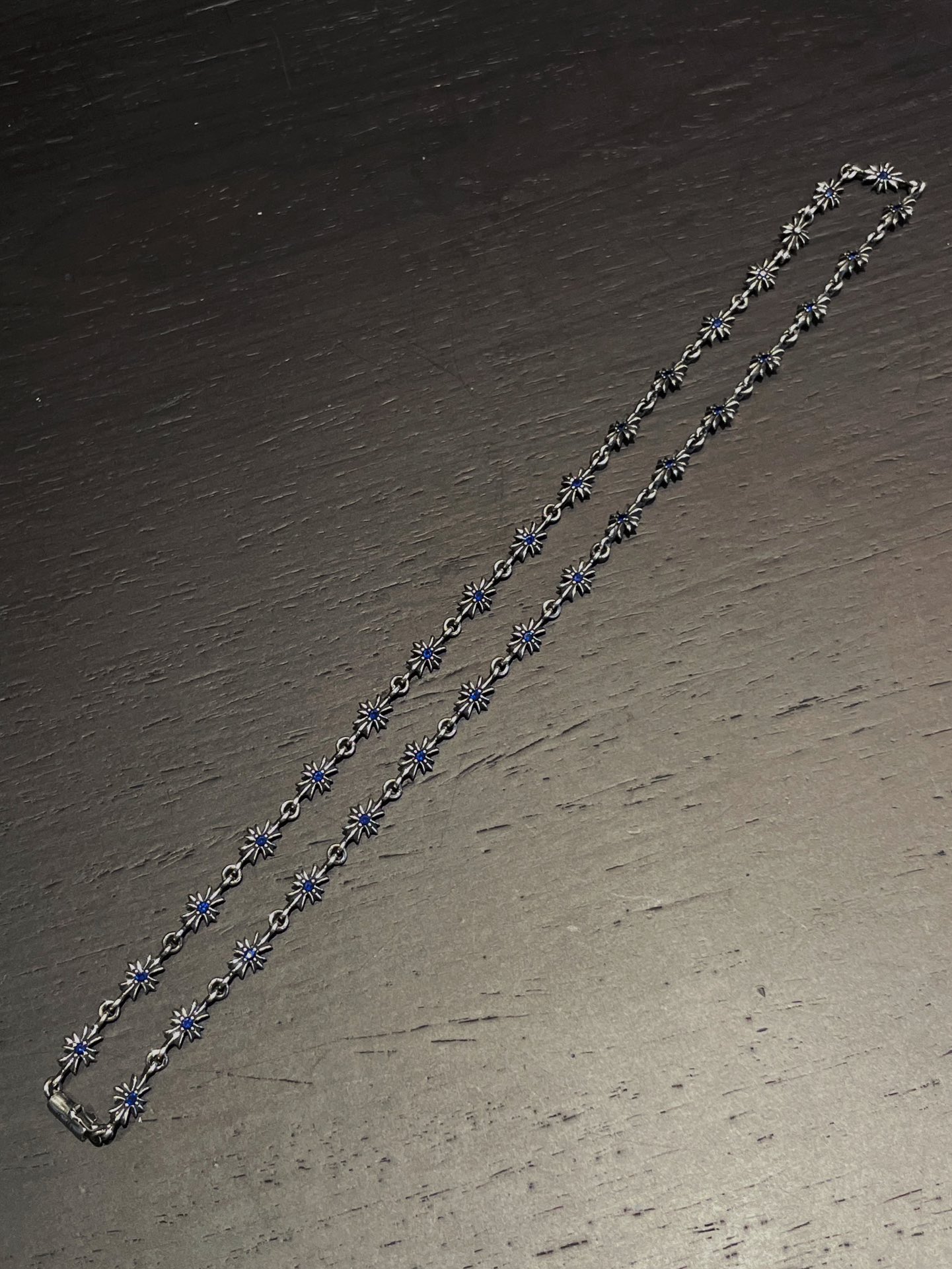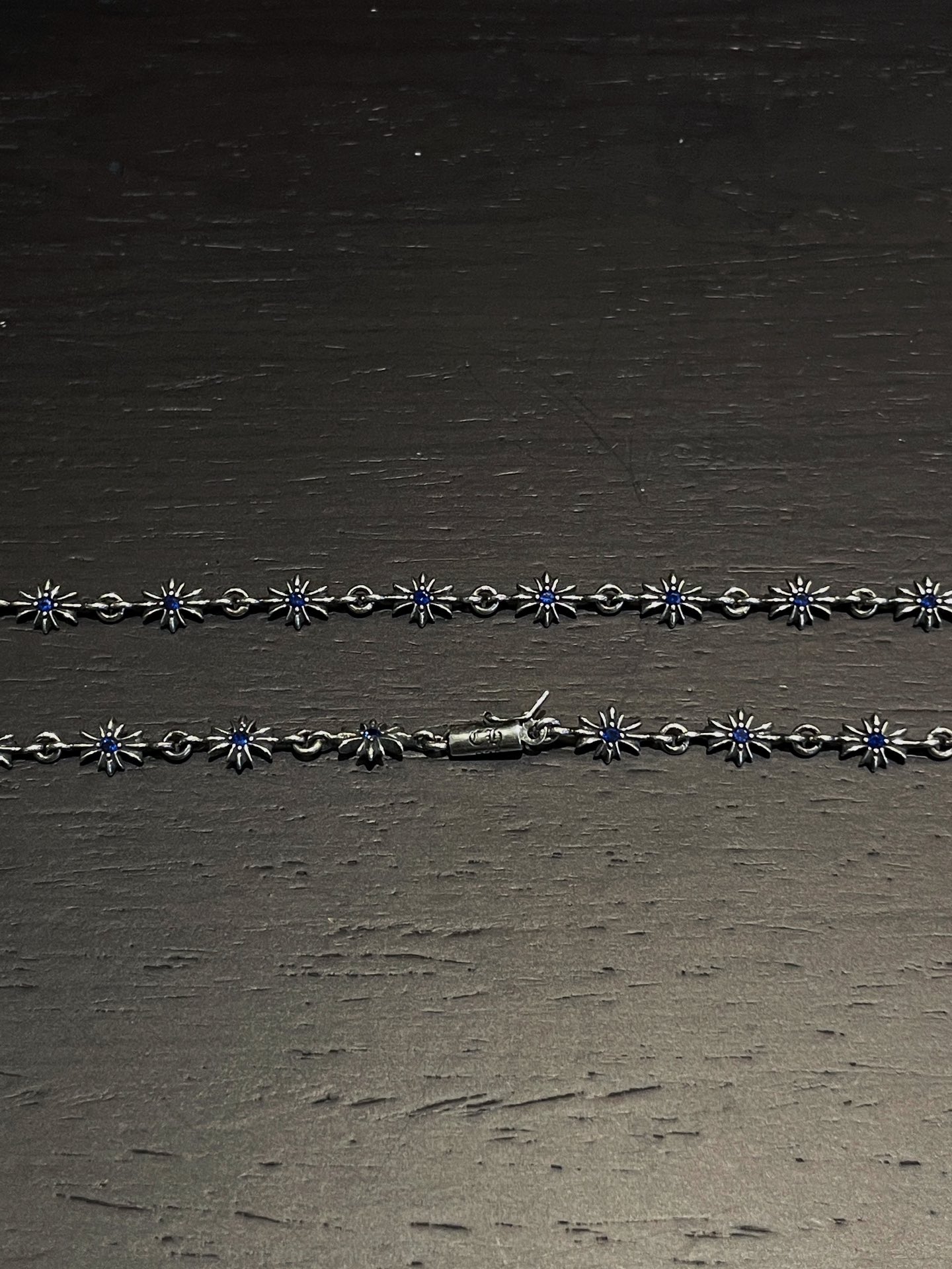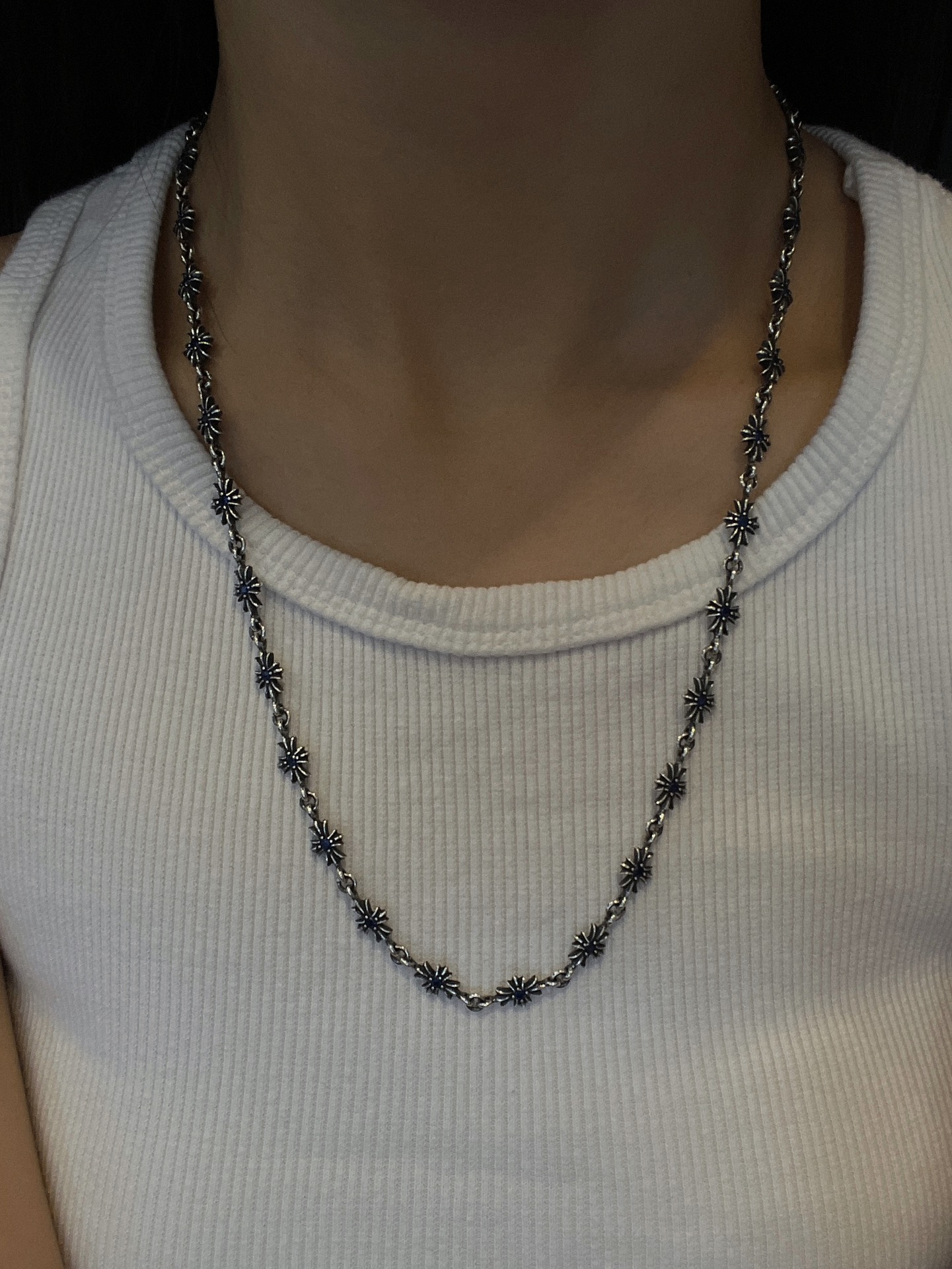 克罗心 满镶蓝钻十字链 纯银材质 复古做旧 蓝钻 时尚搭配 size:55cm 编码:200840