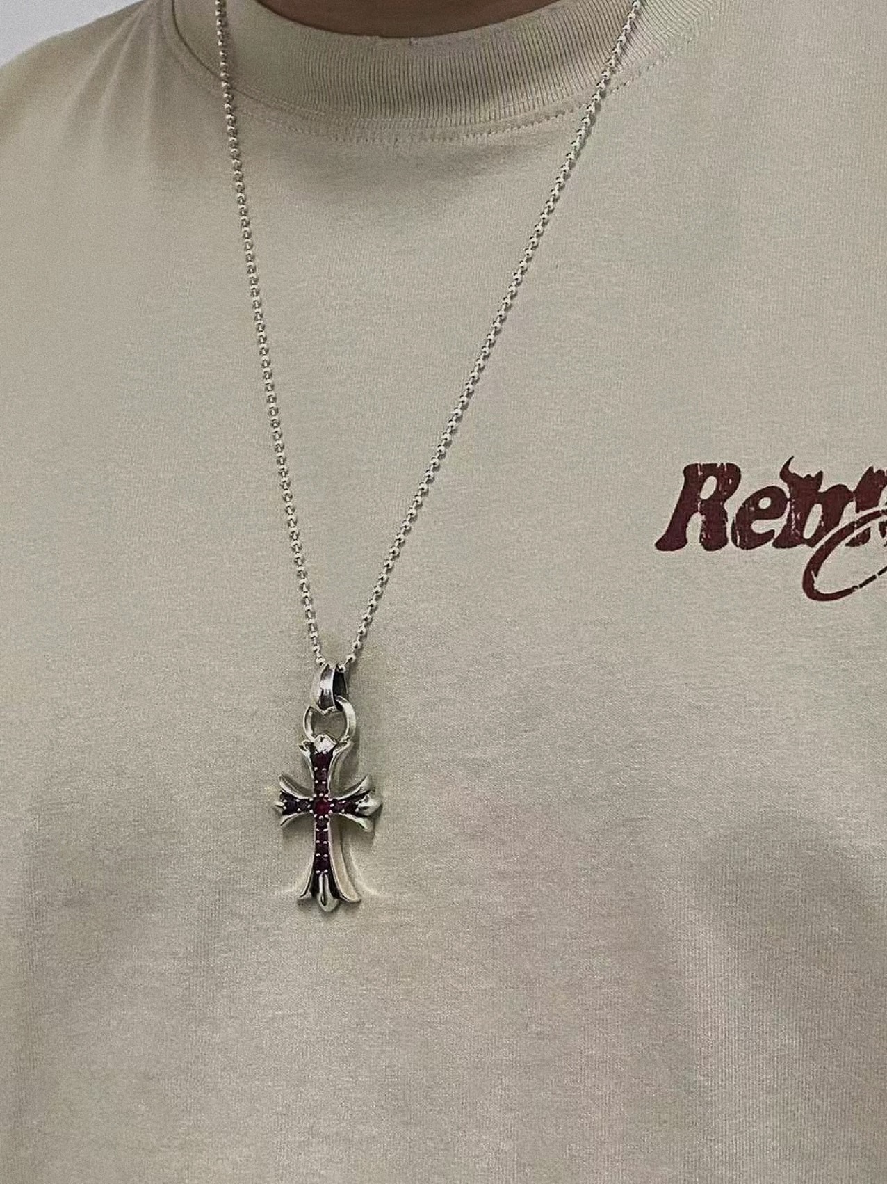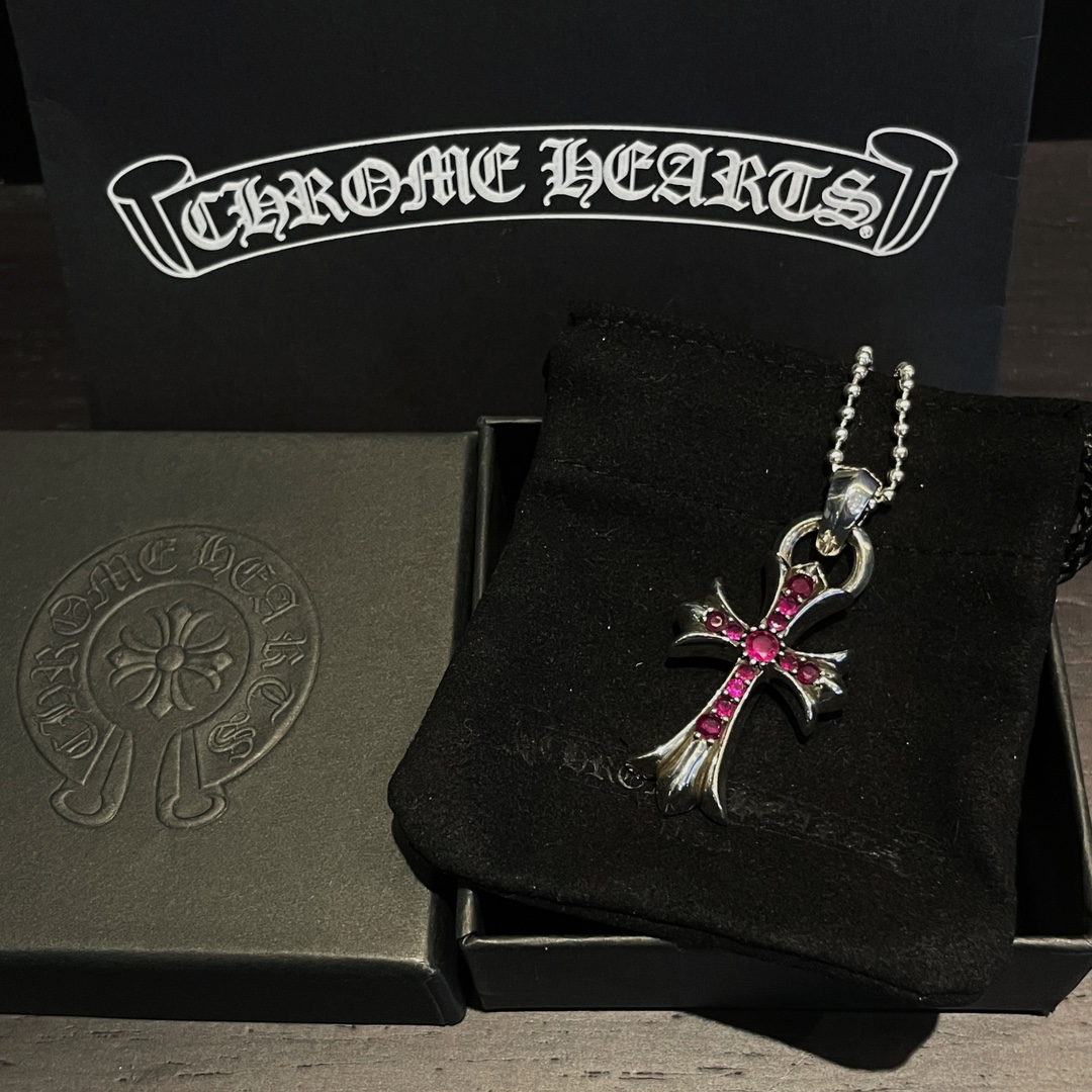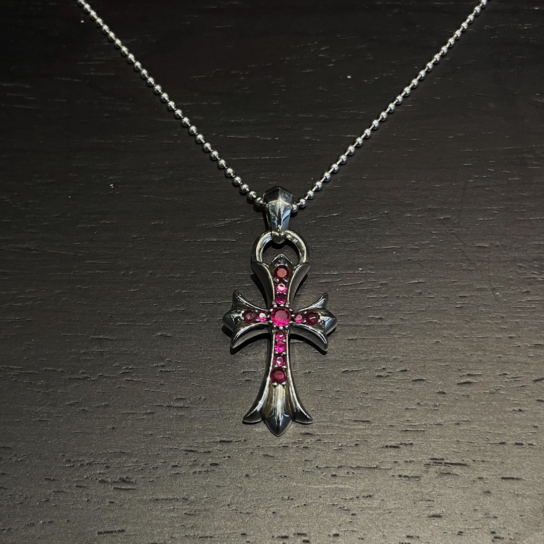 克罗心 红钻水滴十字架 纯银材质 手工镶嵌 十字架元素 红钻 配圆珠链 时尚搭配 size:65cm 编码:200940