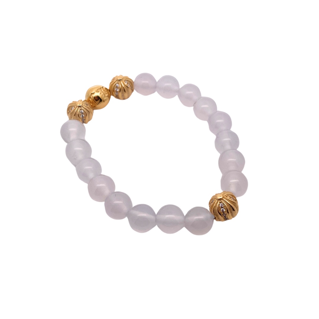 克罗心 透明玛瑙手链 纯银材质 镀金镶石珠子 质感十足 规格: 8mm 镀金珠子8mm 编码:300730