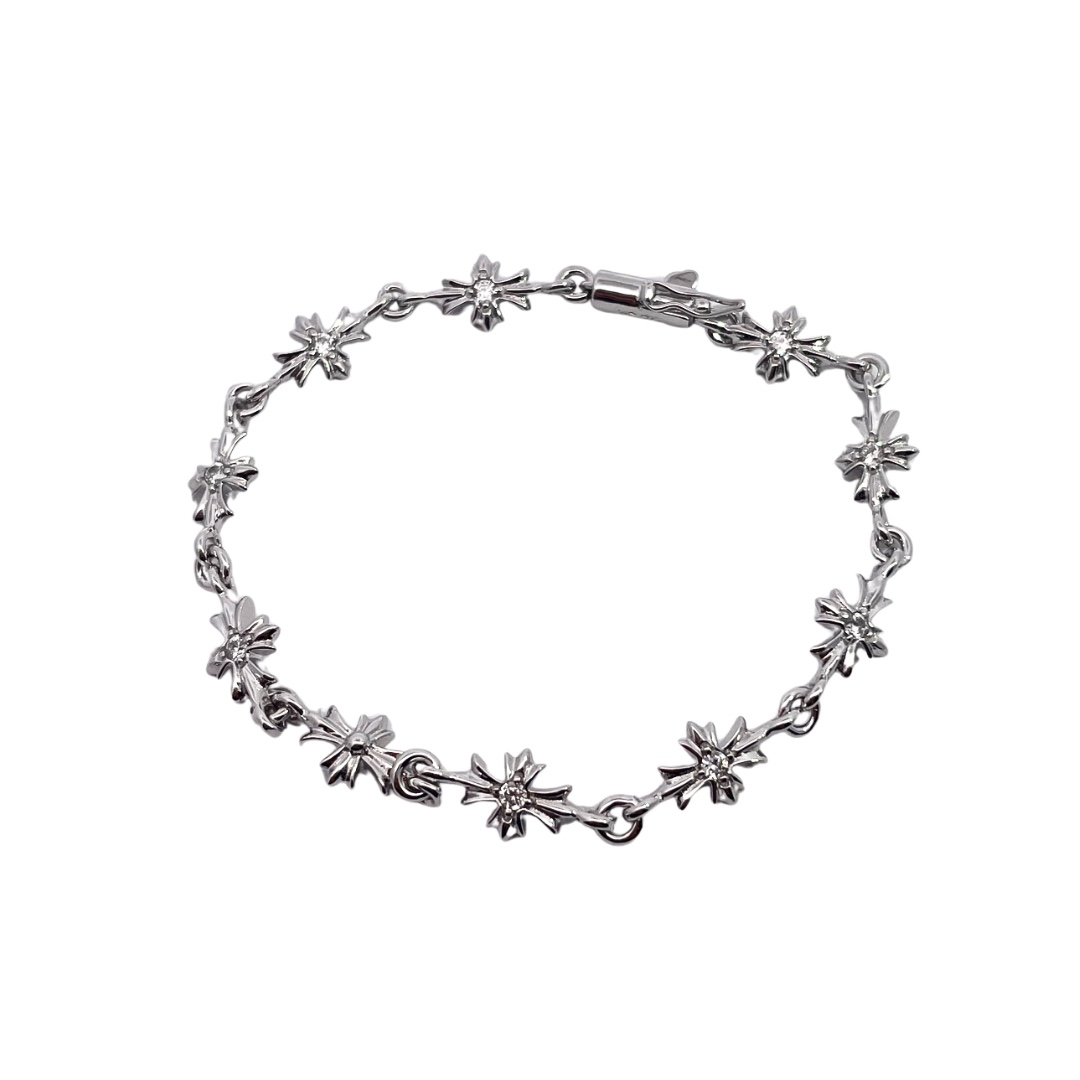 克罗心 镀白金镶石十字手链 纯银材质 镀白金 手工镶嵌 十字花元素 白钻 时尚搭配 size:16.18.20cm 编码:300450