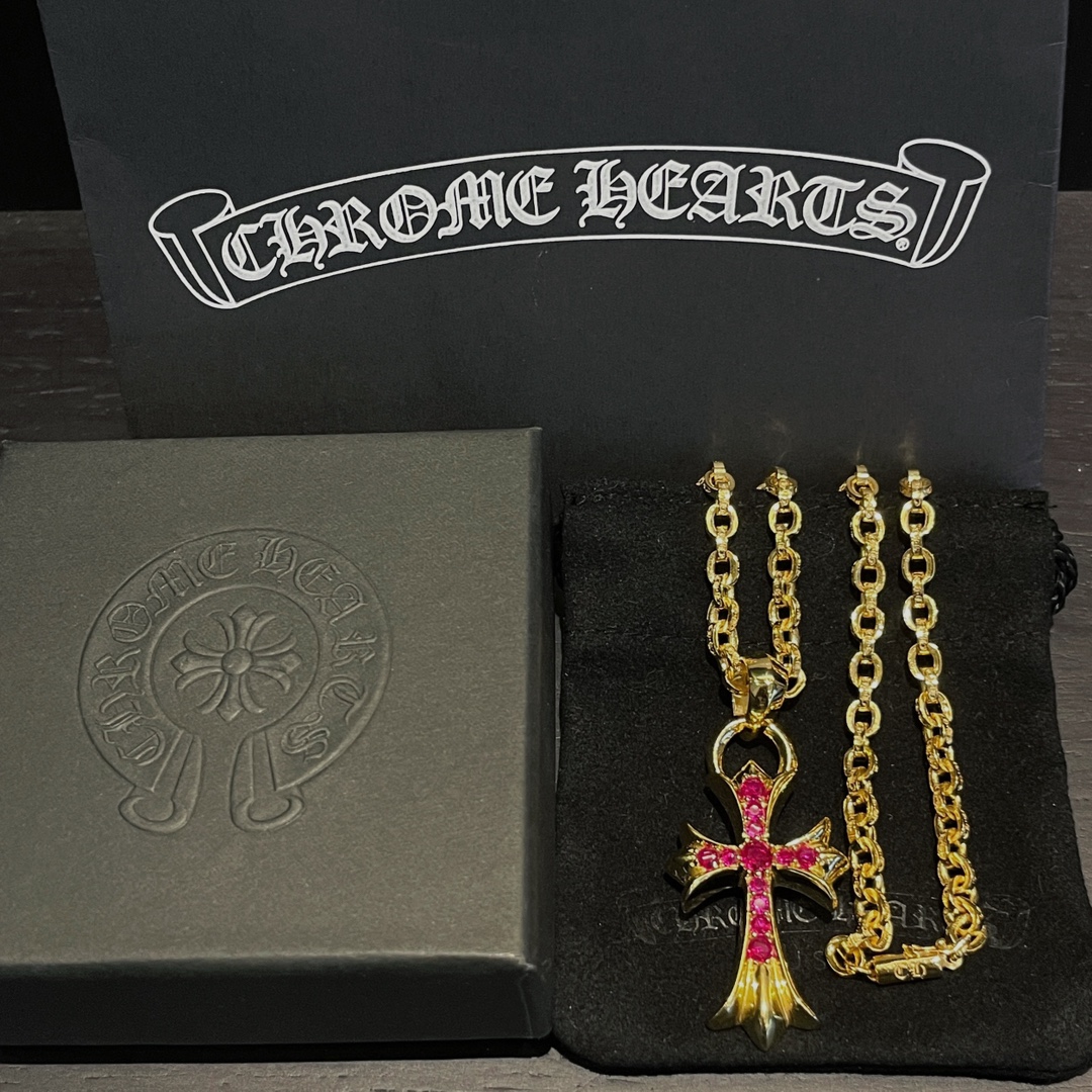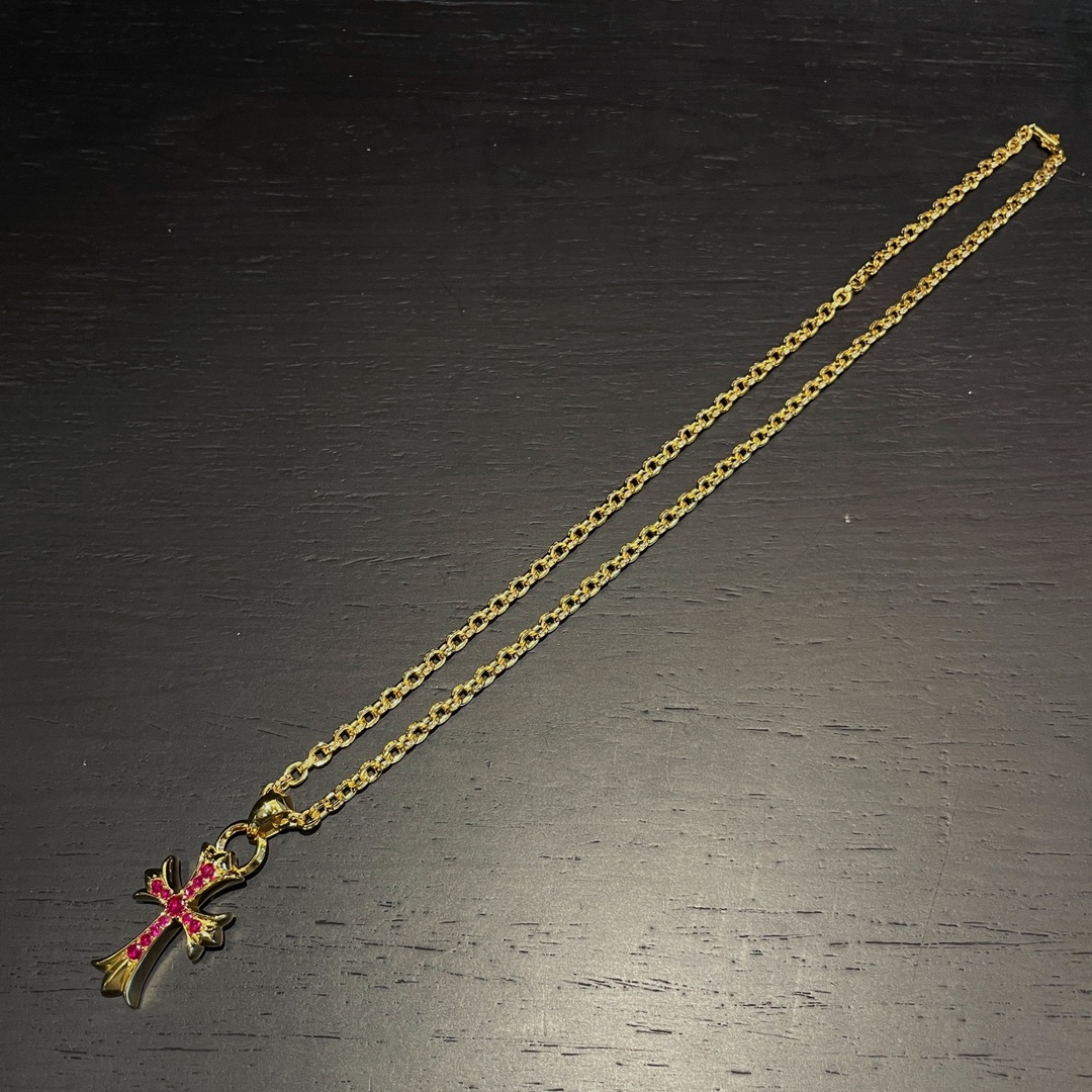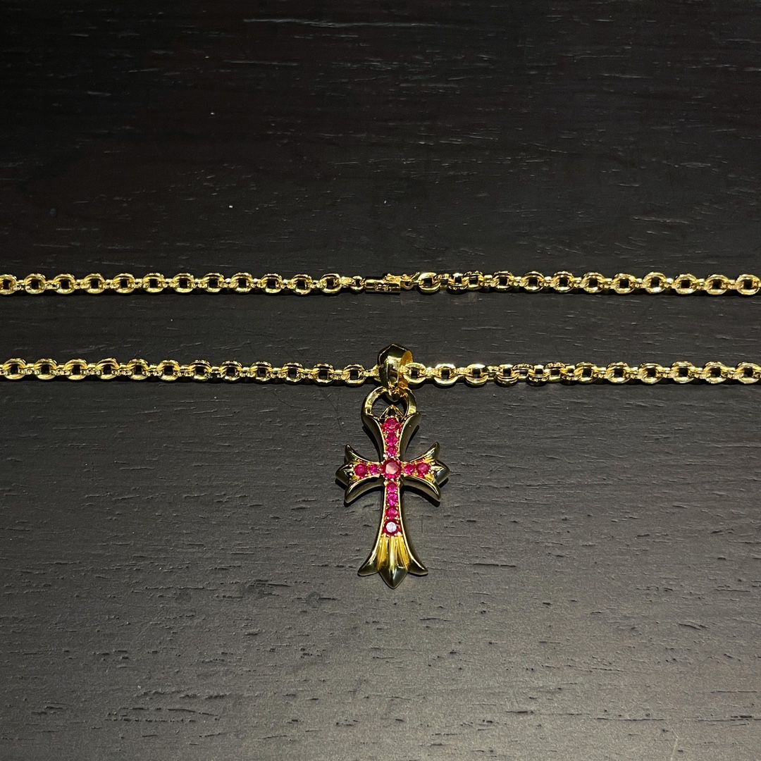 克罗心 镀金红钻水滴十字架 搭配ch字母链 镀金 手工镶嵌红钻 质感高级 时尚搭配 size:50.65cm 编码:202140