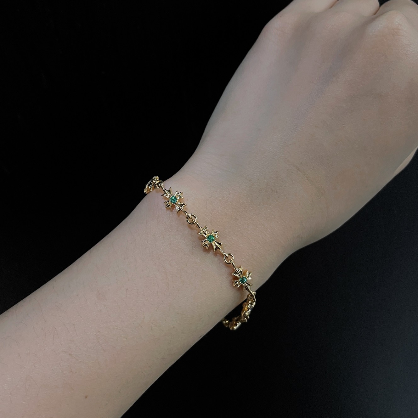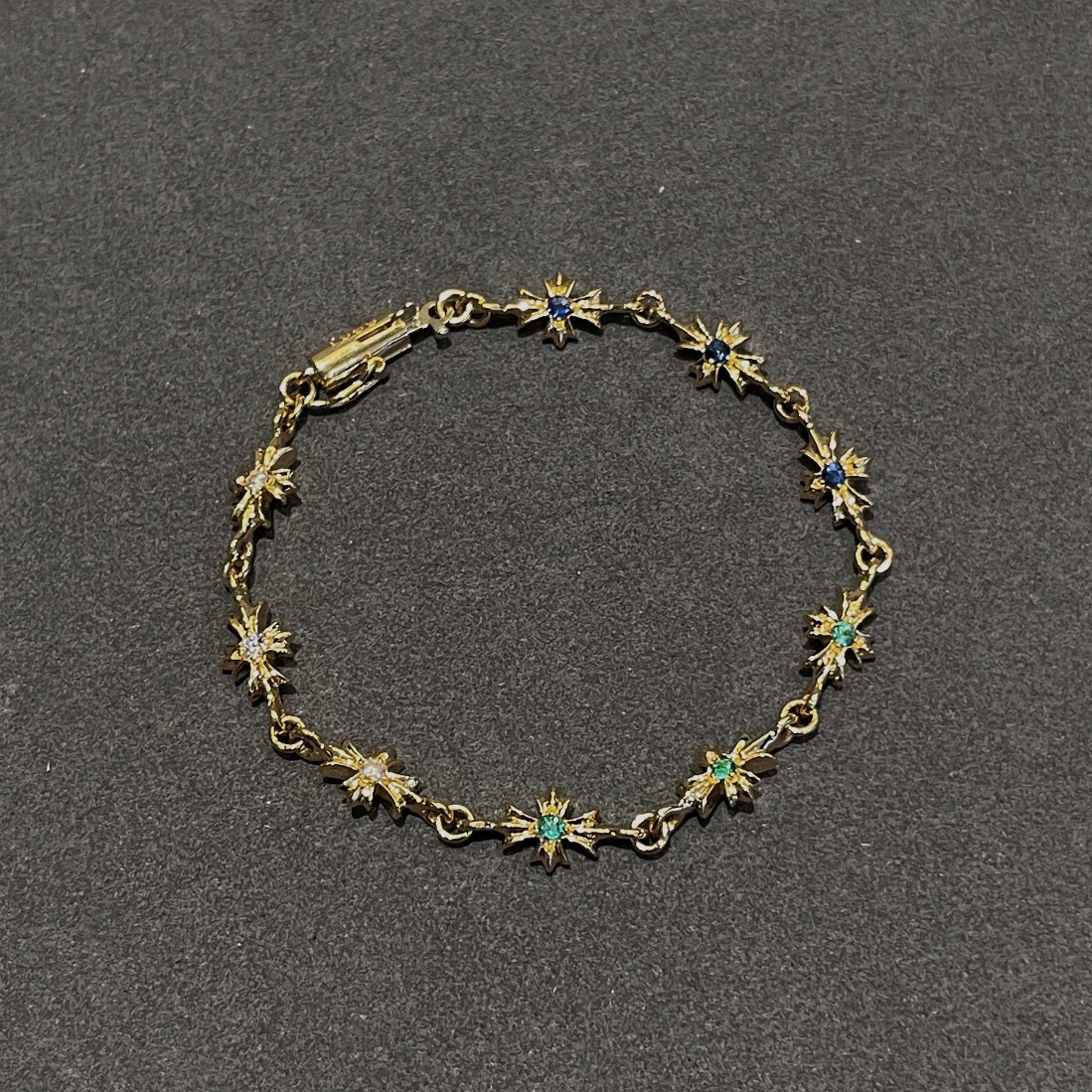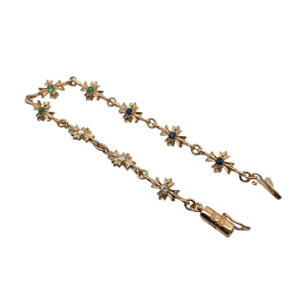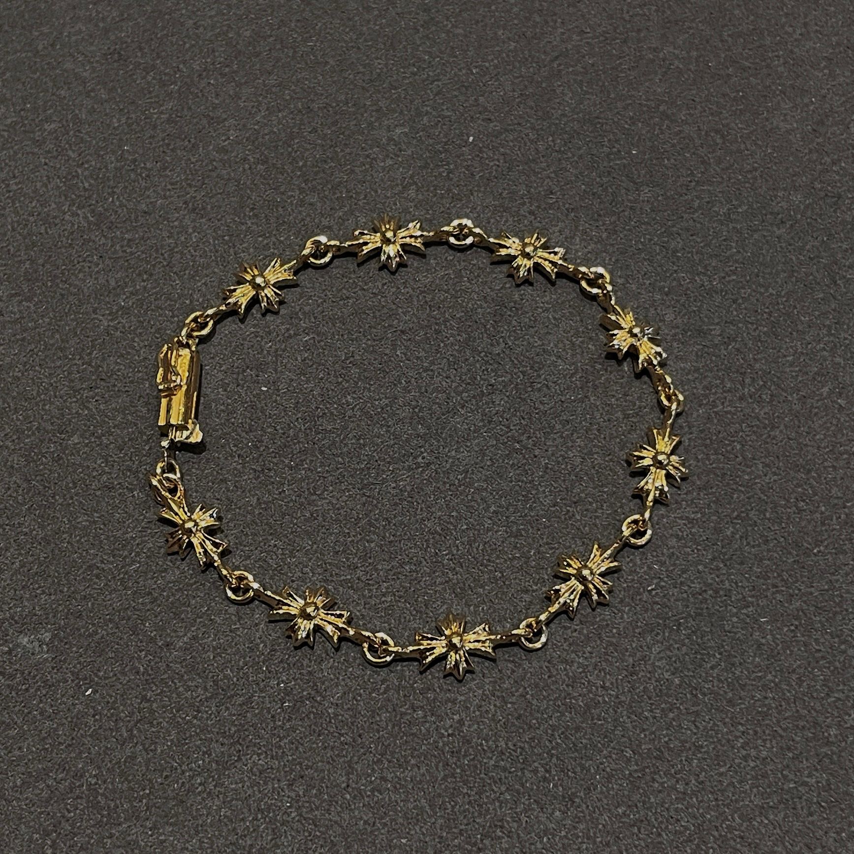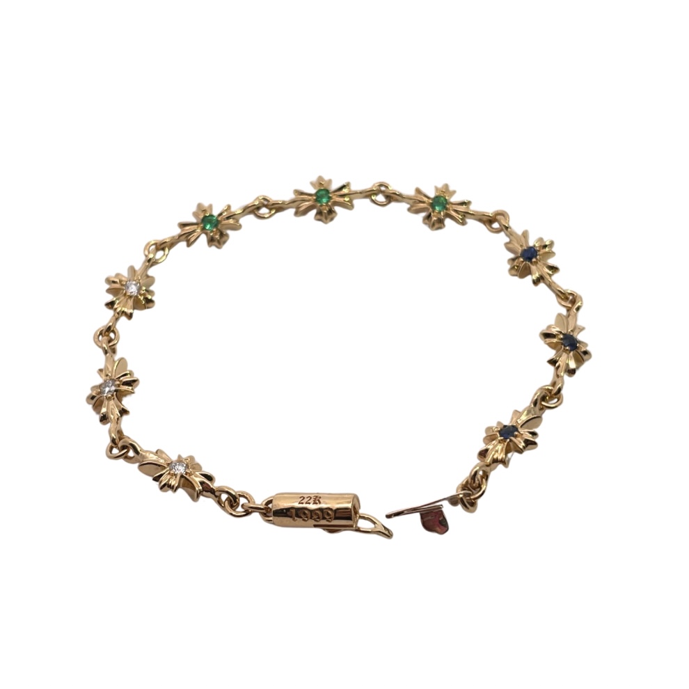 克罗心 镀22k金镶石十字手链 纯银材质 复古做旧 手工镶嵌 十字花元素 彩钻 时尚搭配 size:16.18.20cm 编码:300450