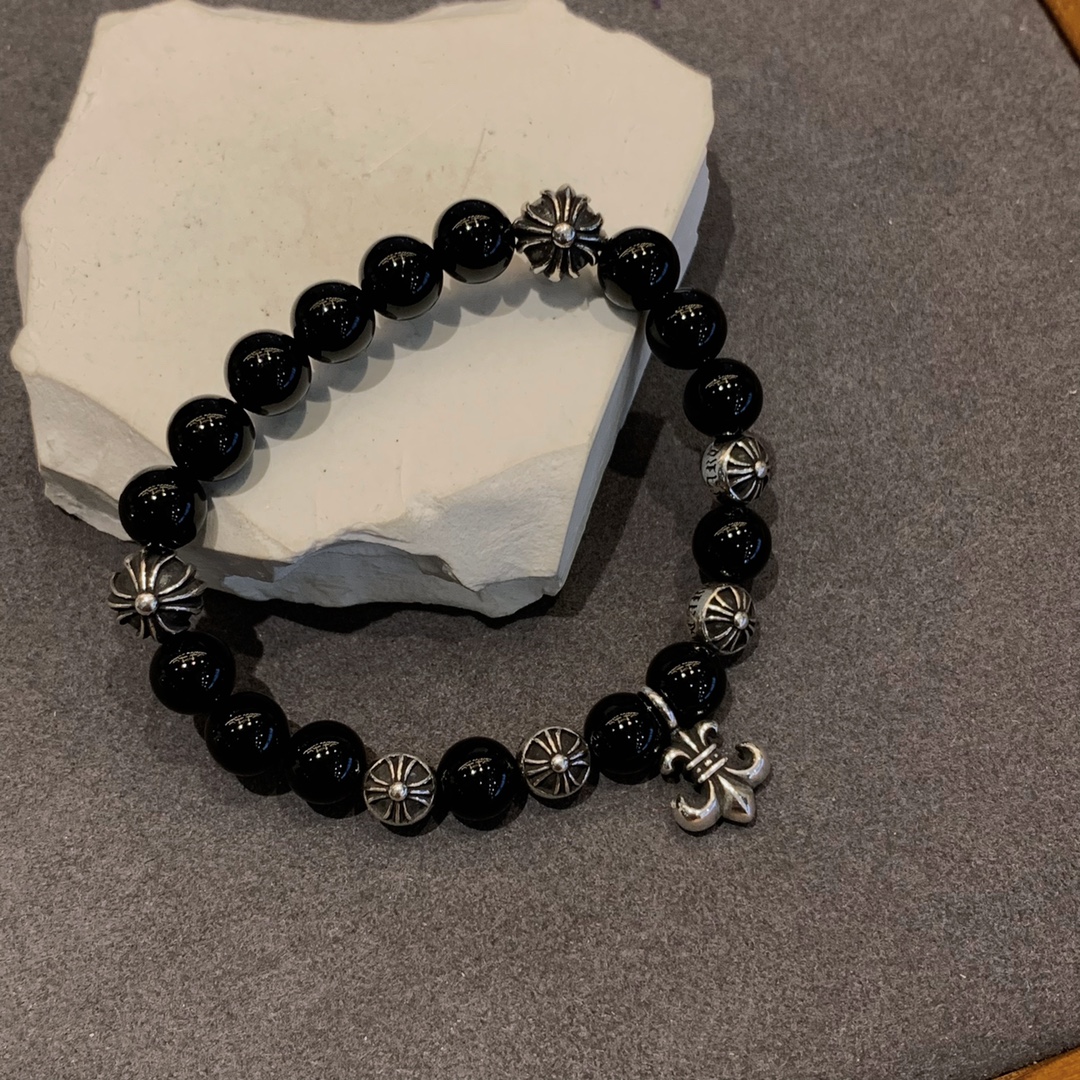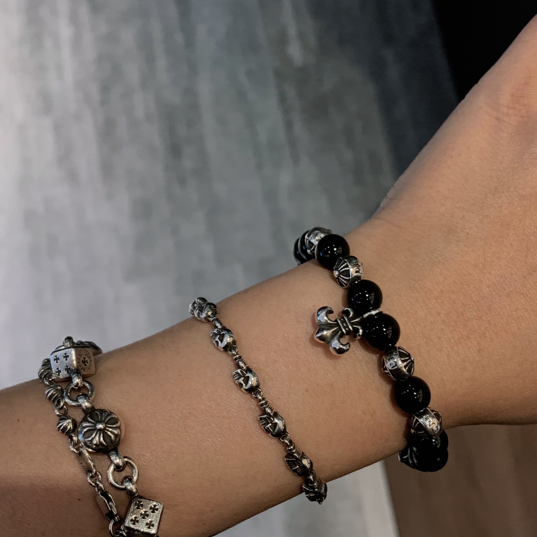 克罗心 黑玛瑙珠手串纯银材质_15697