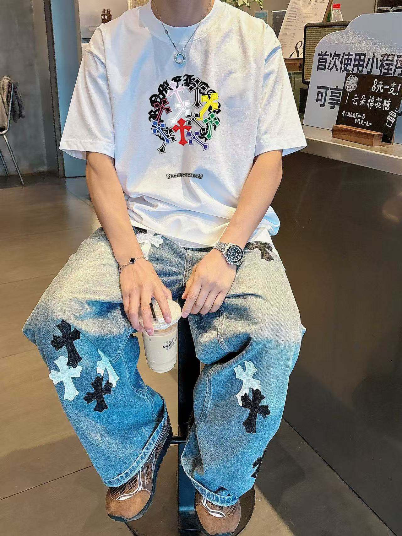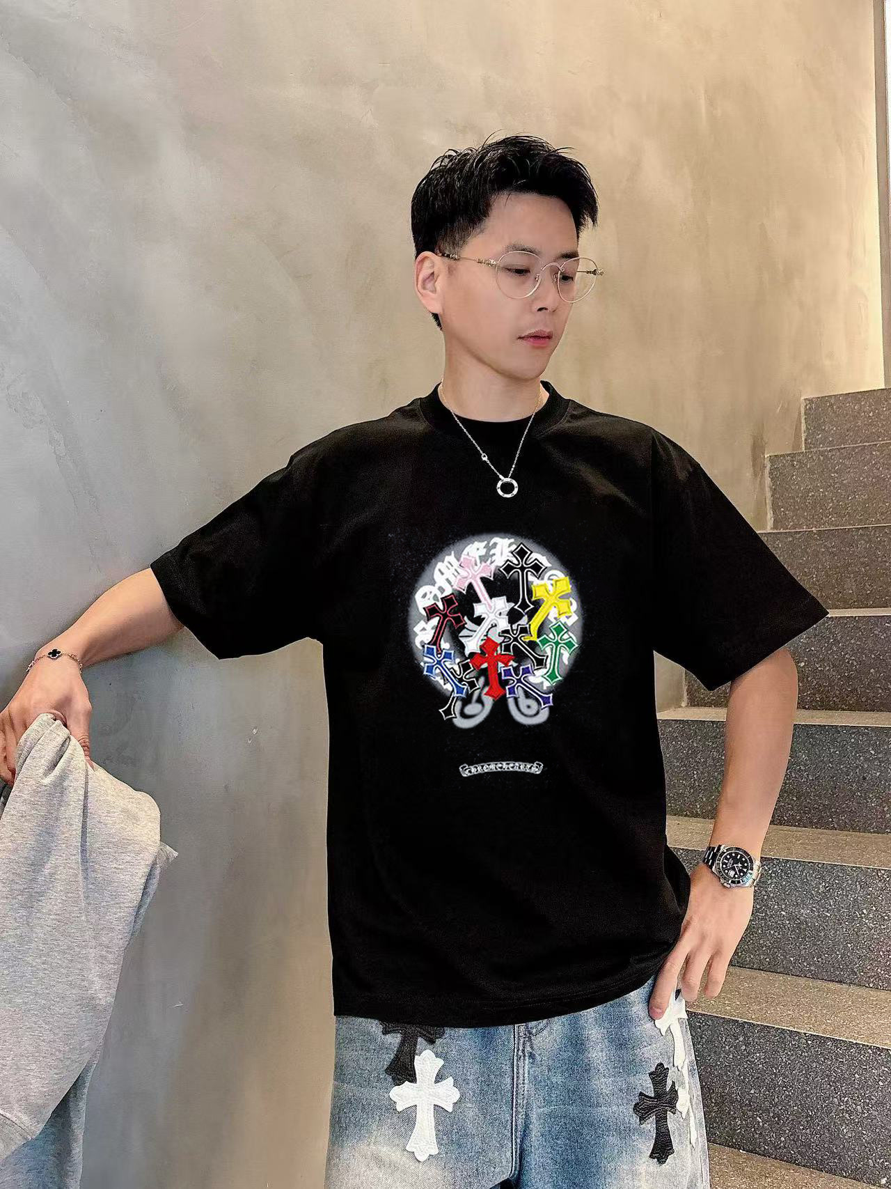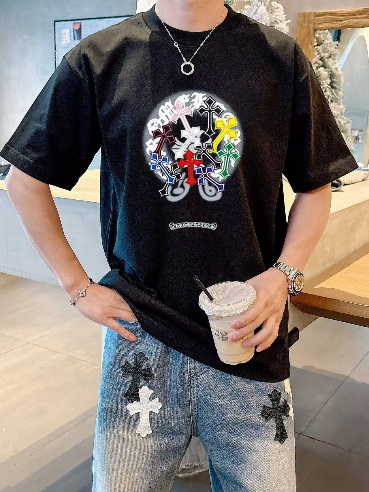 克罗心 2025早春新款首发专柜最新款短袖圆领T恤 高端订制 设计前卫时尚!高端定制高支棉面料.手感柔软.穿着舒适.专柜级别精致车线.做工精细.上身效果无敌帅气!型男必备单品!码数:S-2XL