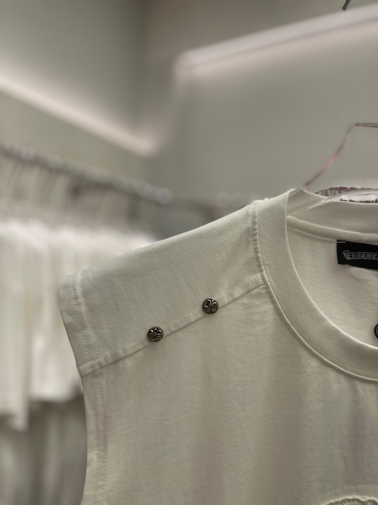 。克罗心、Bearltongs ⁽高定款⁾ 新品短袖背心。帅气时尚,胸前「贴布秀,刺绣」图案logo,简约百搭款。面料棉 不仅挺括,保持潮流的廓形,又穿着舒适,纱织更细腻。男女同款。