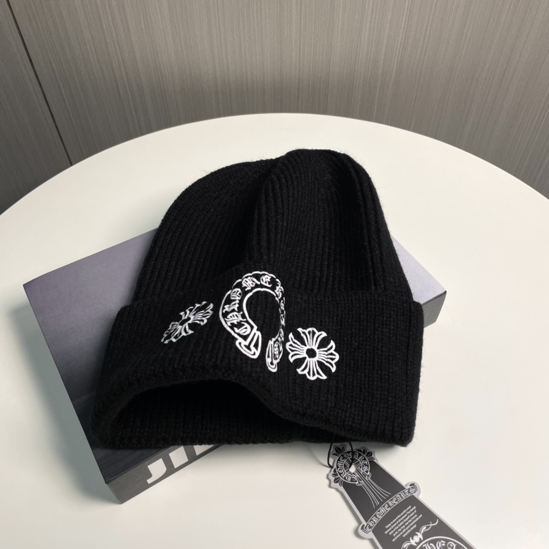 克罗心Chrome hearts秋冬新款十字架针织帽 秋冬必备帽子之一~真的 谁戴谁好看~,入秋搭配黑白灰色系也是绝绝子~