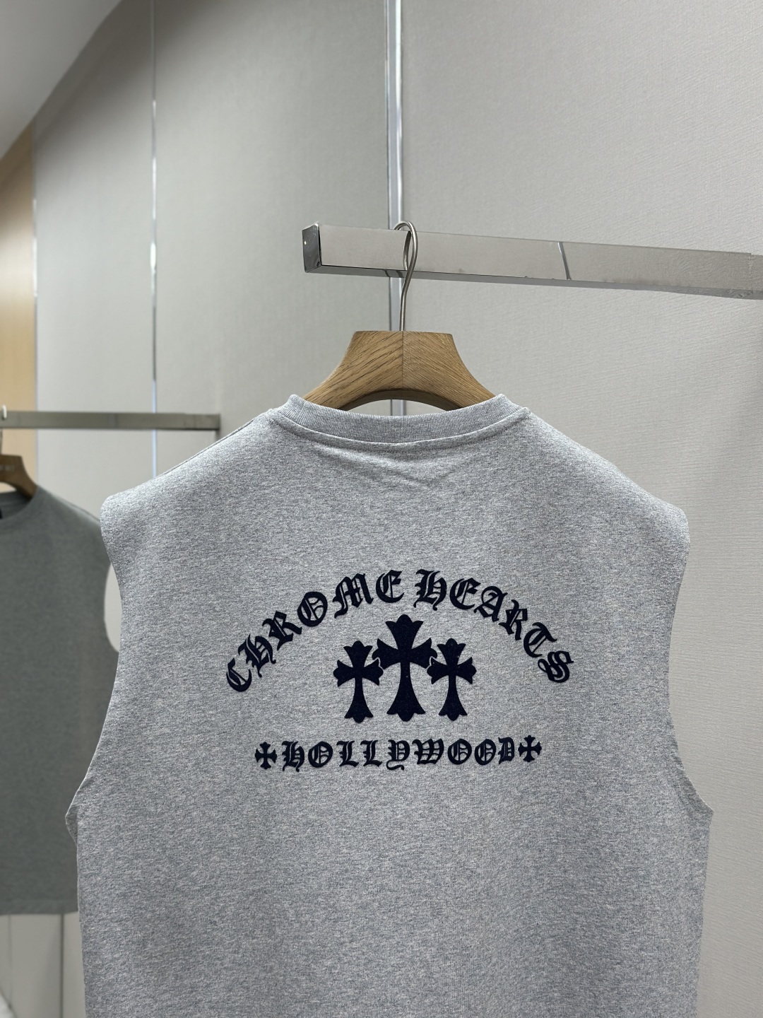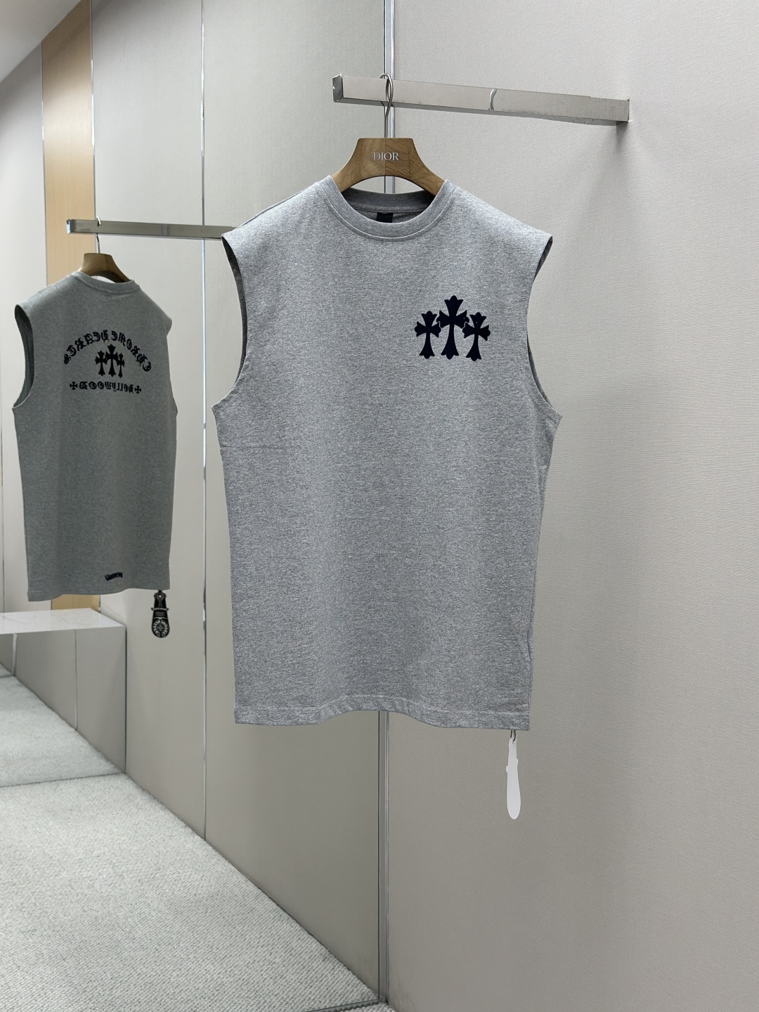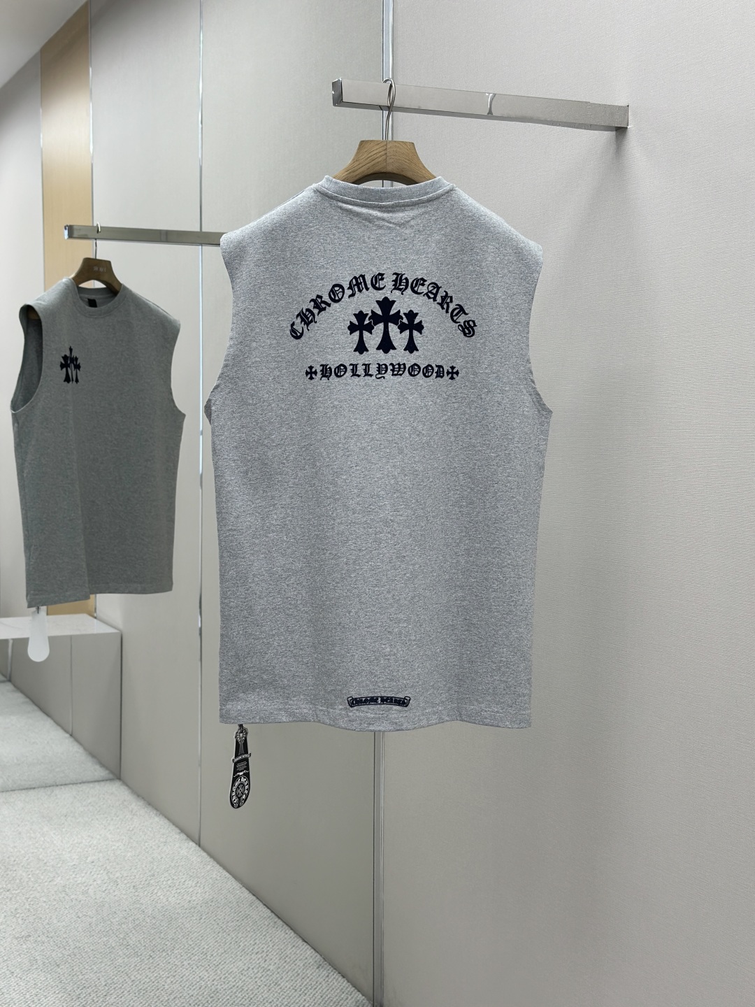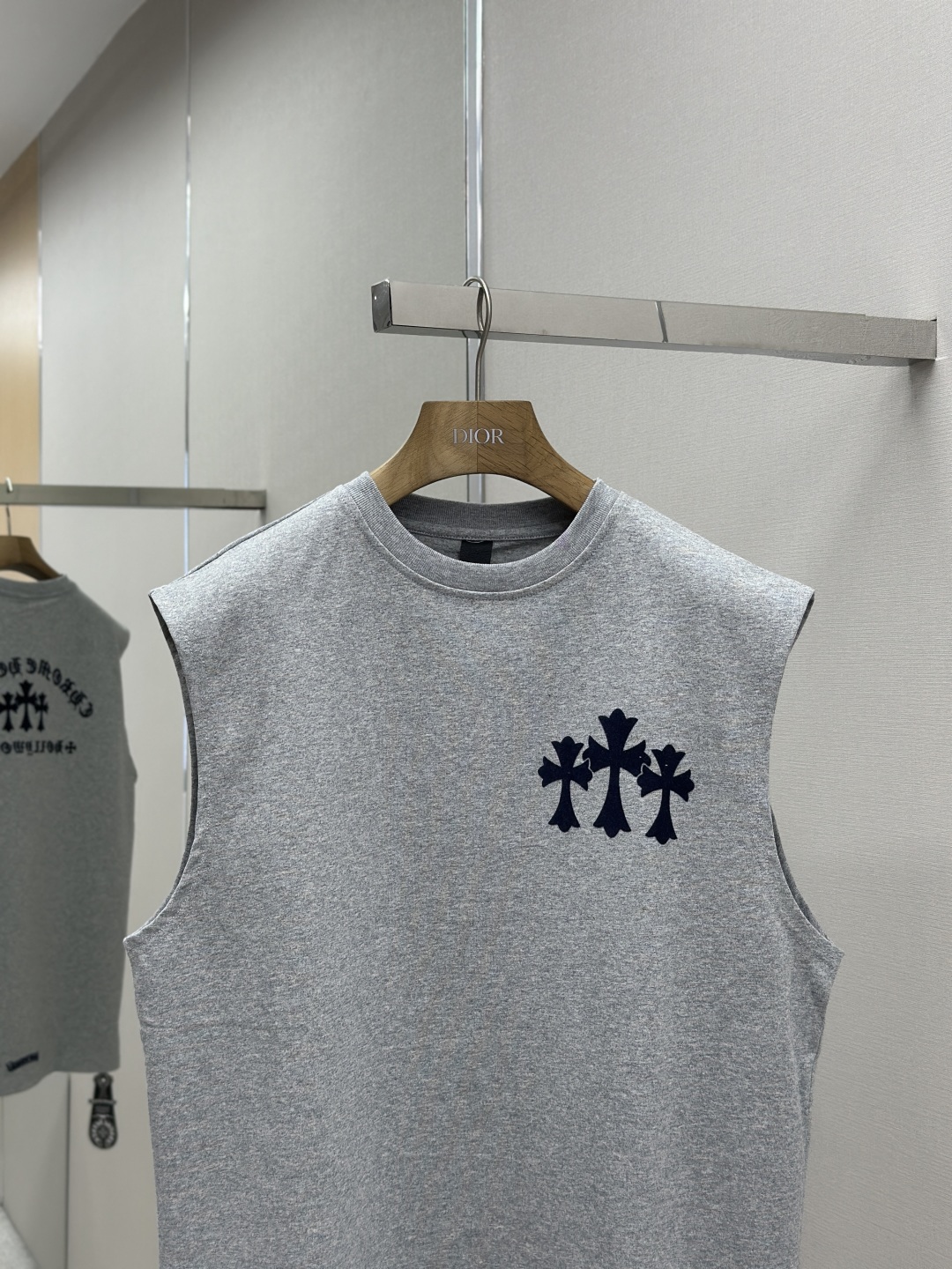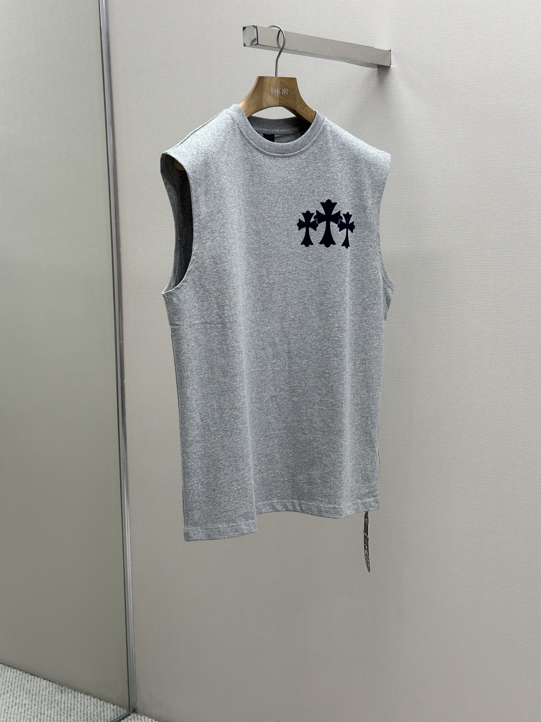 克罗心Chrome Hearts 2025春夏新款短袖背心,面料 26支双纱 前后植绒工艺梵文十字架✟