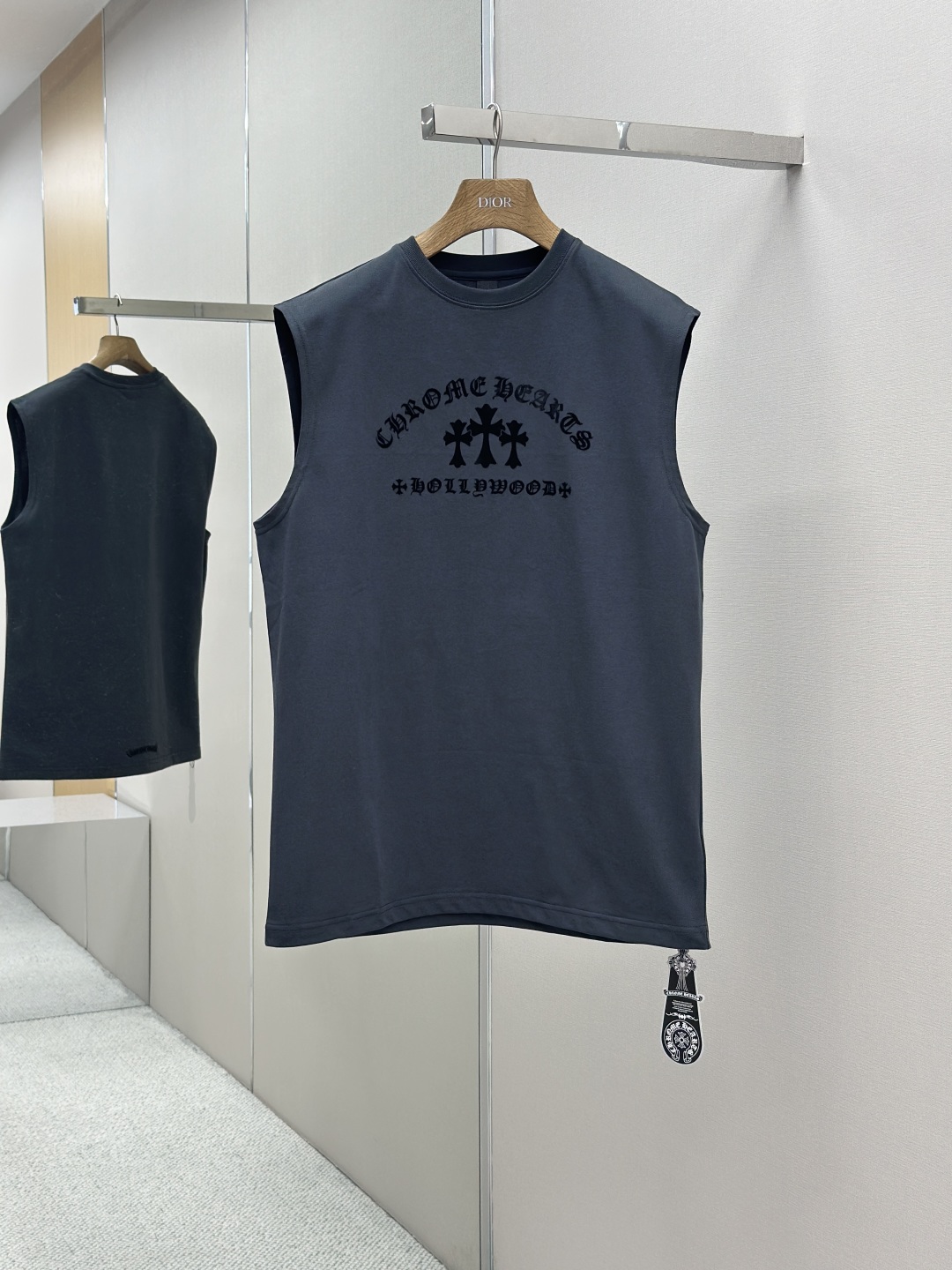 克罗心Chrome Hearts 2025春夏新款短袖背心,面料 26支双纱 前后植绒工艺梵文十字架✟