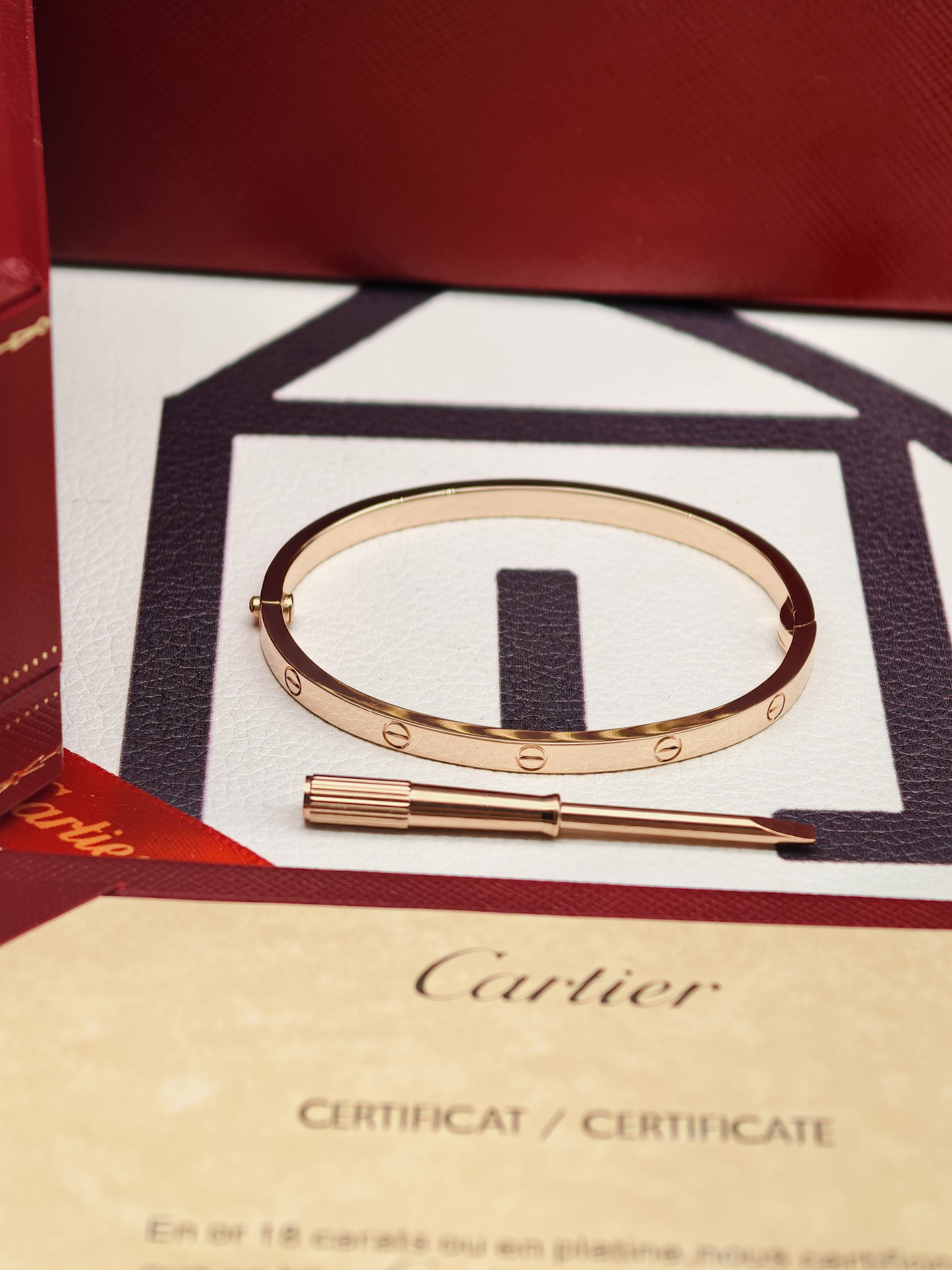卡地亚 窄款无钻手镯 玫瑰金 版本:电镀18k金 对版款 细节:还原原版单边螺丝卡扣,卡扣合上无缝隙,卡扣紧不容易松开,螺丝凸出卡扣还原原版,每个螺丝花纹都是精致打磨,光泽很好,边缘棱角有孤独,防止受伤,更好的体验感,电镀18k质感更好。 尺寸:16 17 18 克重:11.5-15克 图片包装+
