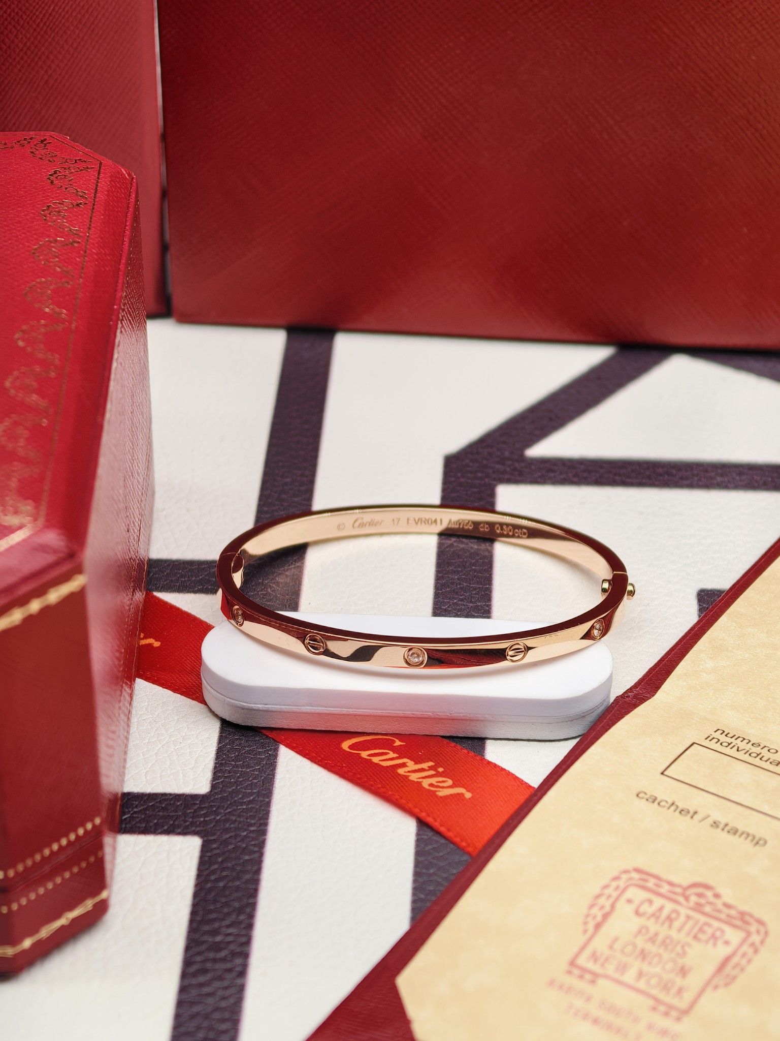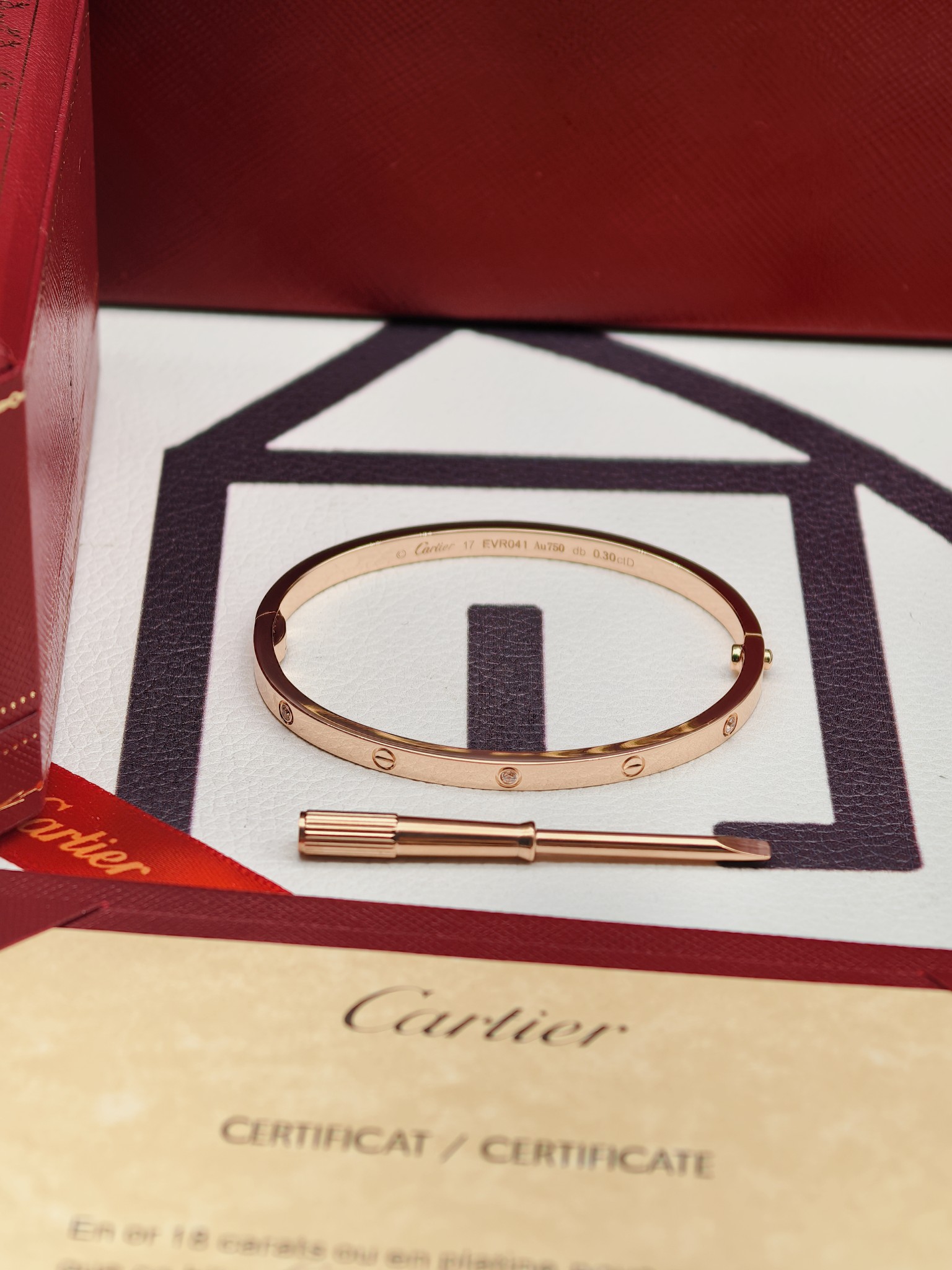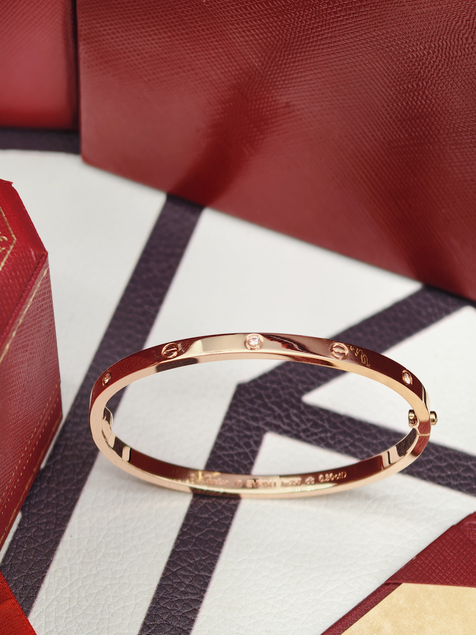 卡地亚 窄款6钻手镯 玫瑰金 版本:电镀18k金 对版款 细节:还原原版单边螺丝卡扣,卡扣合上无缝隙,卡扣紧不容易松开,螺丝凸出卡扣还原原版,每个螺丝花纹都是精致打磨,光泽很好,边缘棱角有孤独,防止受伤,更好的体验感,电镀18k质感更好。 尺寸:16 17 18 克重:11.5-15克 图片包装+