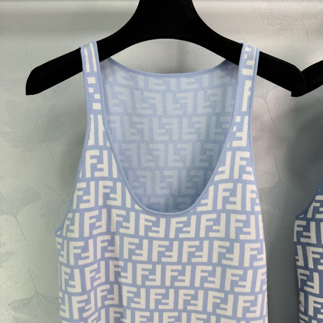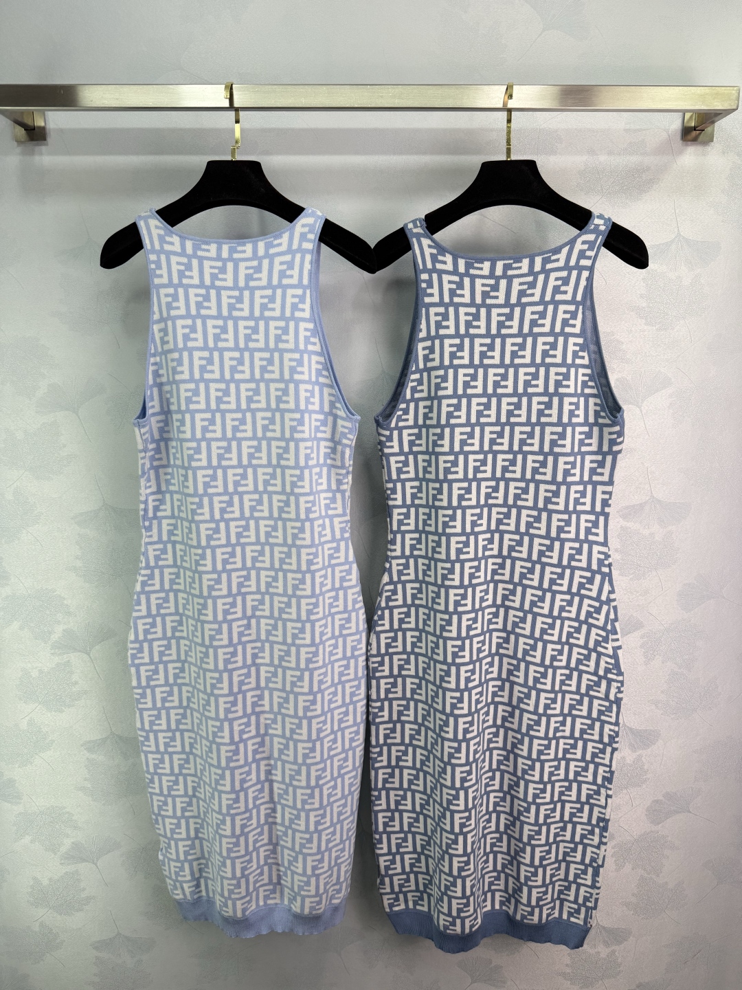 原单狠货女装 配包装 FEND* 2025春夏最新系列!老花提花logo针织背心连衣裙 定制进口羊毛针织材质 质感高级 领口袖口衣摆螺纹收边 增添造型层次感 满印标志性双F提花图案装饰 彰显品牌调性 针织背心剪裁 单穿内搭都出彩时髦百搭!4色3码Sml