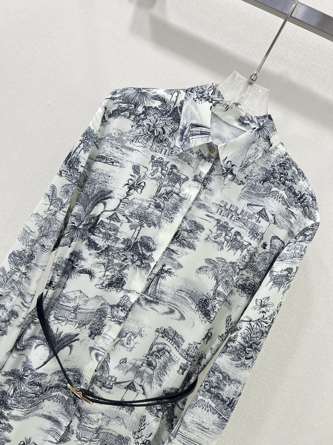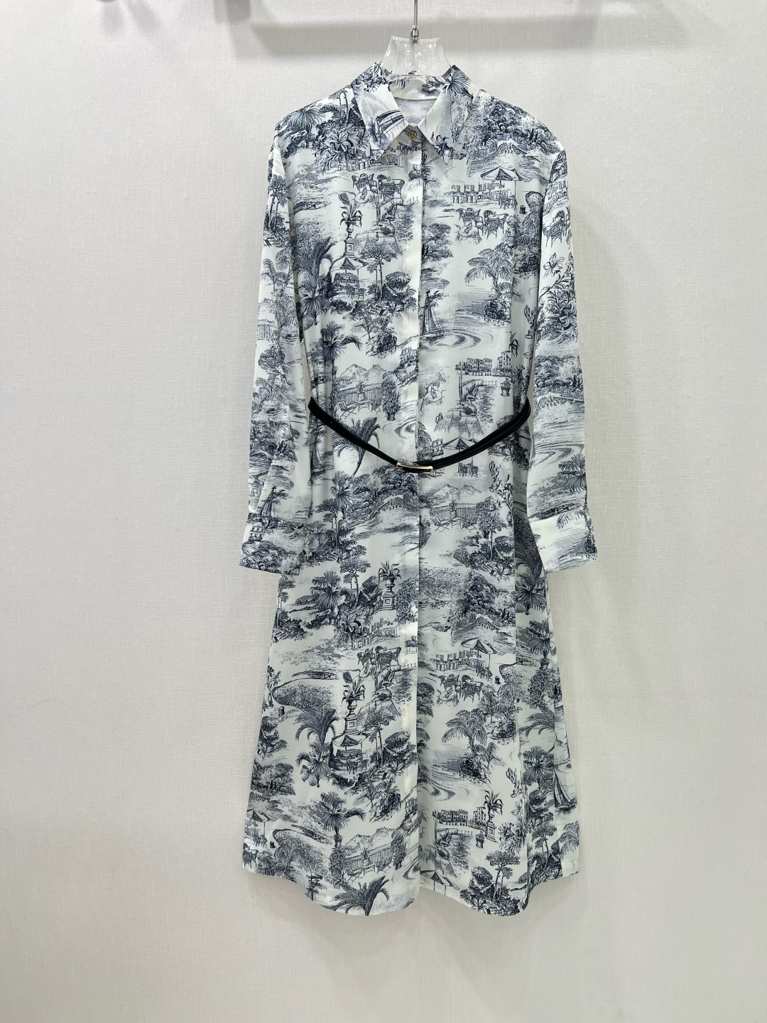原单狠货女装 配包装 Max Mar* 25新款花园地图建筑印花长袖连衣裙 翻领长袖配腰带 斜纹面料手感亲肤舒适 配腰带收腰显瘦又舒适直接拉高整个身材比例 上身非常好看!3色4码SML