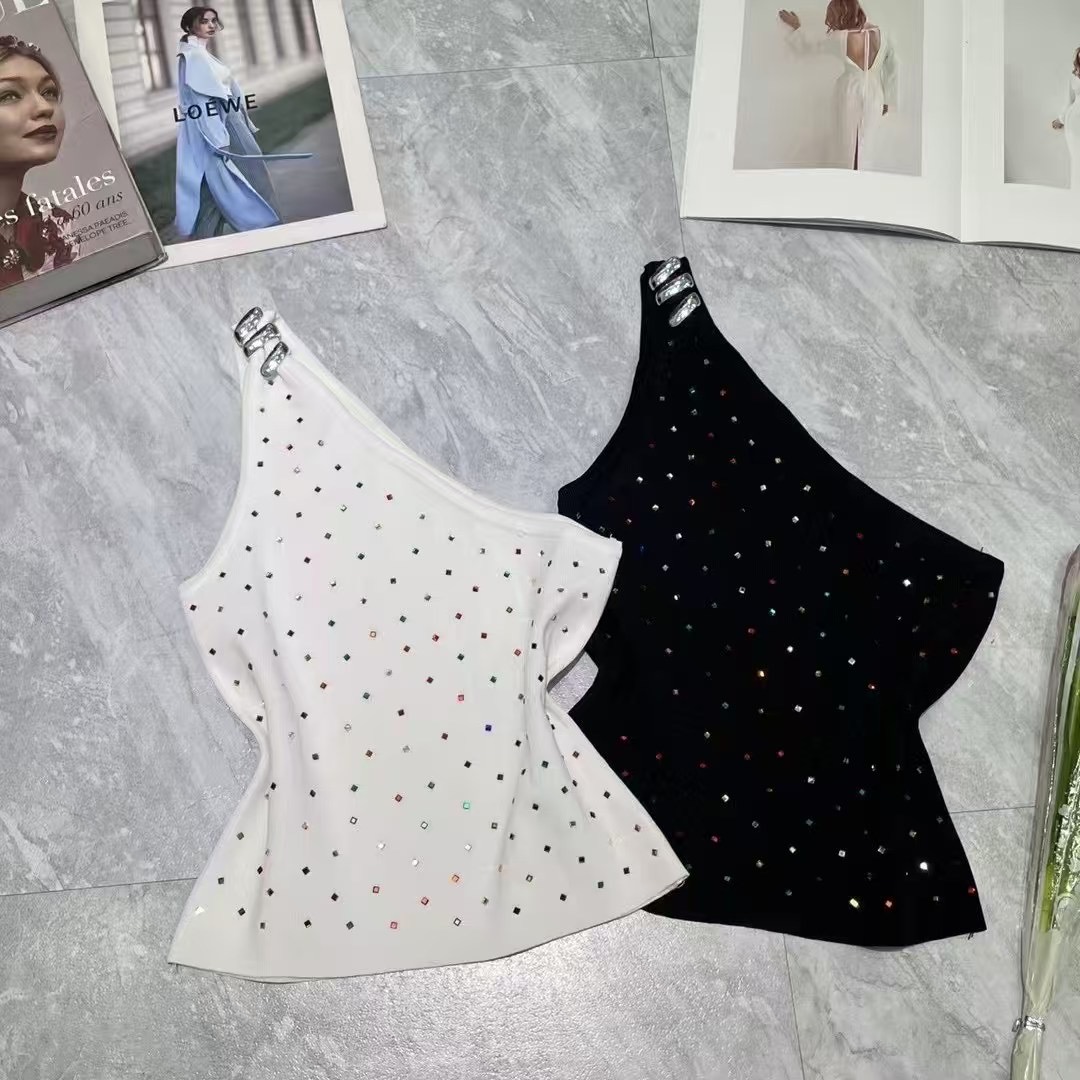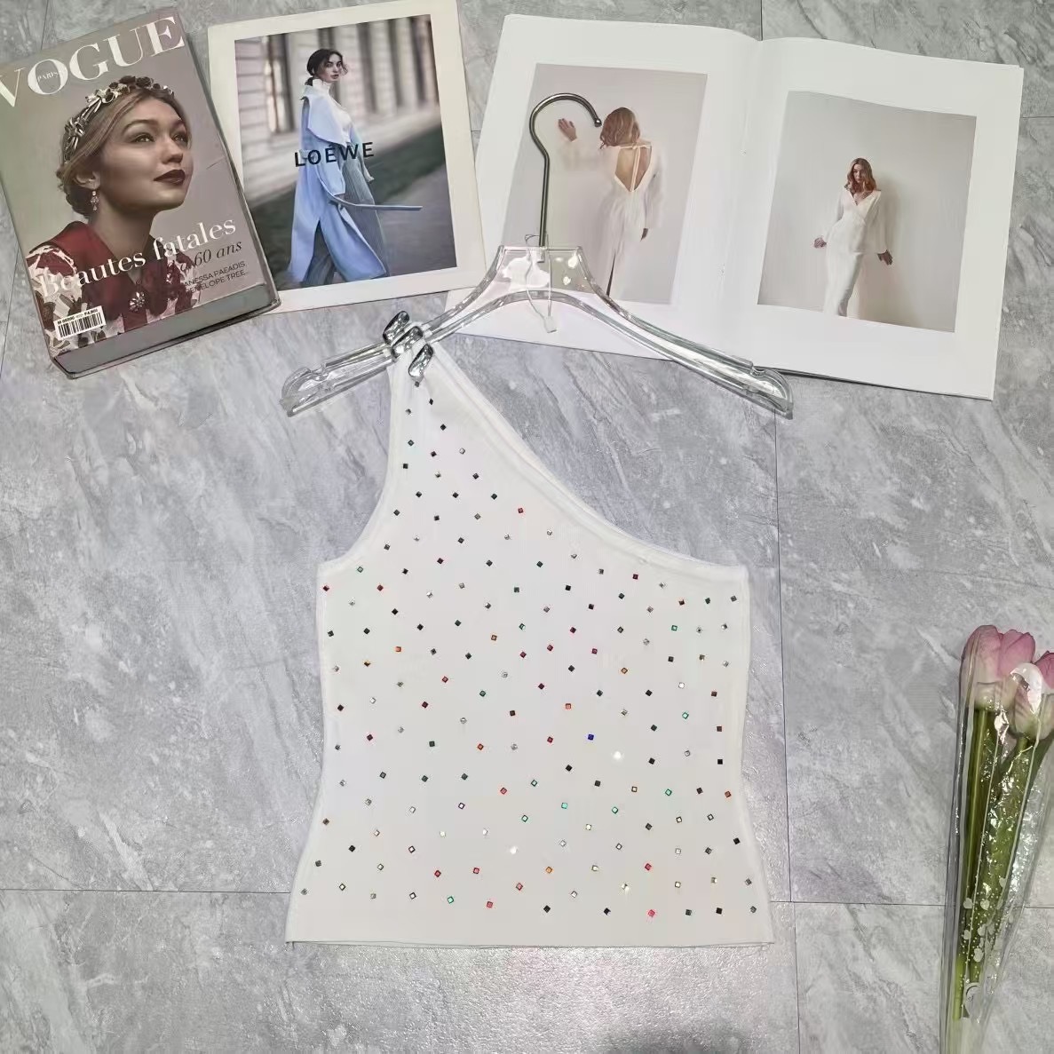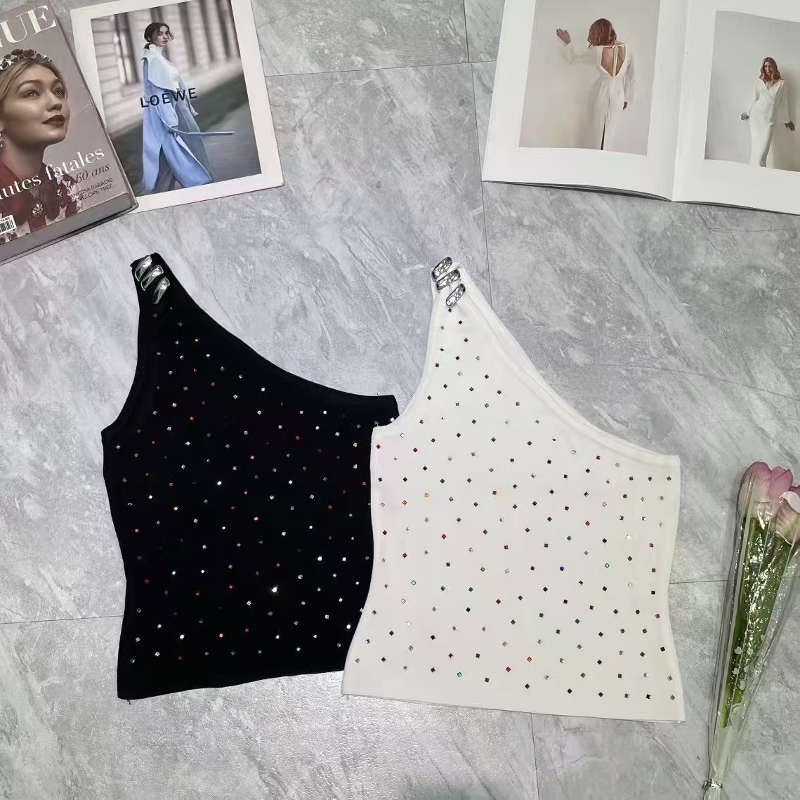 原单狠货女装 配包装Alexanderwan*春夏新款 斜肩针织背心 整件烫钻工艺吸睛又高级 修身版型内搭或单穿都超