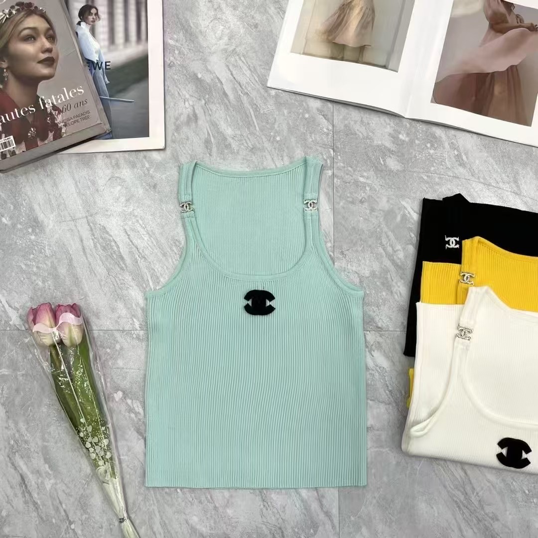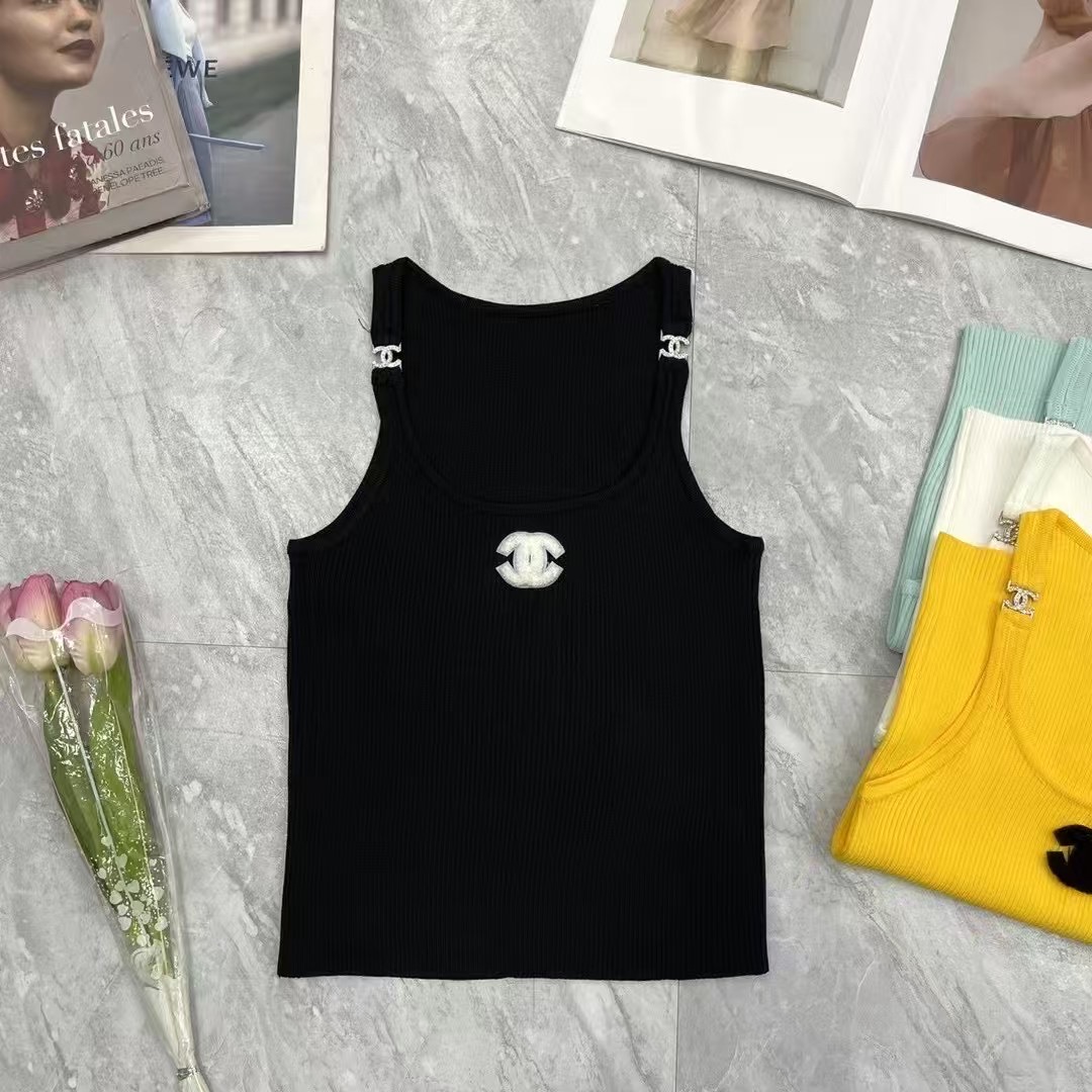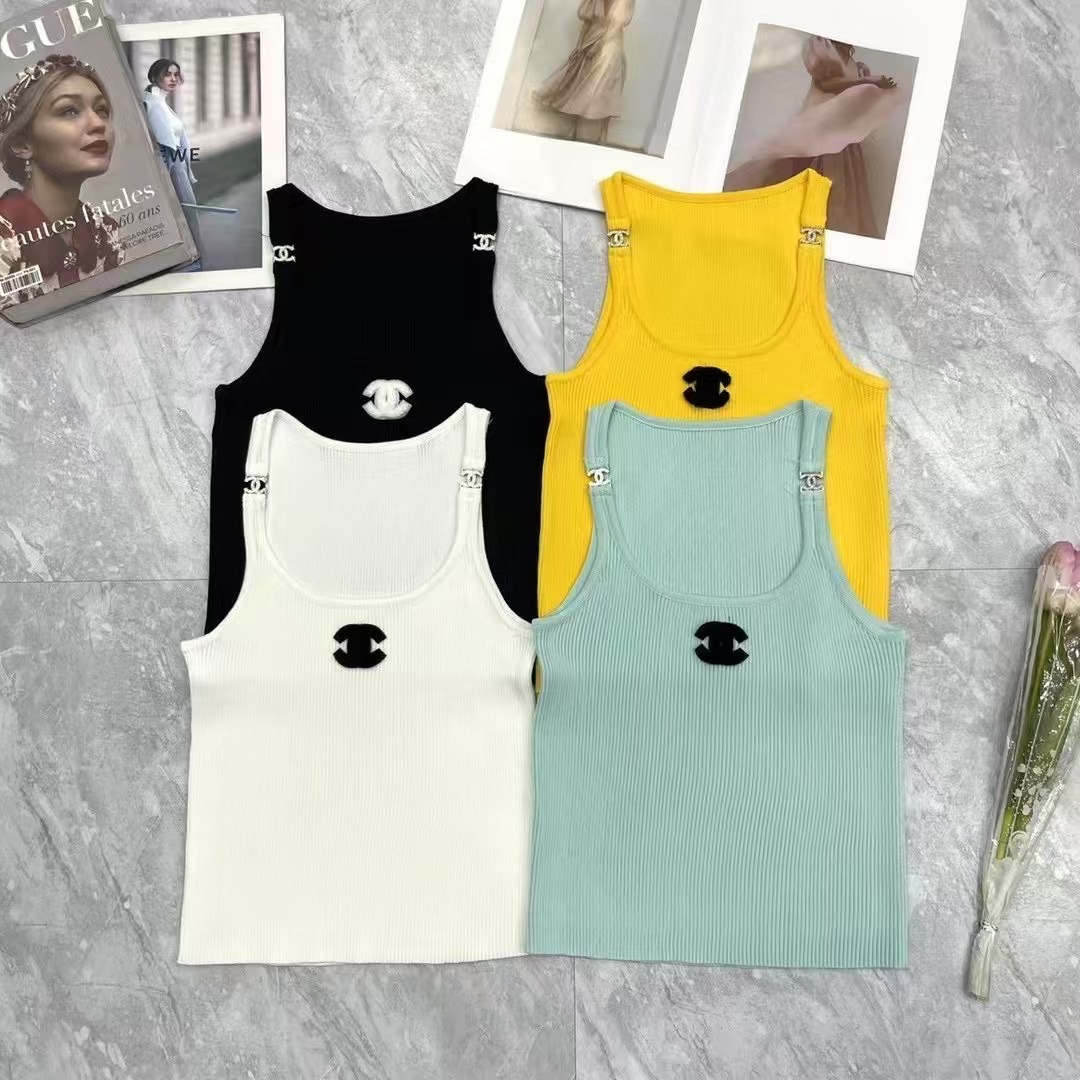 原单狠货女装 配包装Chane*春夏新款 U领针织背心 上身显瘦又百搭 大u领细肩带超显直角肩 辨识度满满的双C小标