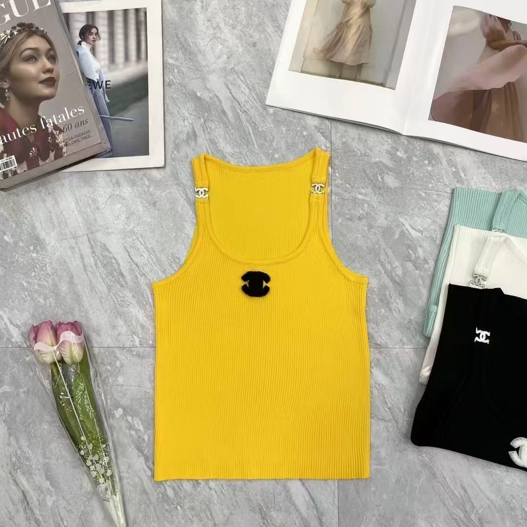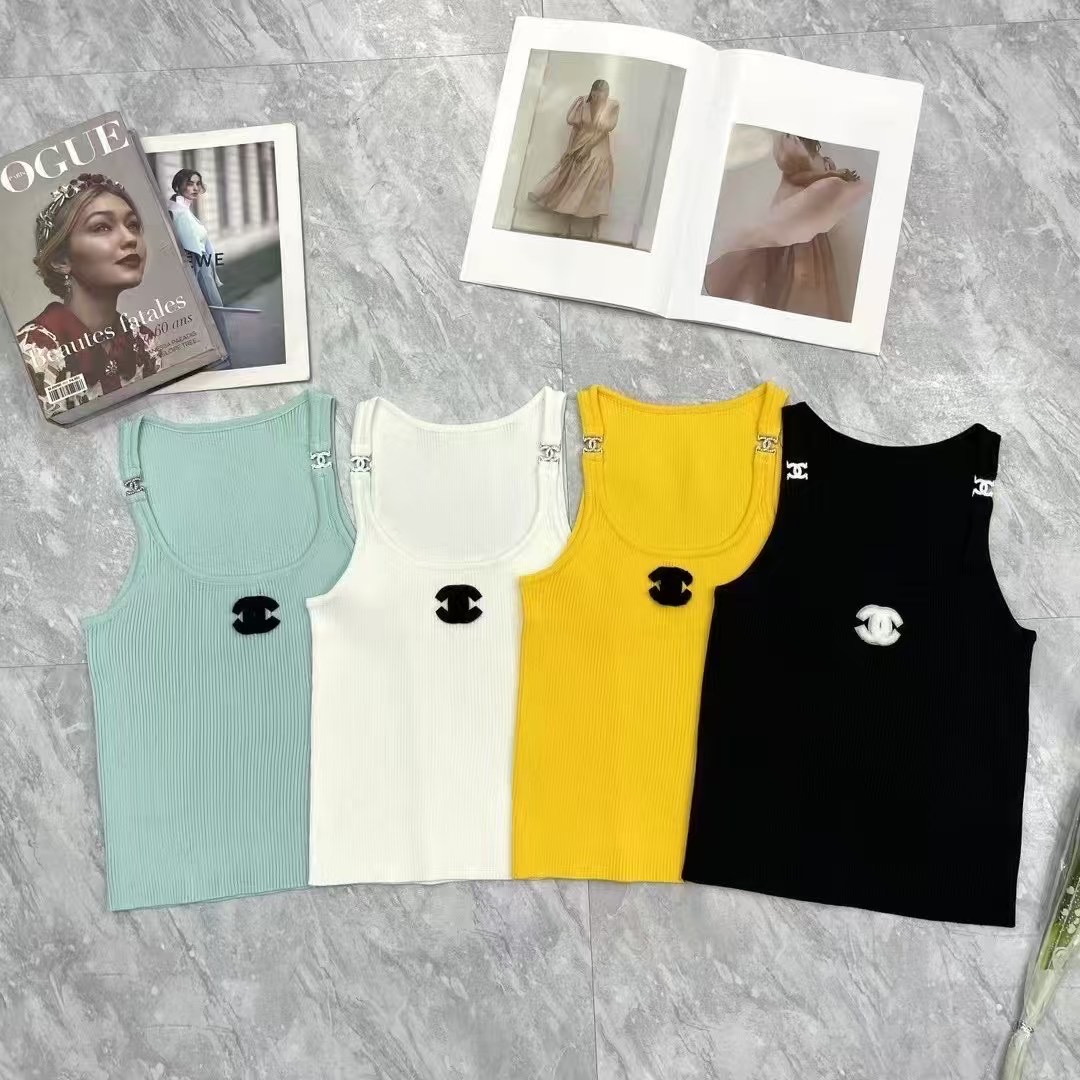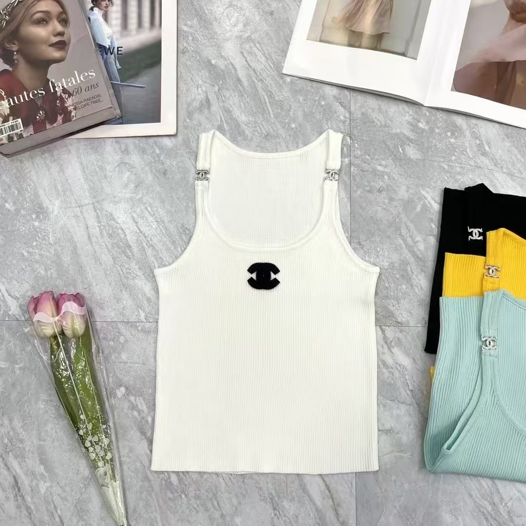原单狠货女装 配包装Chane*春夏新款 U领针织背心 上身显瘦又百搭 大u领细肩带超显直角肩 辨识度满满的双C小标