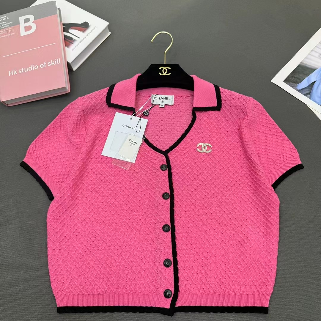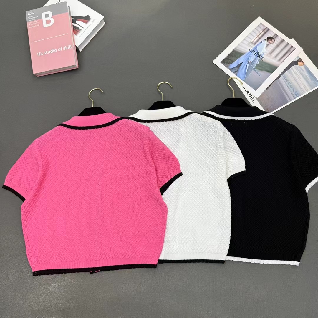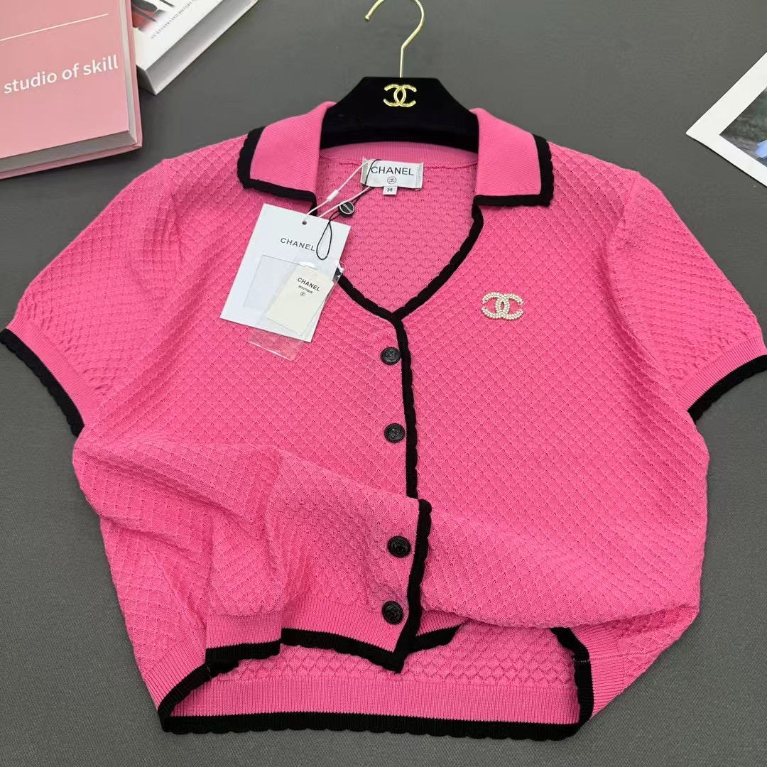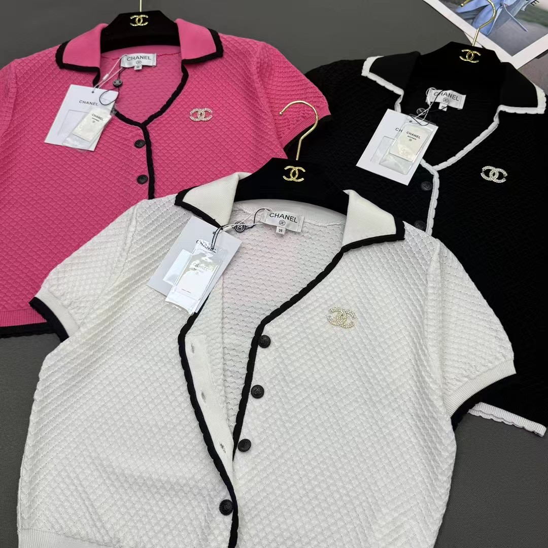 原单狠货女装 配包装Chane*春夏新款 翻领针织开衫 高腰版型上身超显比例 经典又不会出错的黑白色 减龄又干净的玫红色