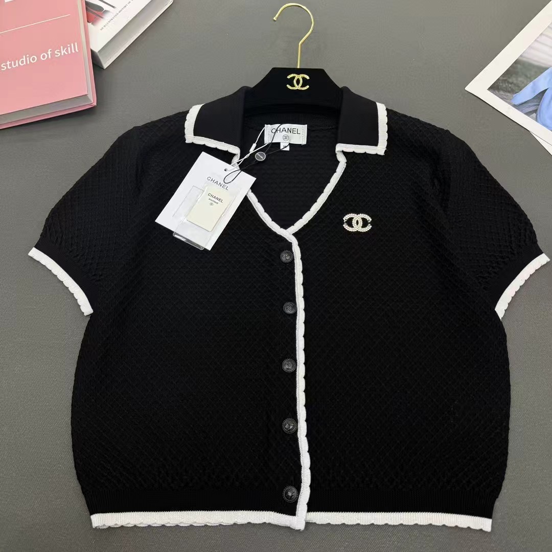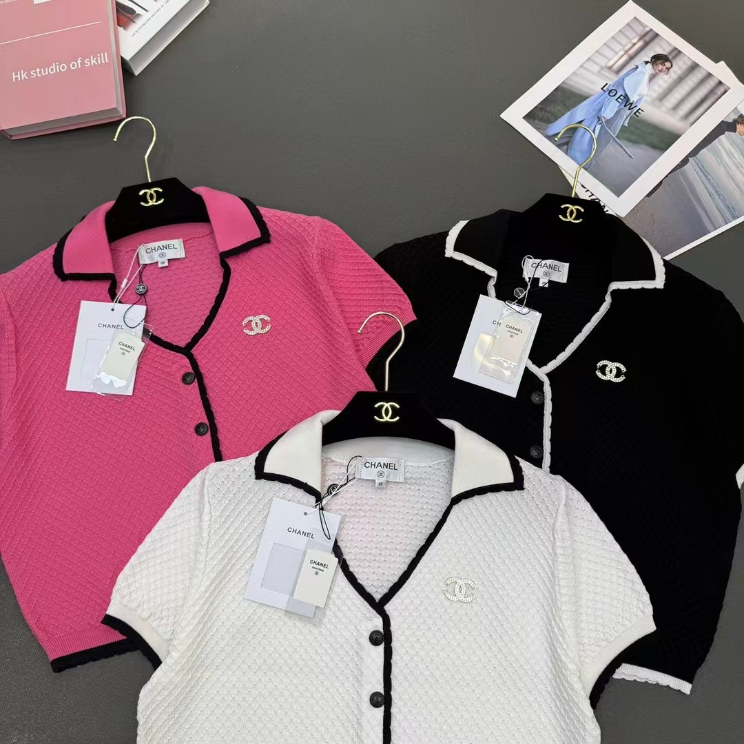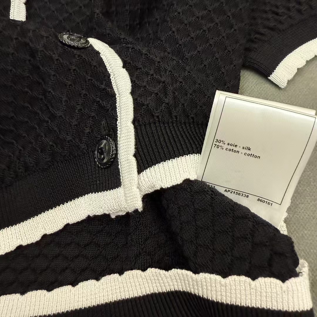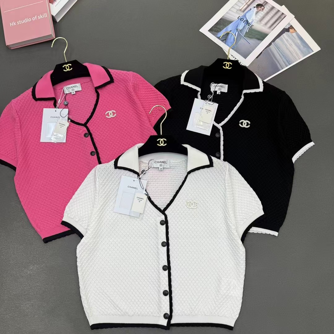 原单狠货女装 配包装Chane*春夏新款 翻领针织开衫 高腰版型上身超显比例 经典又不会出错的黑白色 减龄又干净的玫红色