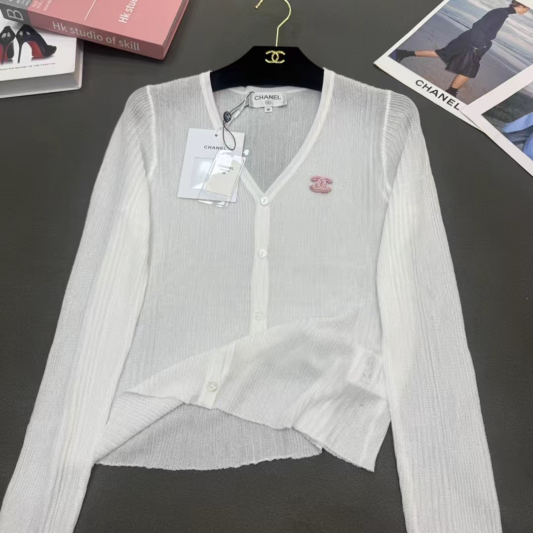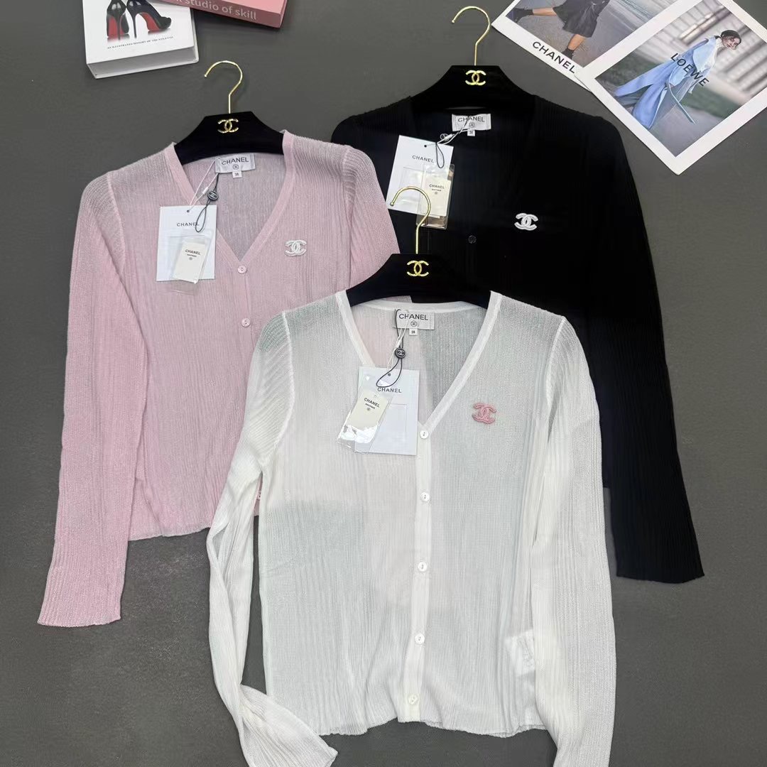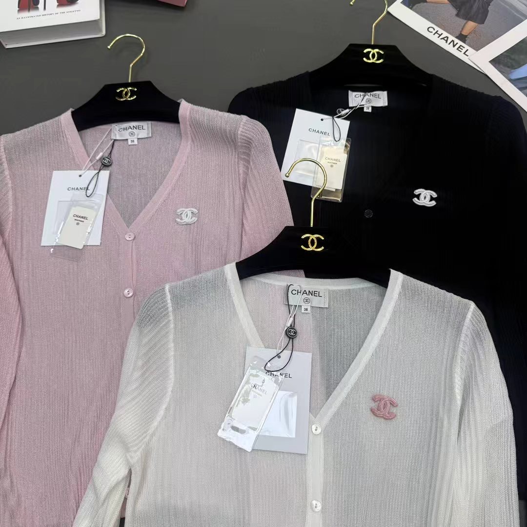 原单狠货女装 配包装Chane*春夏新款 桃领针织开衫 百搭又大方单穿或配套搭都超 透视面料带点小性感