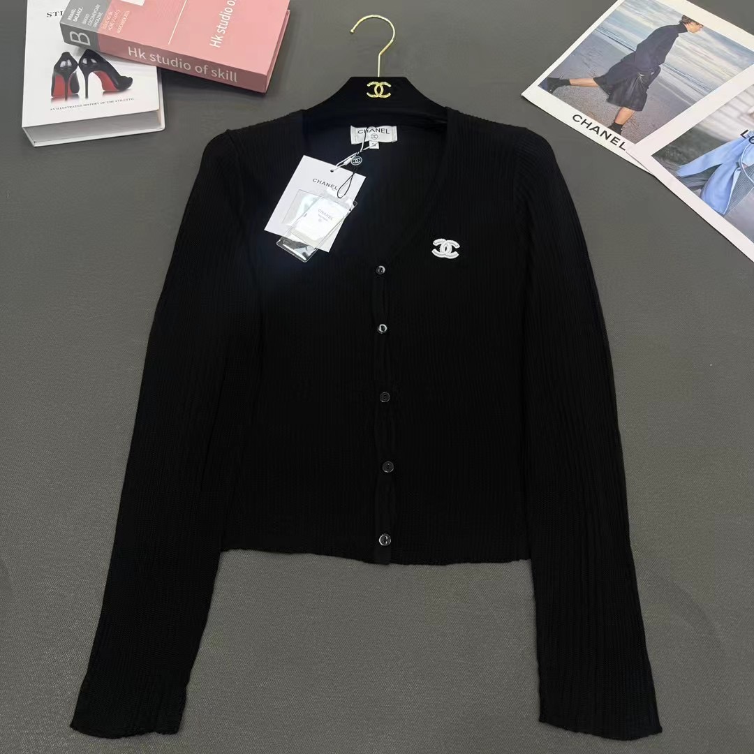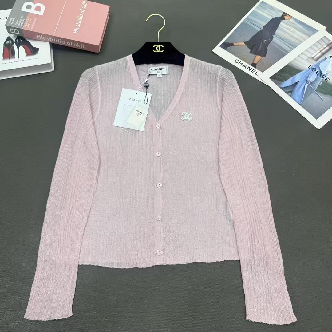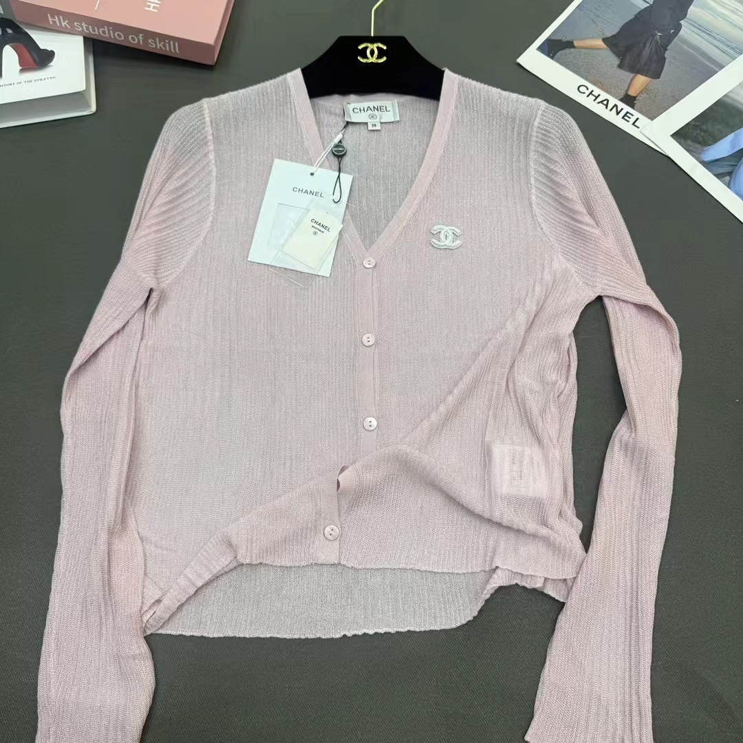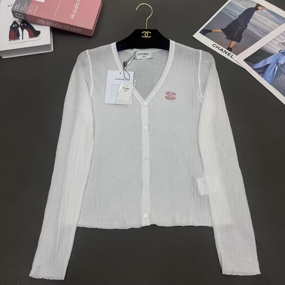 原单狠货女装 配包装Chane*春夏新款 桃领针织开衫 百搭又大方单穿或配套搭都超 透视面料带点小性感
