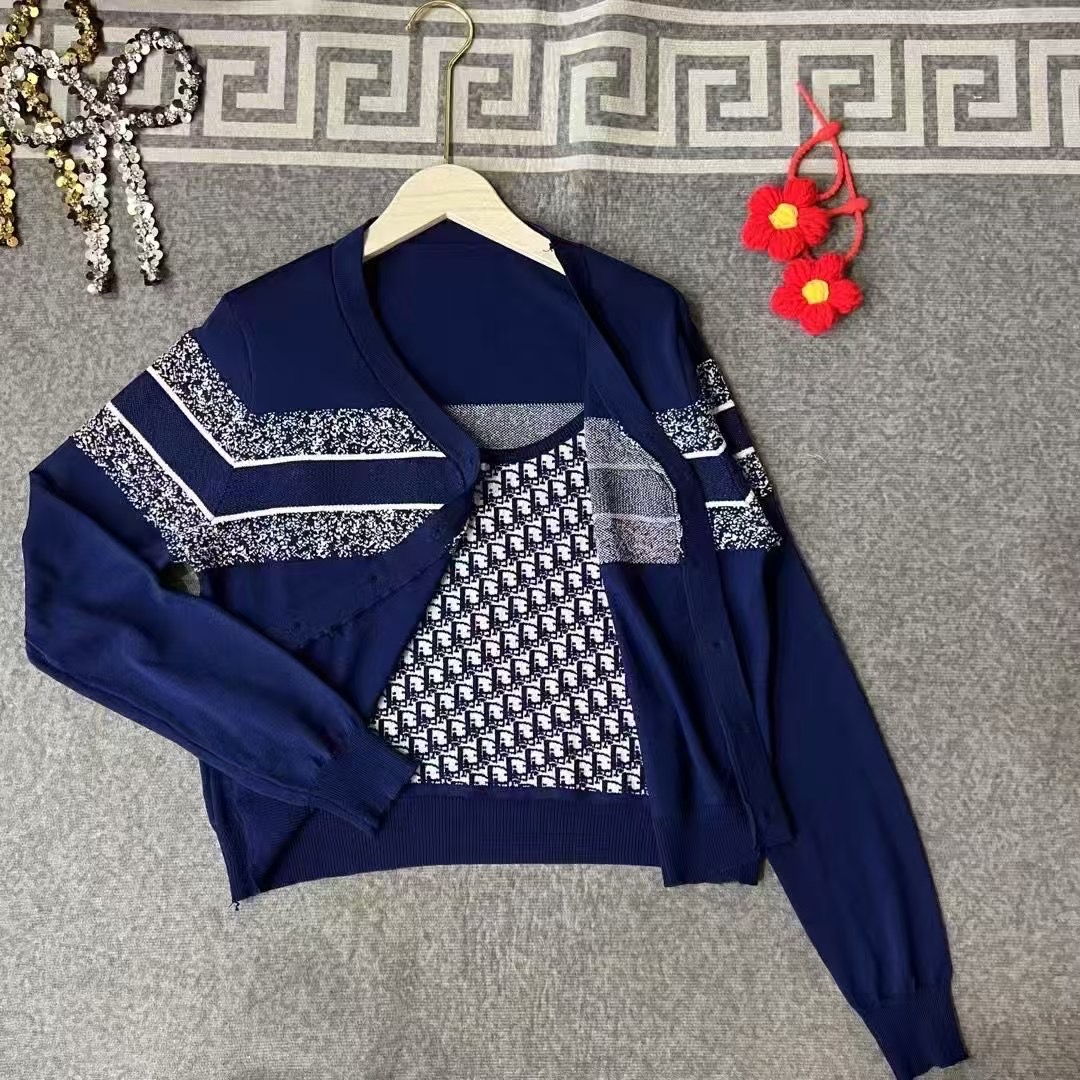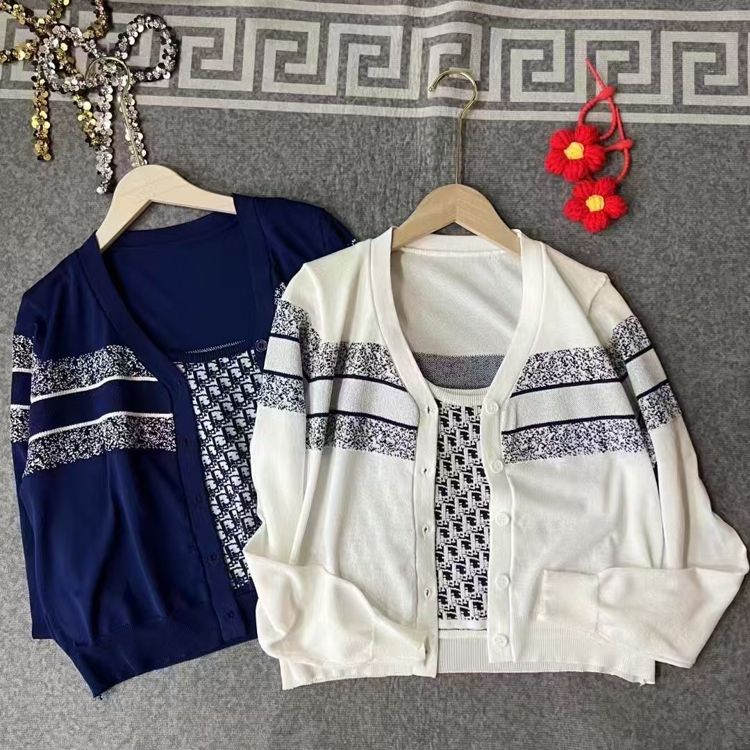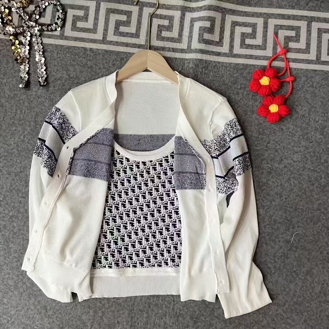 原单狠货女装 配包装Dio*春夏新款 经典老花刺绣针织套装 吊带针织背心百搭又显瘦 单穿或配套搭都超 ~