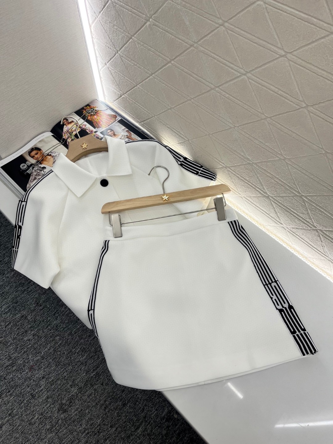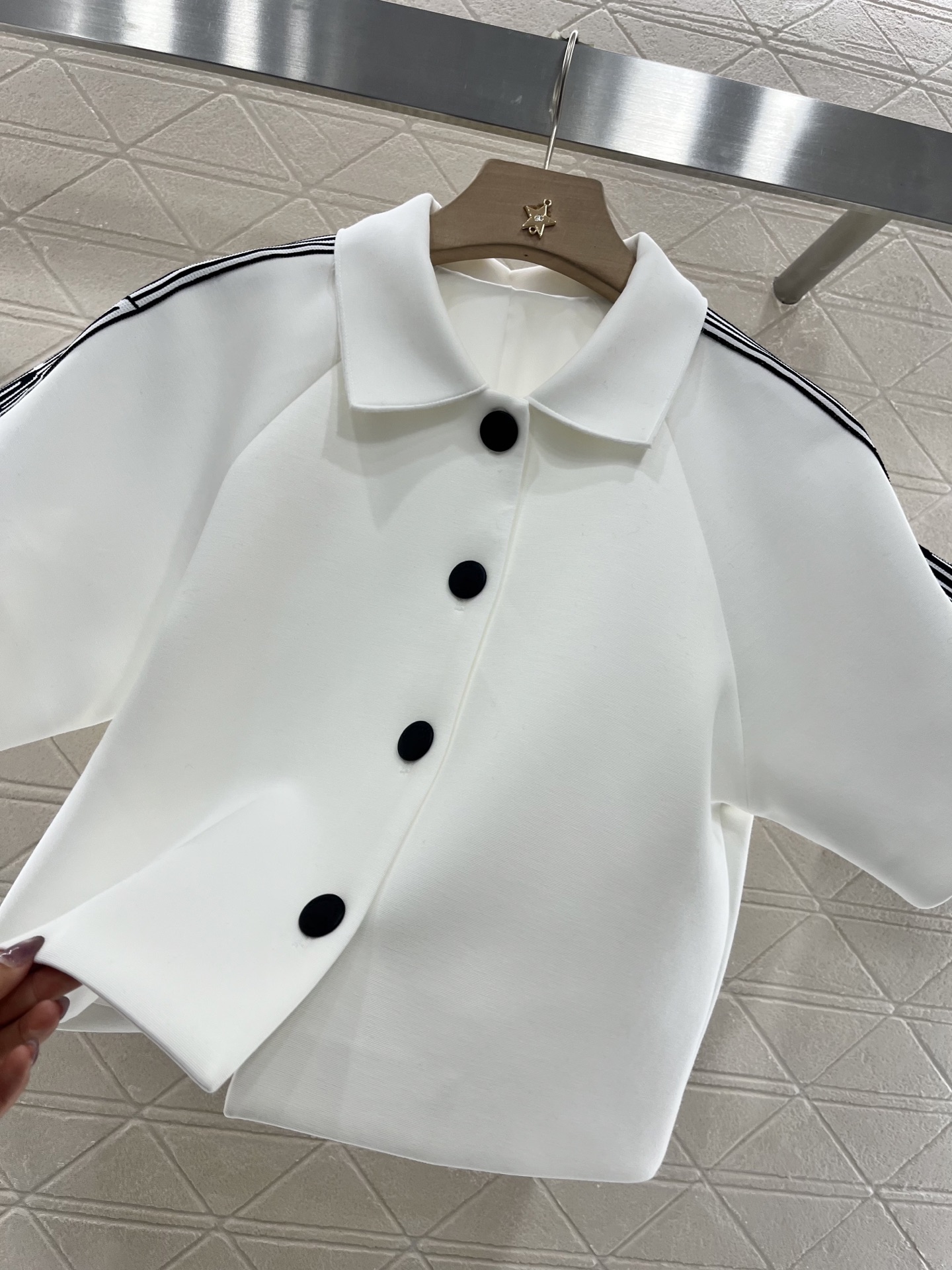 原单狠货女装 配包装♥Dio*♥2025新品上架 短袖外套短裙套装 定制YB空气全棉材质 质感微弹 品相光泽舒适 短袖外套短裙套装 通体素色百搭耐看 肩袖和裙外侧的黑色字母徽标织带与米白底色相碰撞 让视觉效果更丰富 上下套装设计呼应 尽显优雅风范 分开搭配也很赞 衣橱日常通勤约会必备穿搭 让优雅从容延续永恒 定制面辅料 认准版本 高版本 /套