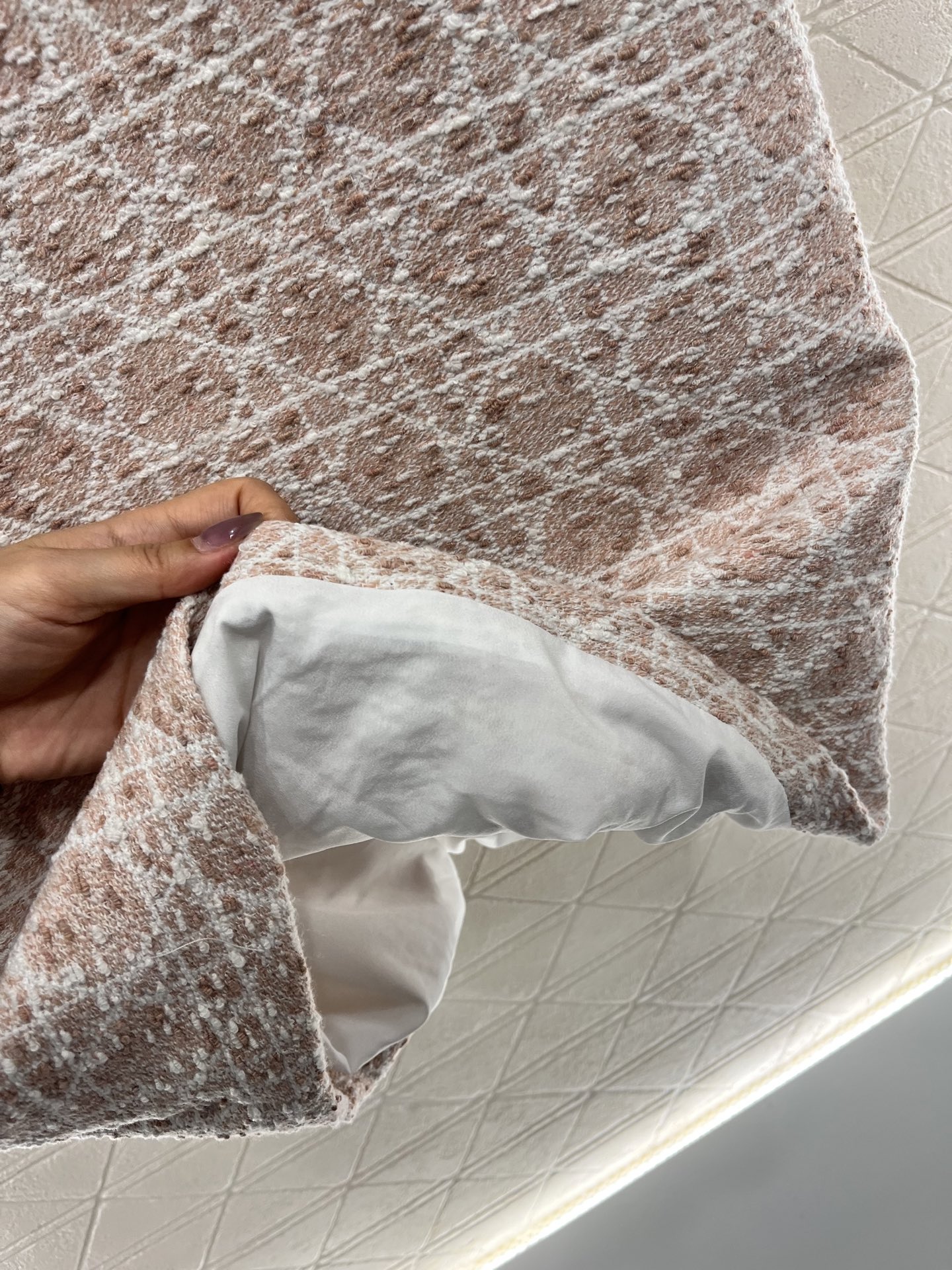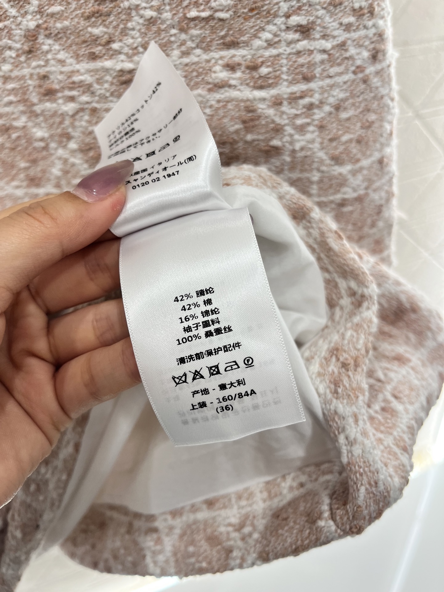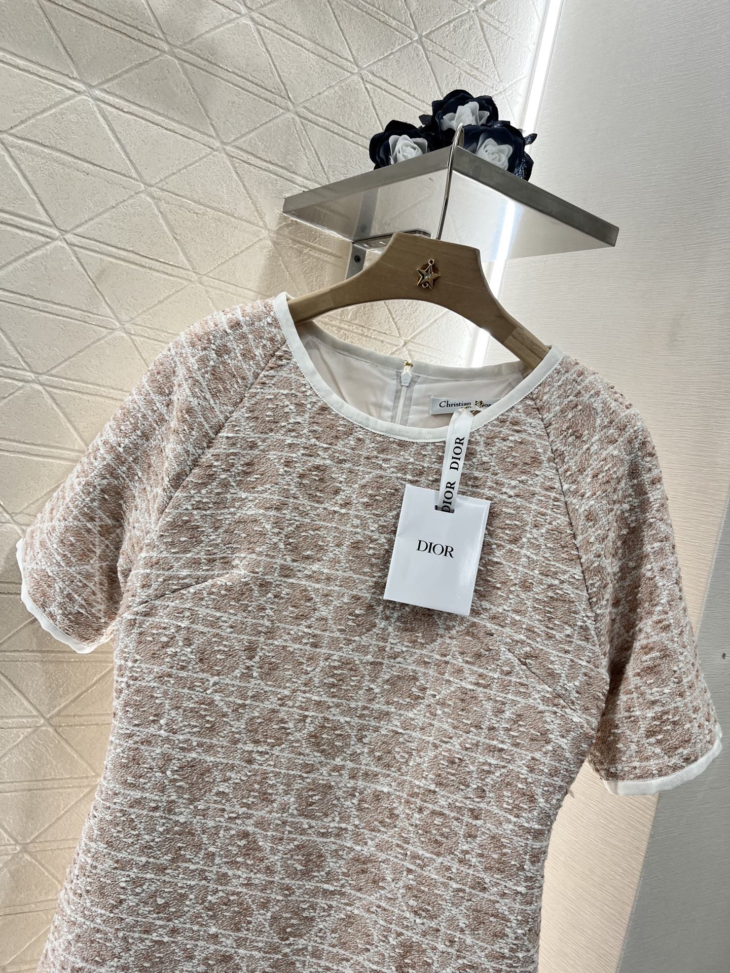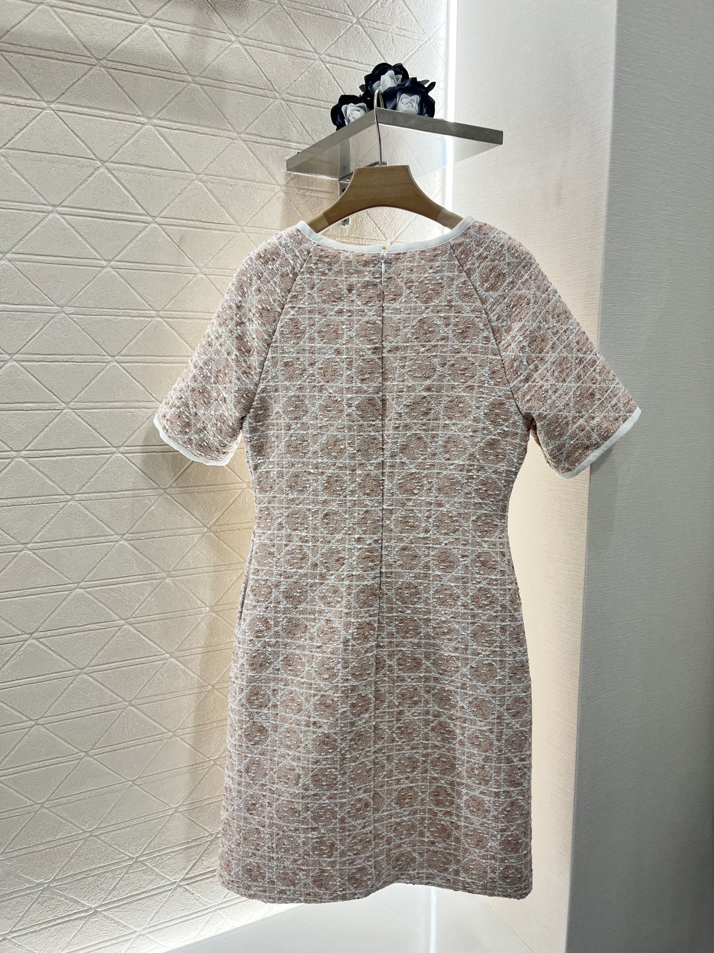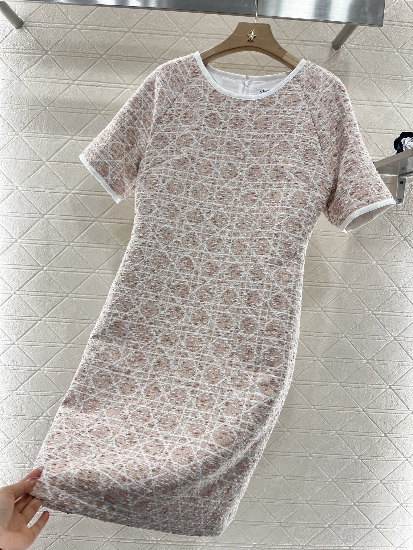 原单狠货女装 配包装♥Dio*♥2025新品上架 圆领短袖连衣裙 定制YB进口粗纺毛呢材质 质感高级 品相十足 圆领短袖连衣裙裁剪 袖口和领口以立体白色捆边点亮细节 配合细腻的白色纱线规则交织出腾格纹满铺于全身 名媛格调立显 完美演绎优雅千金感 通体浅蓝色➕樱花粉显贵显质感 知性温柔 出席正式场合的不二之选 ⚠️天花板版本 真丝内衬 定制面辅料 认准版本 高版本 2色