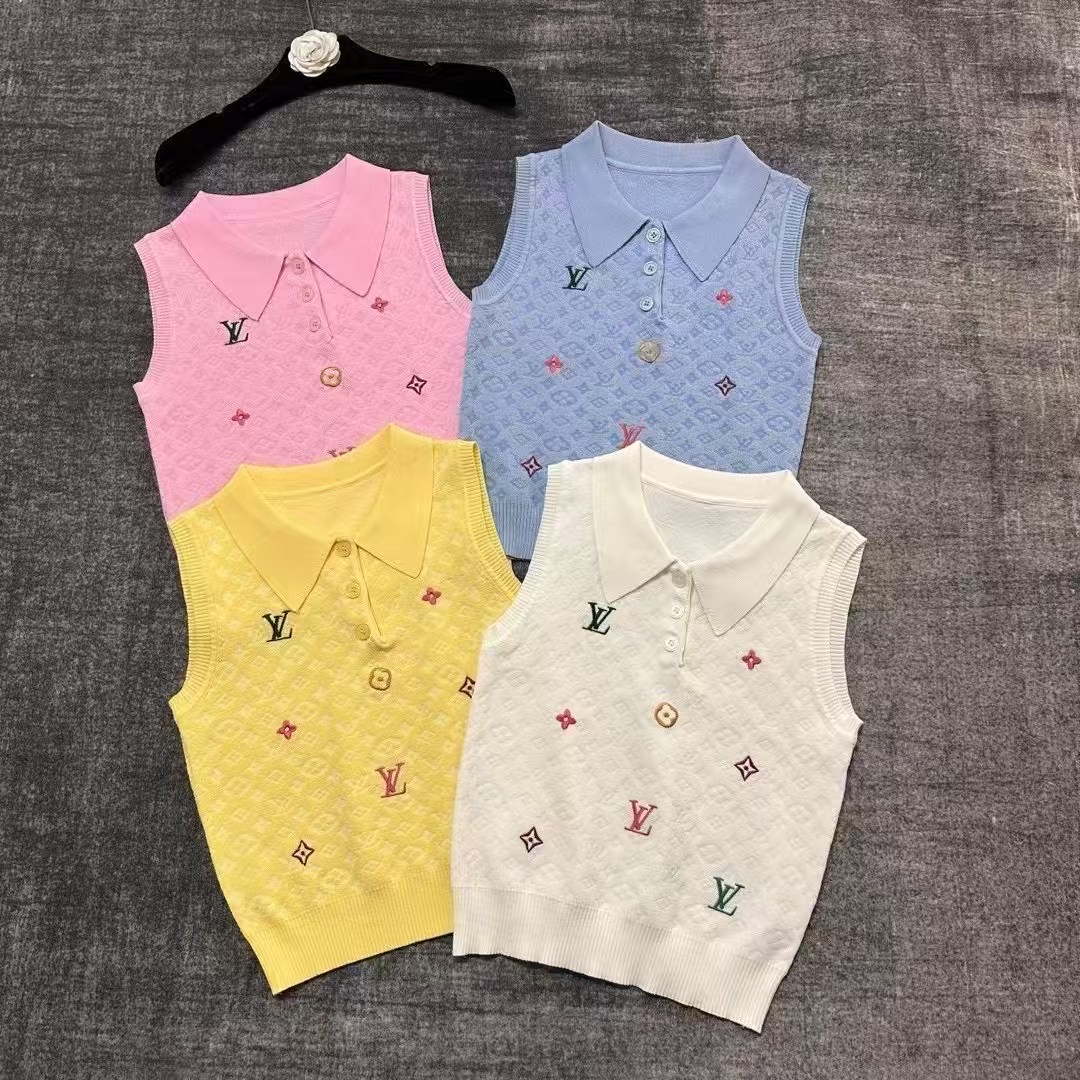 原单狠货女装 配包装L*春夏新款 翻领针织背心 学院风满满减龄又大方 老花刺绣辨识度满满 超显白又超夏天的色