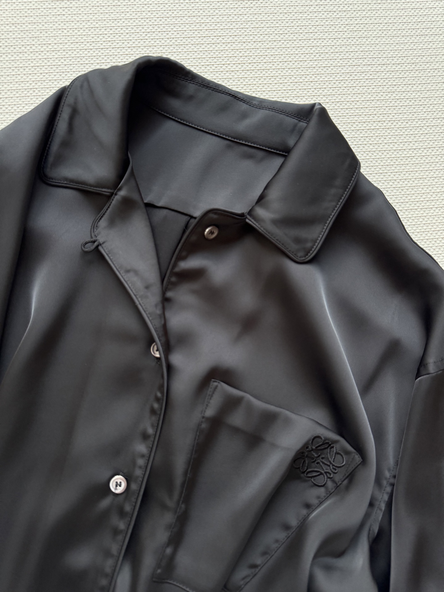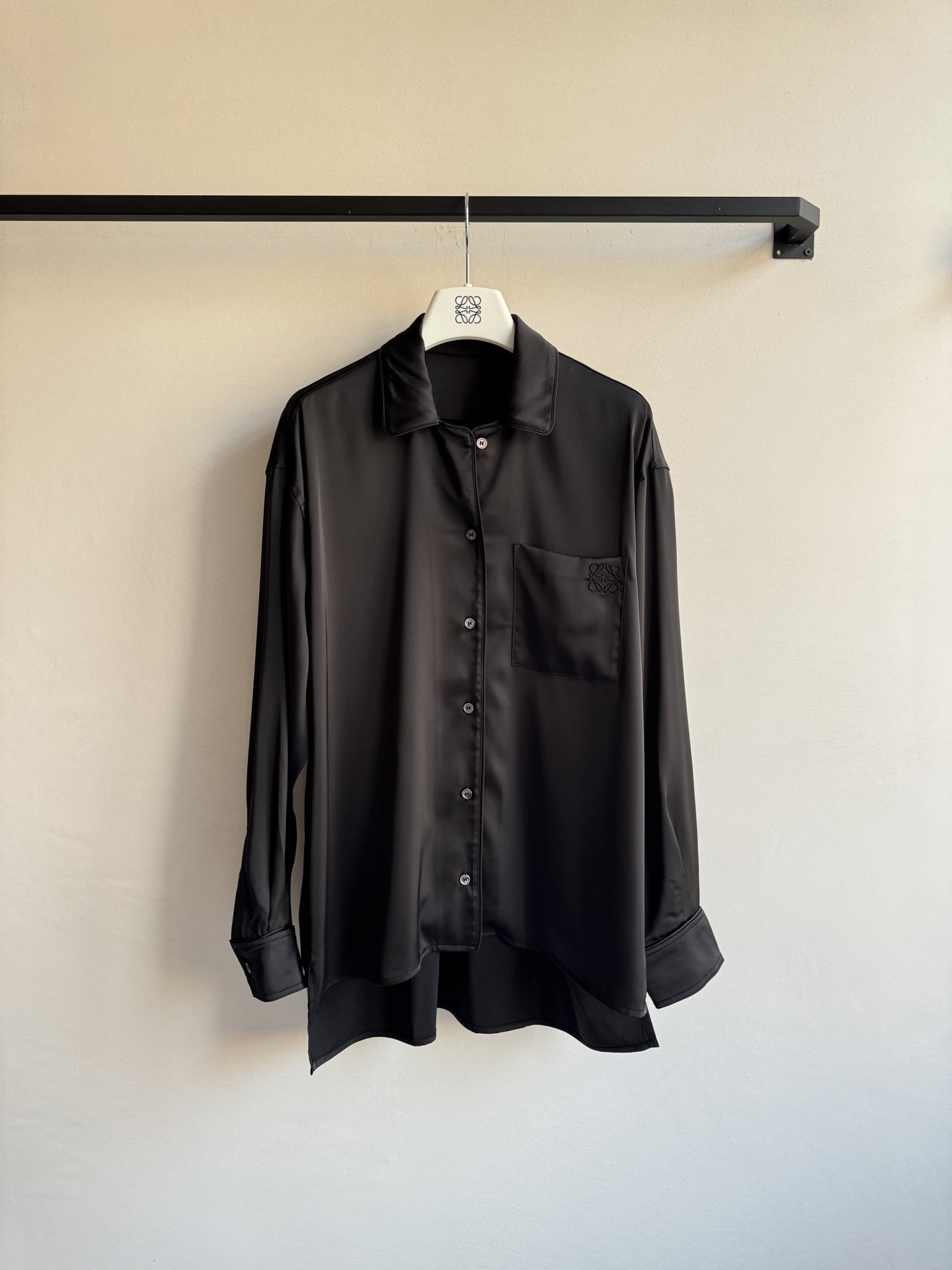 原单狠货女装 配包装Loew* AW早春新款休闲衬衣,原版开发 高版出品!人丝醋酸缎面料。面料冰冷 柔软细腻舒适透气百搭 梨形身材苗条都能穿遮肉显瘦通勤款 时髦慵懒休闲不挑人 设计刺绣满满感 重磅推荐!姐妹们都给我冲!现货 SML